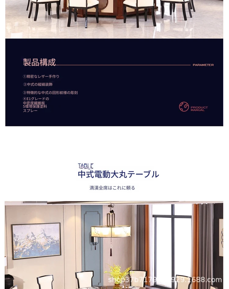 現代新中式ホテル用大円卓!民宿やテーマレストランに最適な電動円形ダイニングテーブルを直販!おしゃれで機能的なデザインで、特別なひとときを演出します。