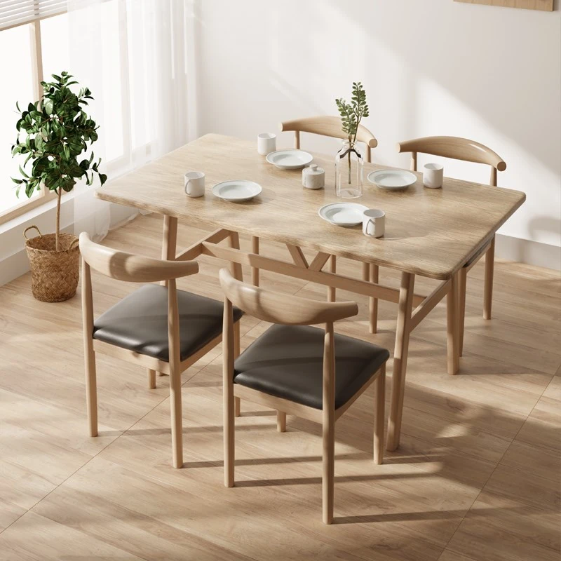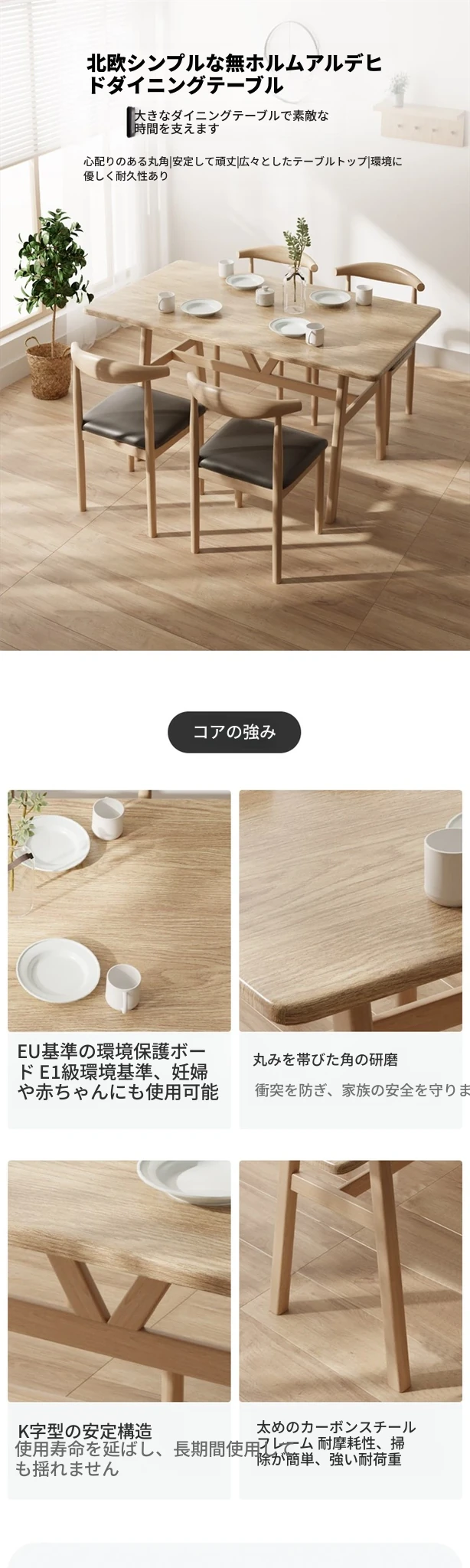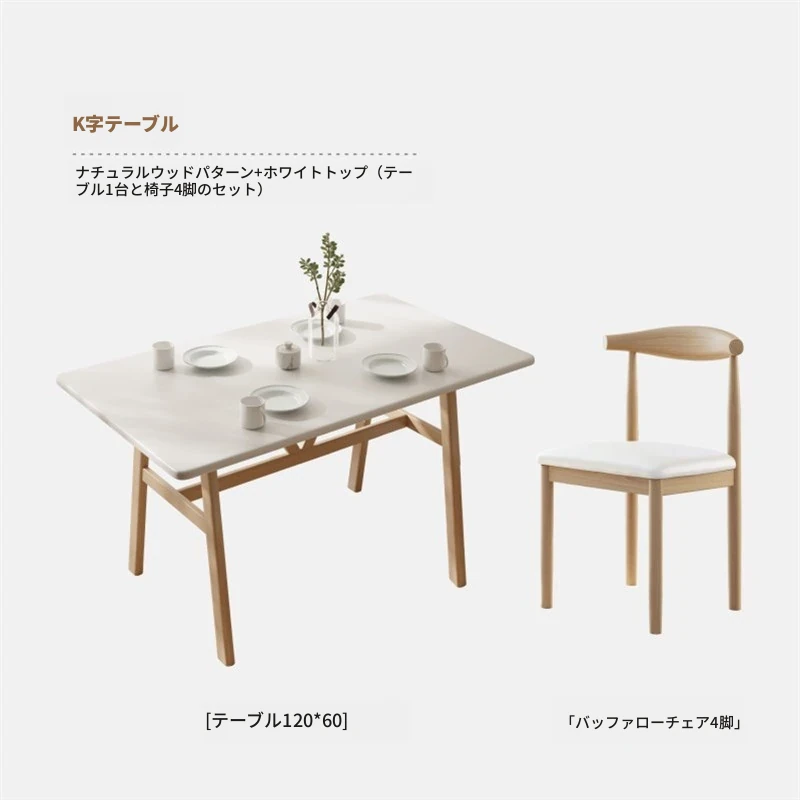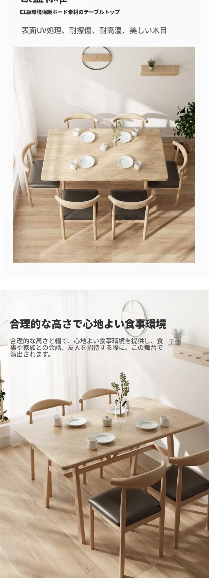 現代的でシンプルな長方形ダイニングテーブルセット|小型住宅に最適!家庭用・商業用どちらにも対応|快適な食事空間を演出するテーブルと椅子の組み合わせ
