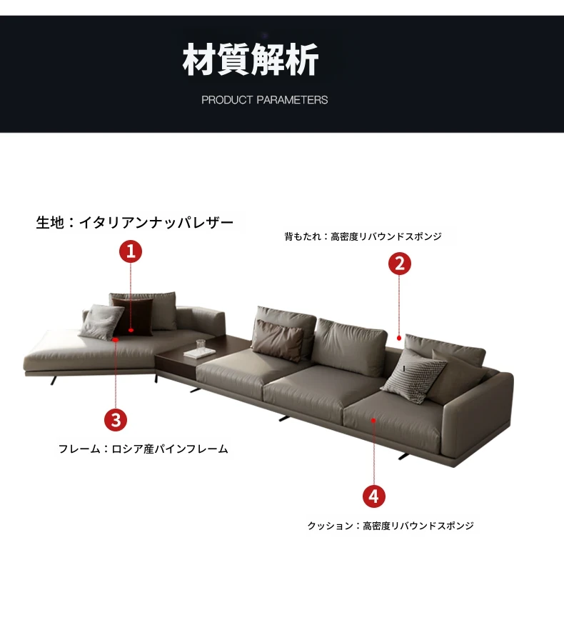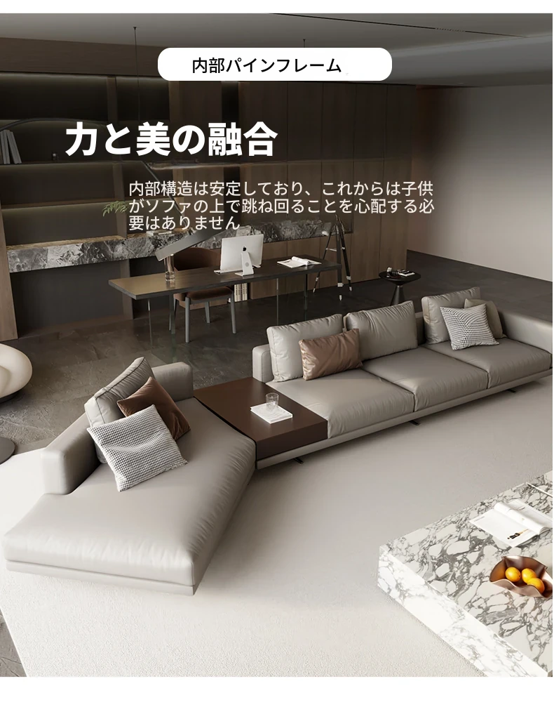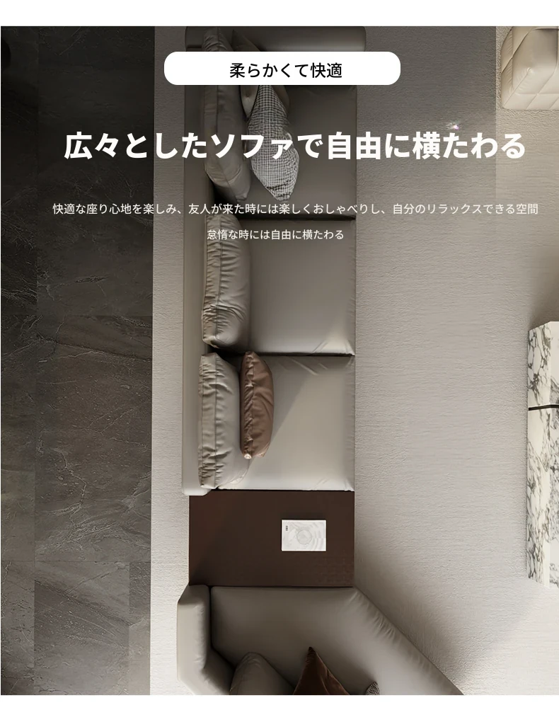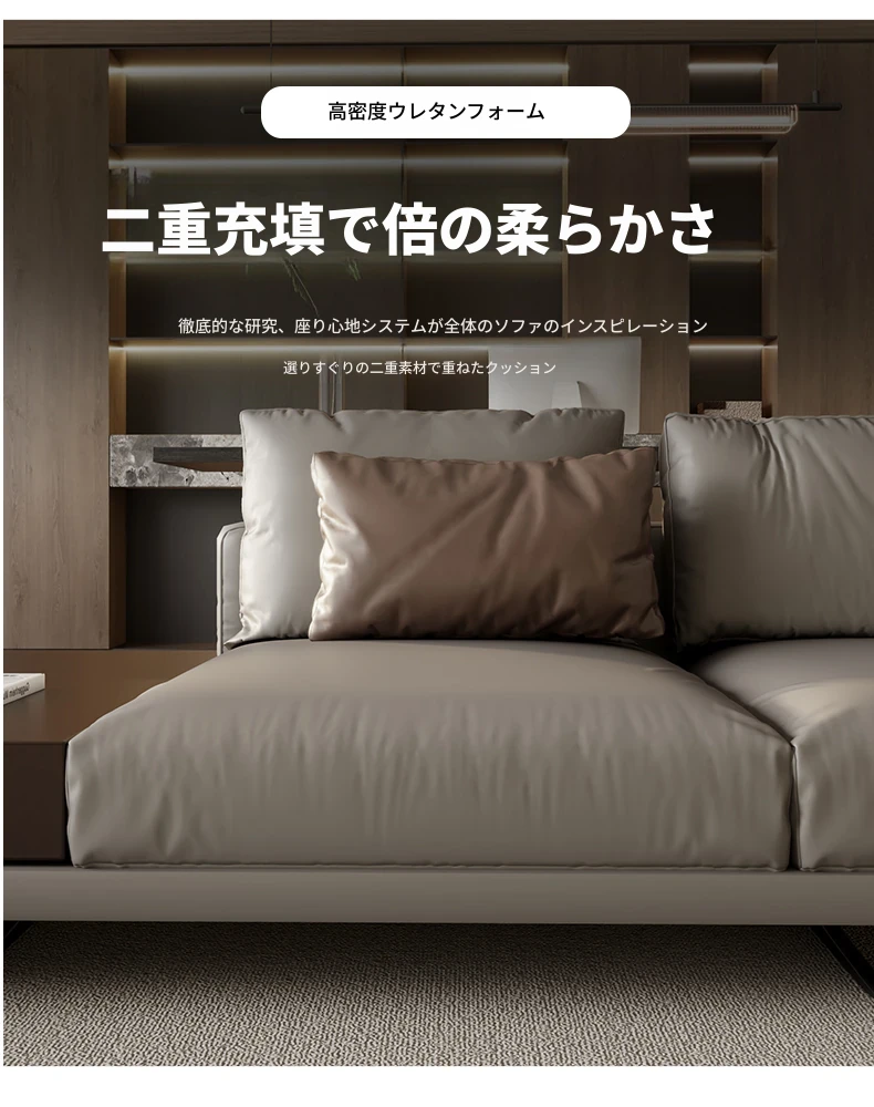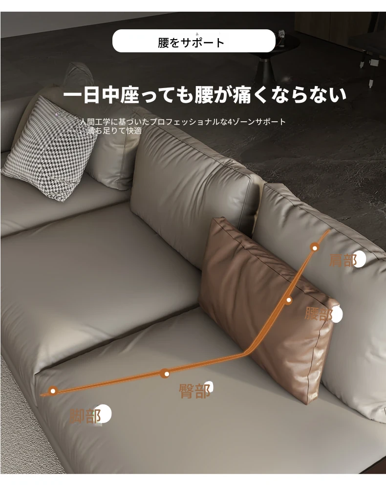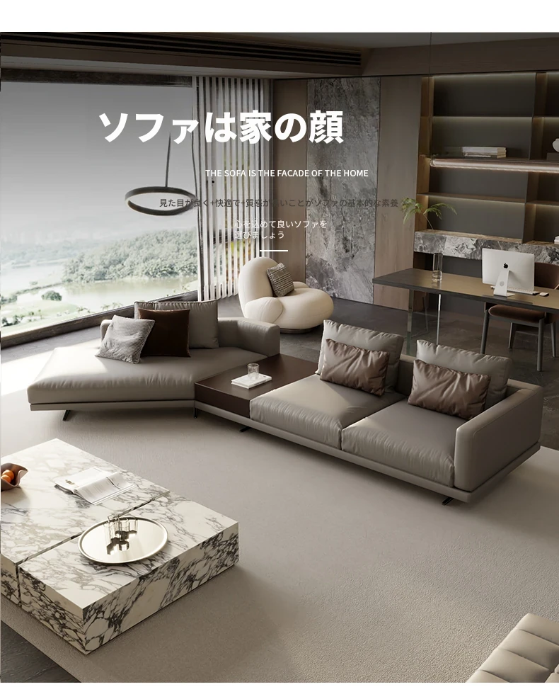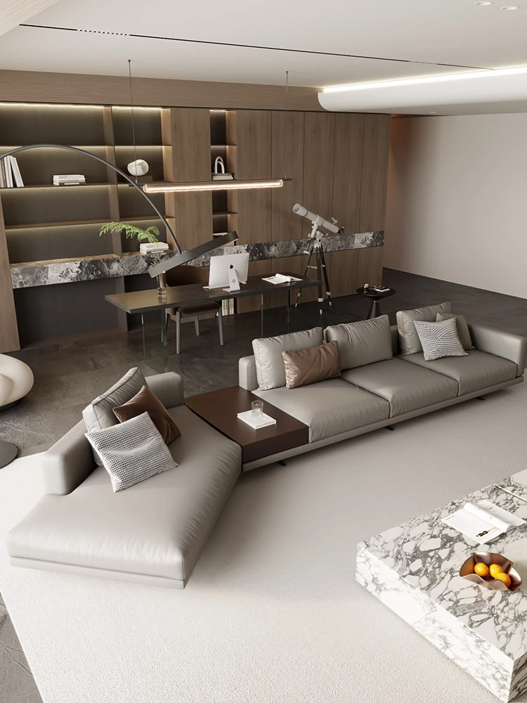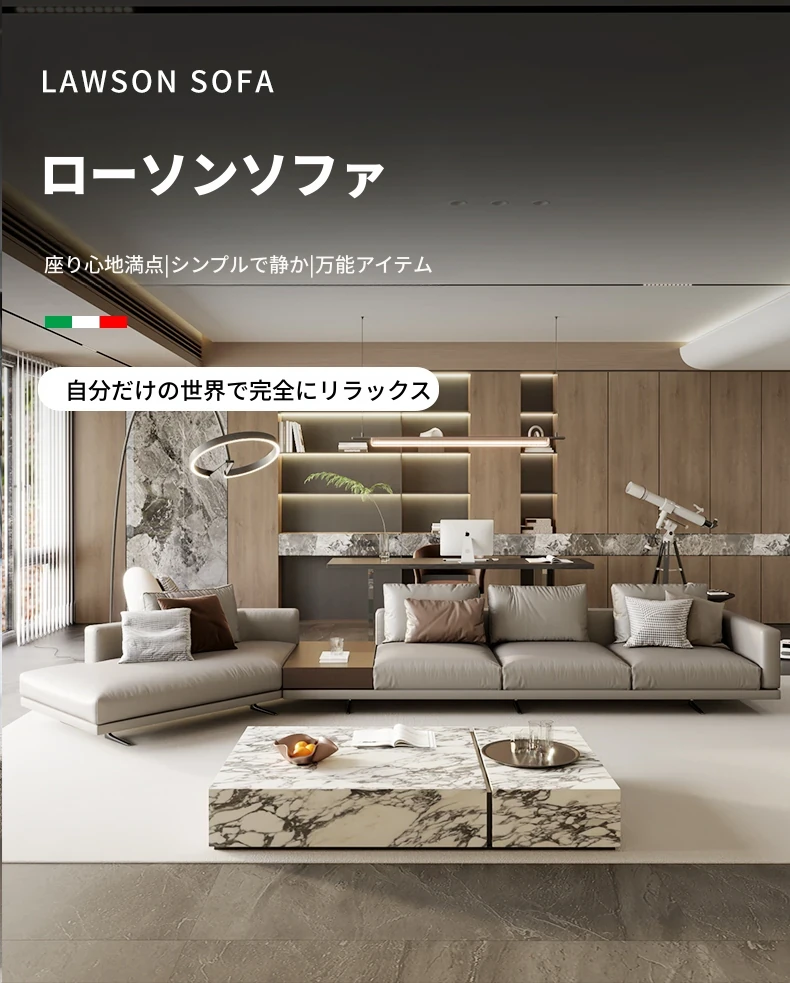 モンドリアン本革ソファー|地平線スタイルのイタリアンミニマリズム|豪華なヴィラにぴったりのリビングルーム用ソファー|洗練されたデザインで心地よい空間を演出!