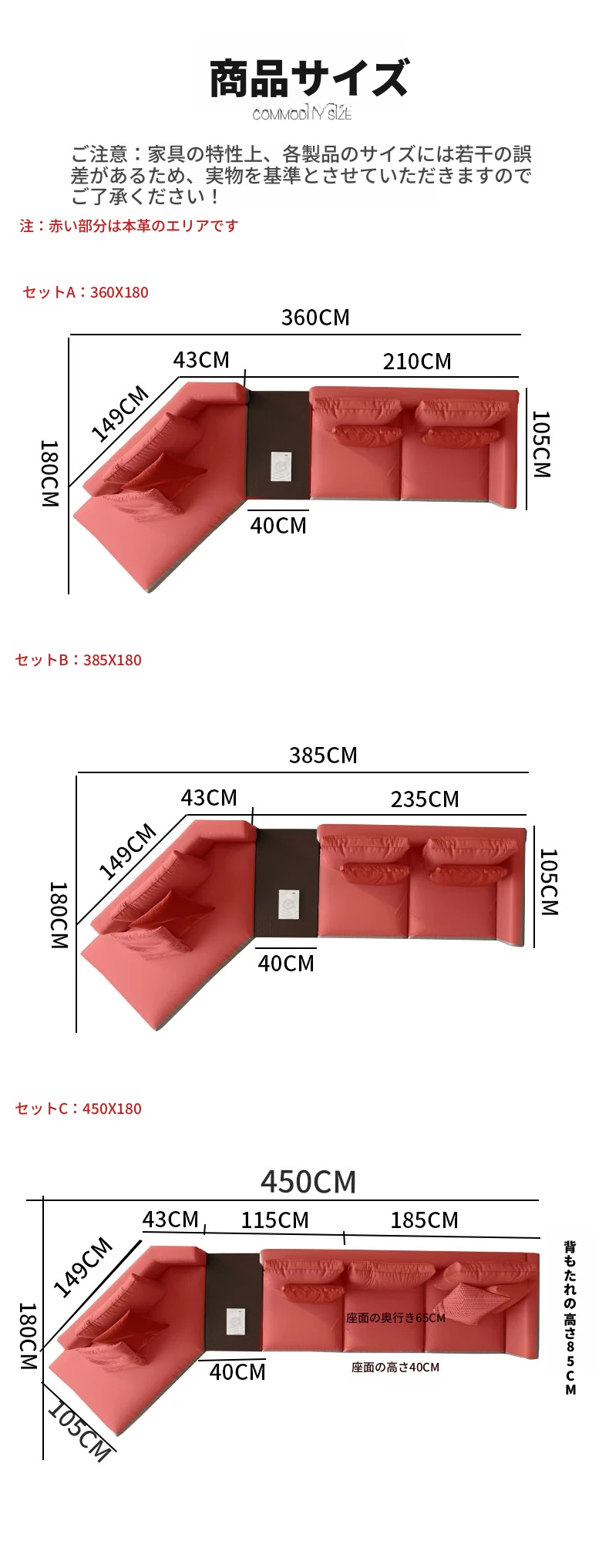 セットB 本革ソファ総長3.85メートル