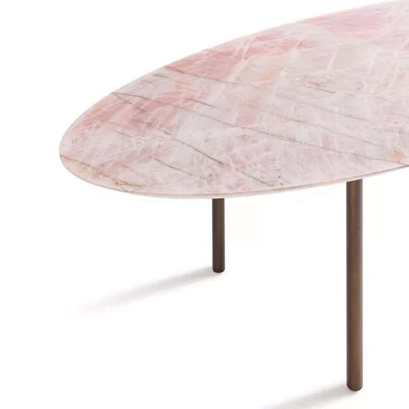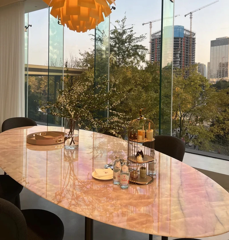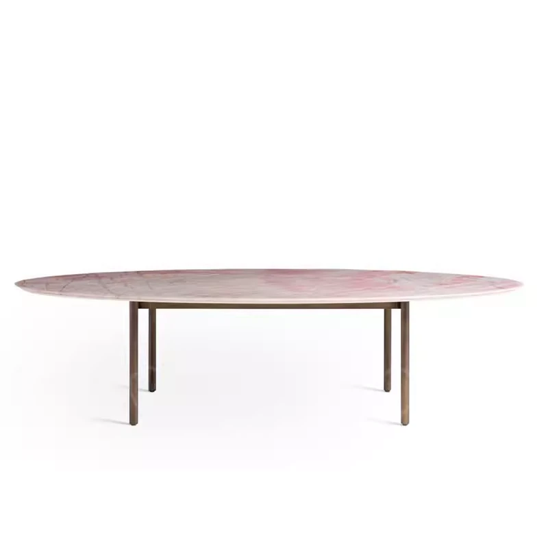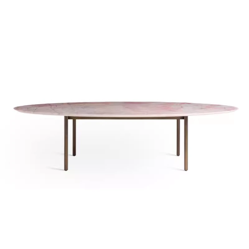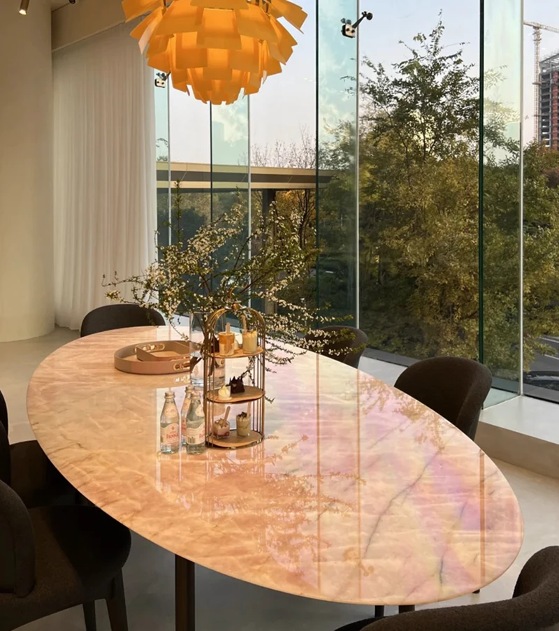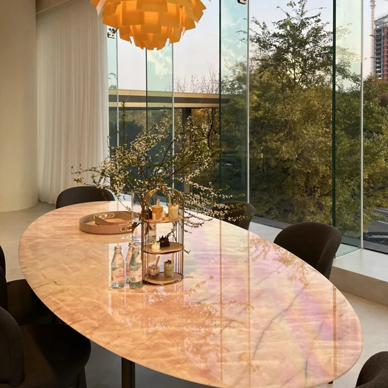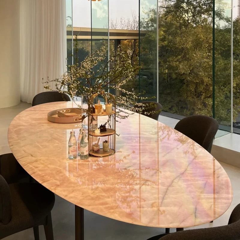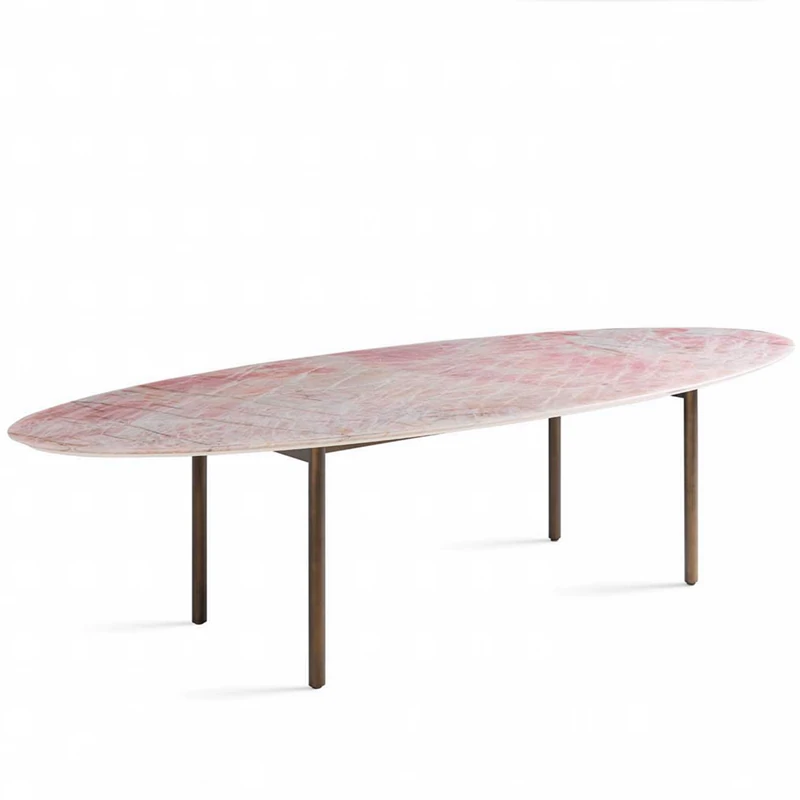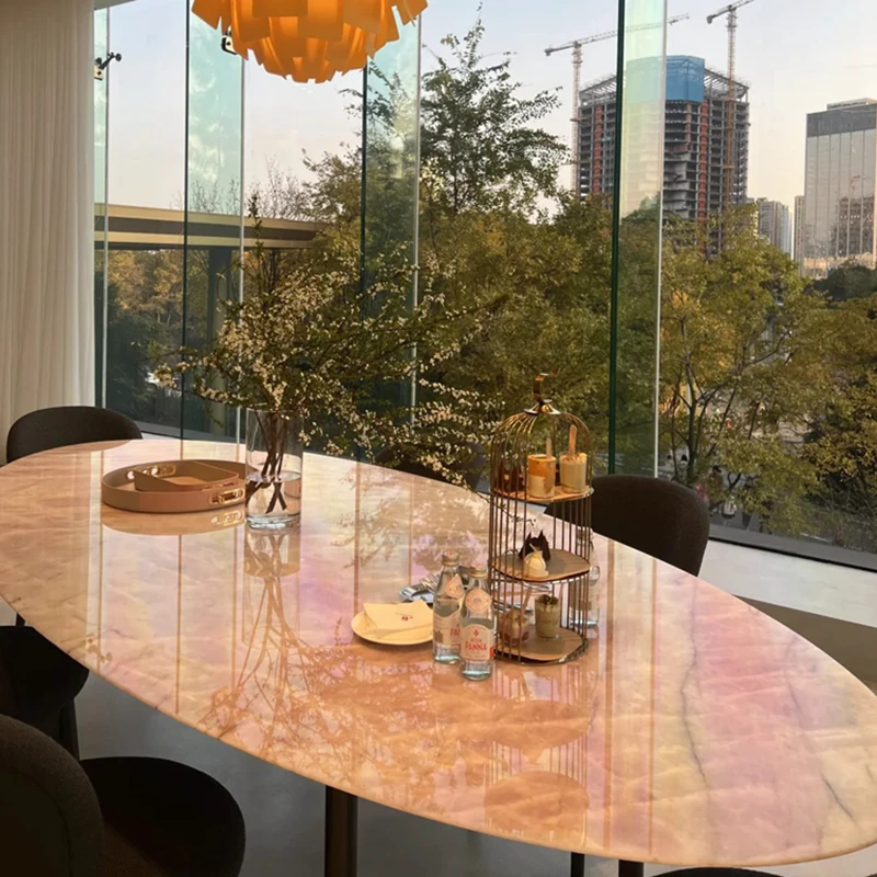 天然豪華石粉使用のイタリアンデザイン エレガントな楕円形マーブルダイニングテーブル モダン&シンプルなピンクマーブルテーブルで、食卓を彩りましょう!