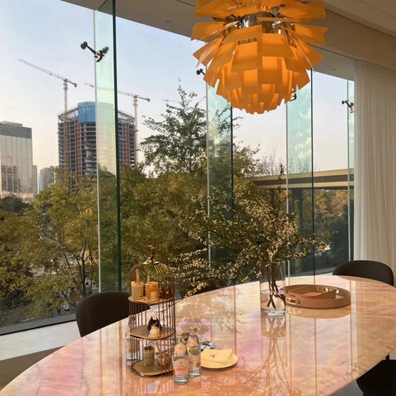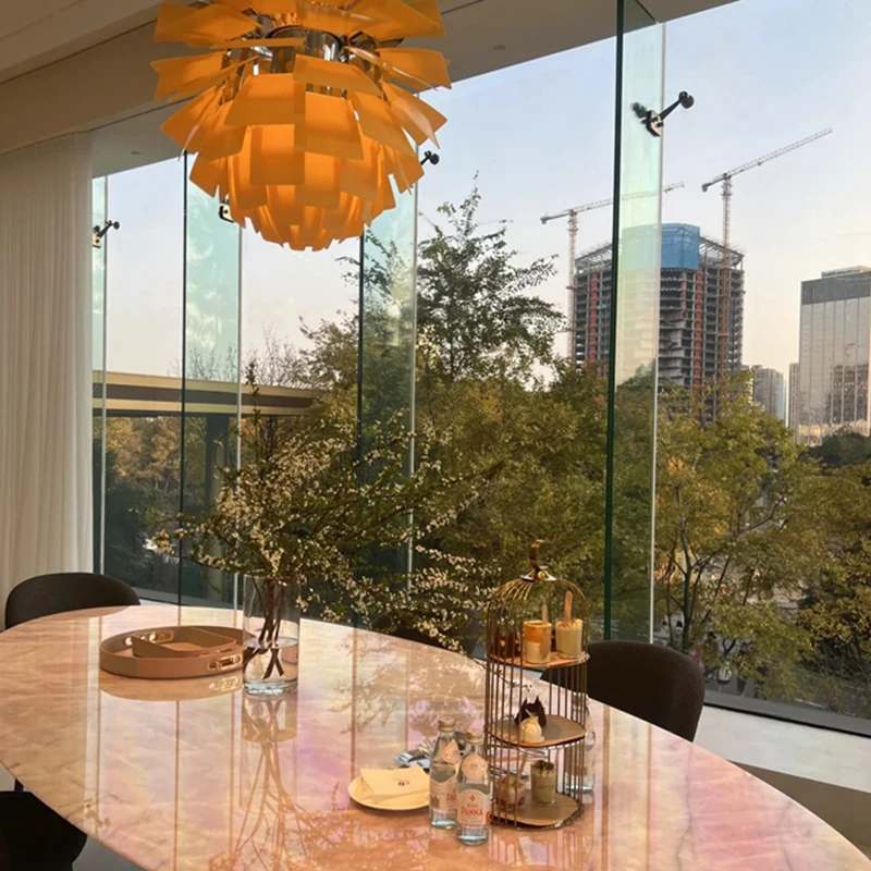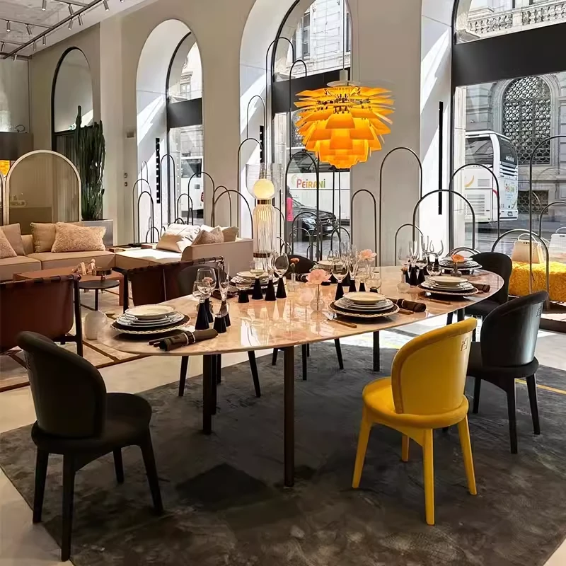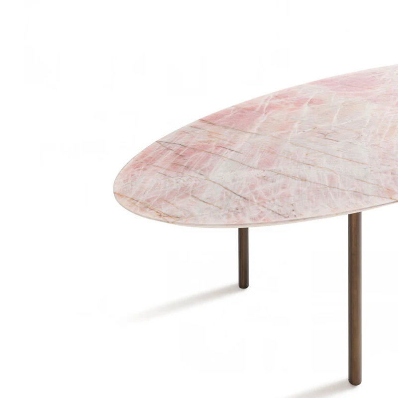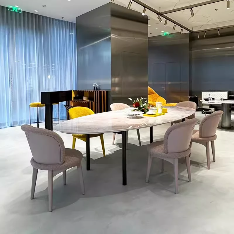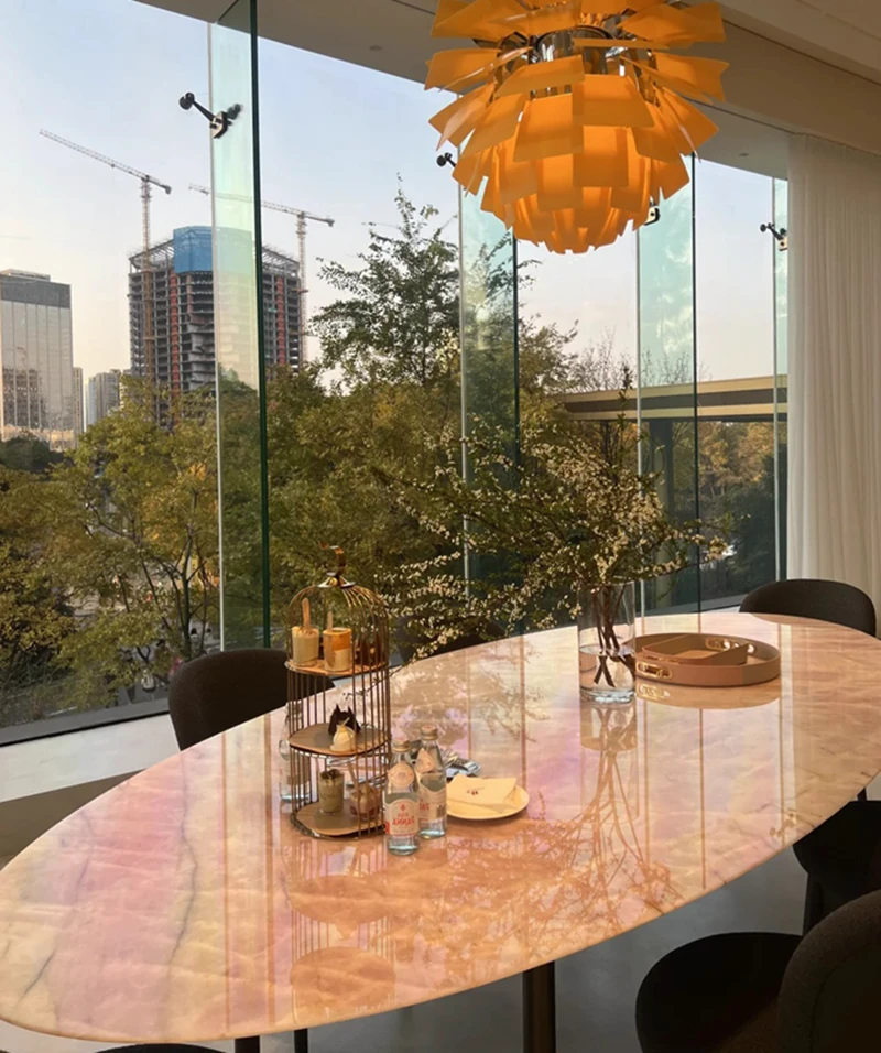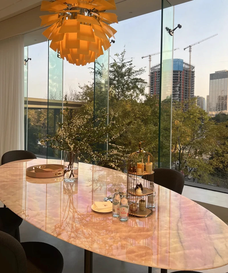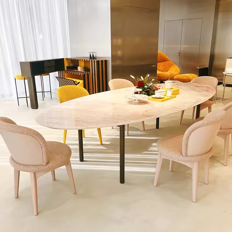天然豪華石粉使用のイタリアンデザイン エレガントな楕円形マーブルダイニングテーブル モダン&シンプルなピンクマーブルテーブルで、食卓を彩りましょう!