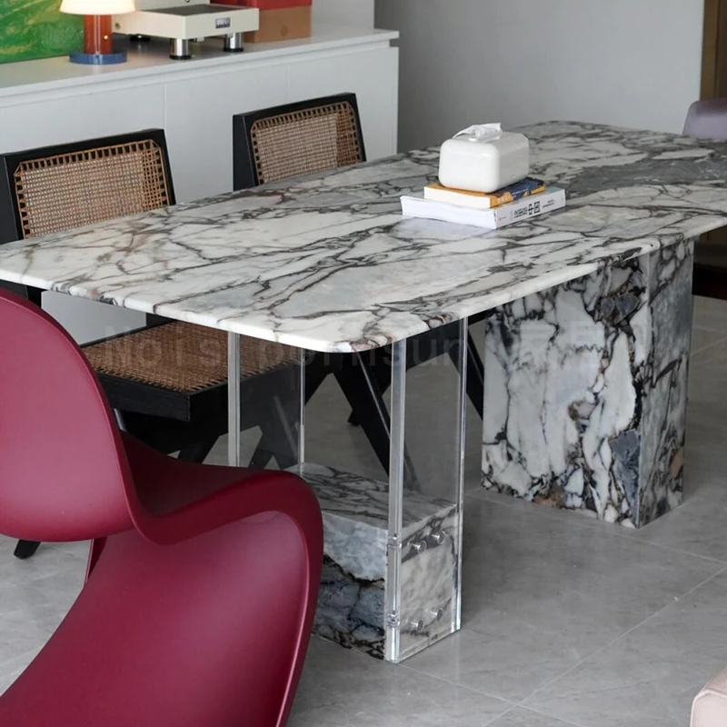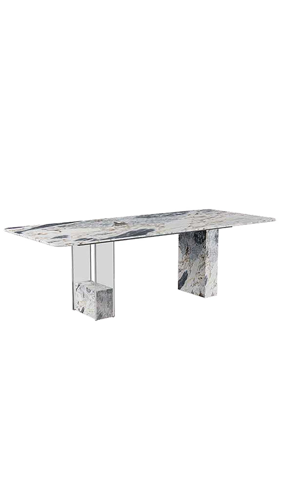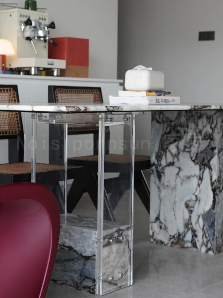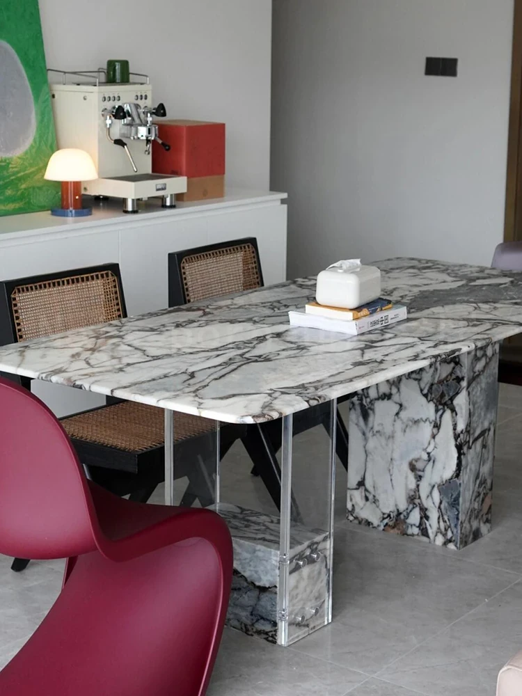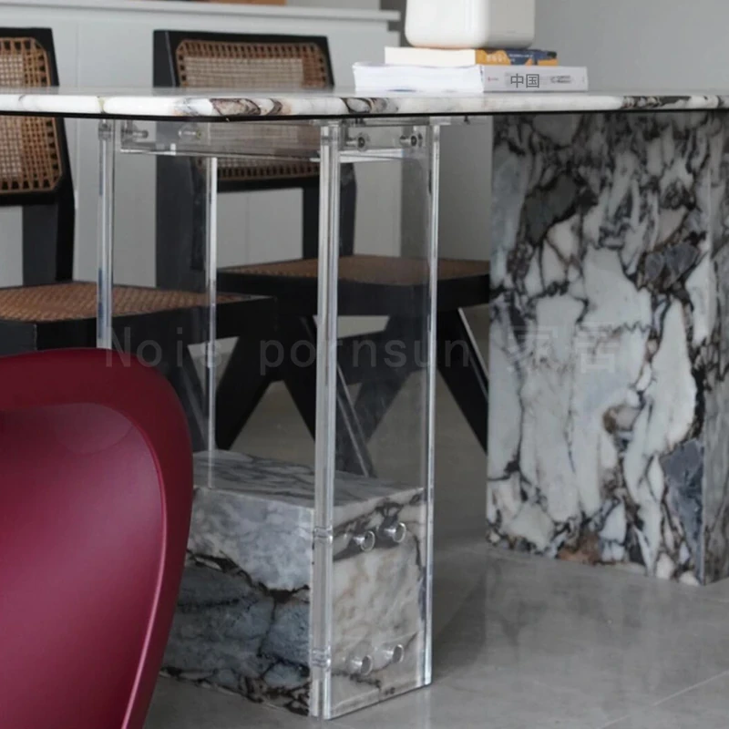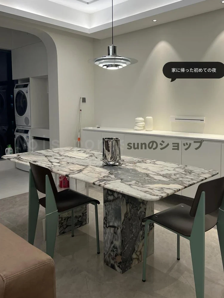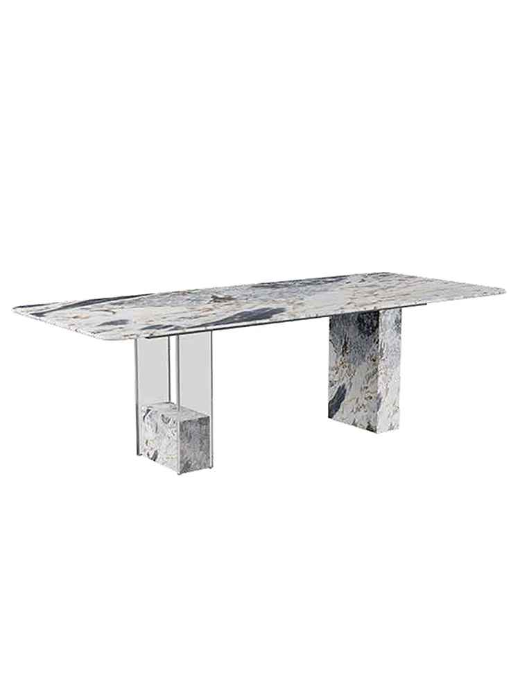 北欧風エレファントホワイト大理石ダイニングテーブル - アクリルモダンミニマリズム、コンパクトな長方形デザインで、家族や友人との特別なひとときを演出します。どんなサイズのお部屋にもぴったりの豪華な石の食卓!