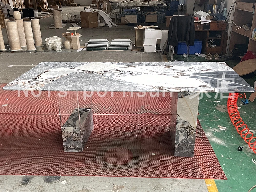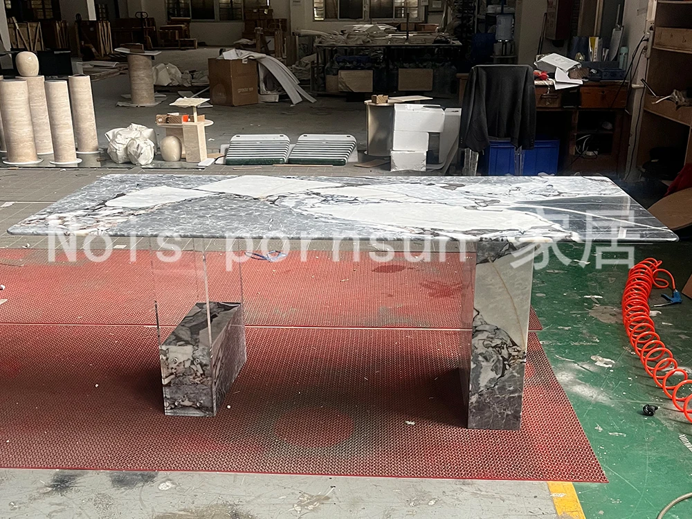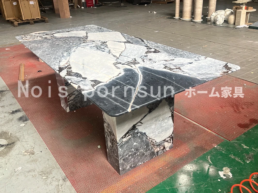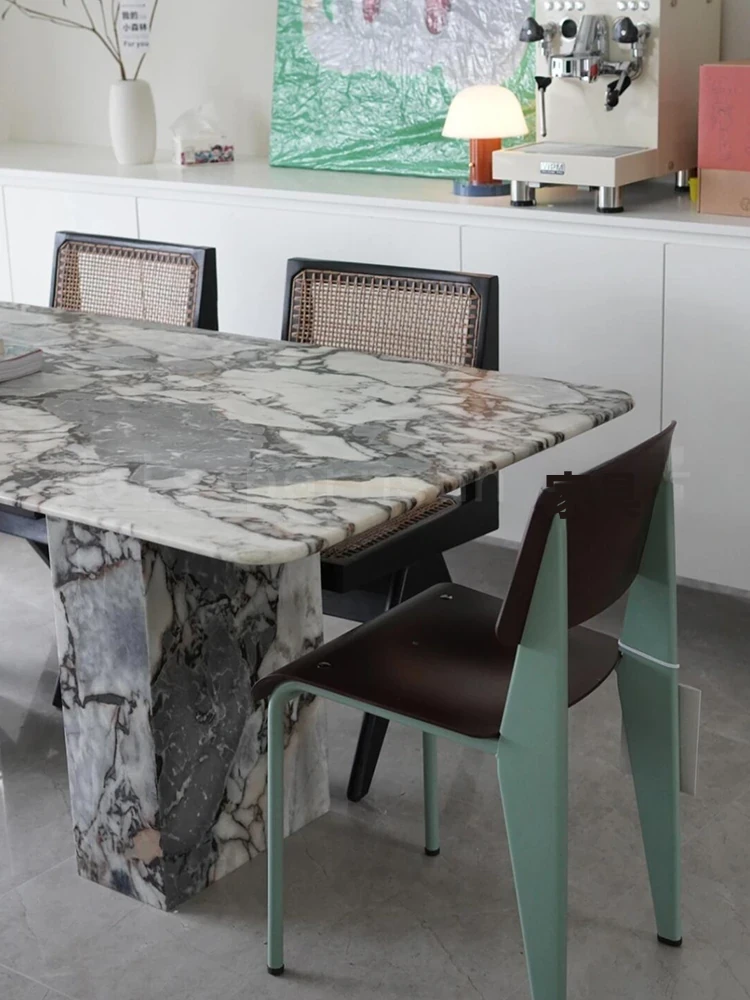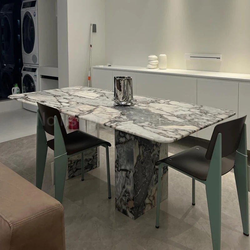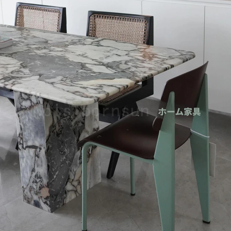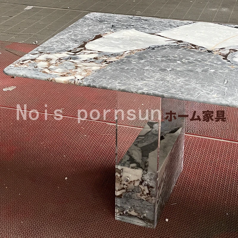北欧風エレファントホワイト大理石ダイニングテーブル - アクリルモダンミニマリズム、コンパクトな長方形デザインで、家族や友人との特別なひとときを演出します。どんなサイズのお部屋にもぴったりの豪華な石の食卓!
