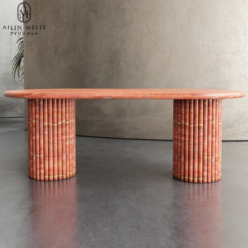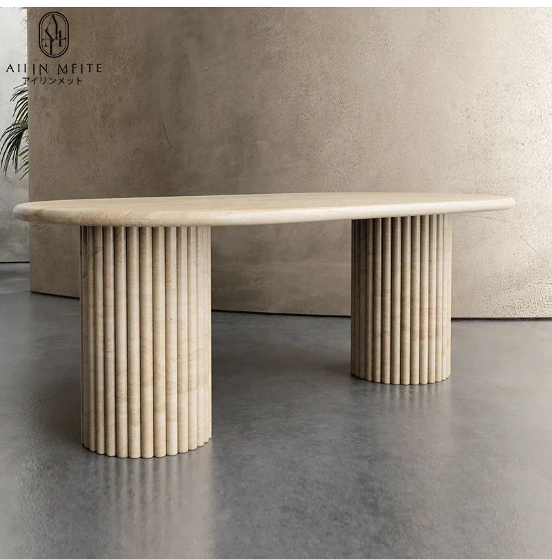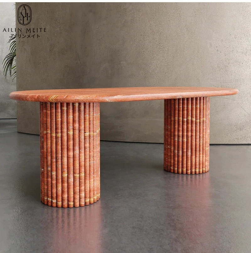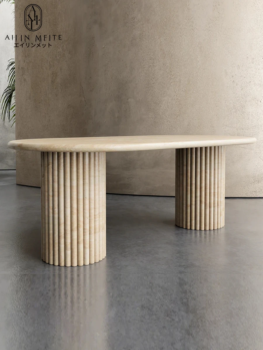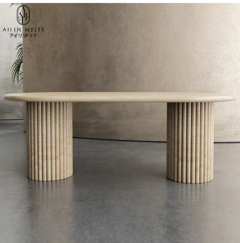 北欧風のラグジュアリー天然石のダイニングテーブル|イタリアンミニマリズムの別荘・ホテル向けデザイン|スタイリッシュな長テーブルで特別な食事体験をお届け!