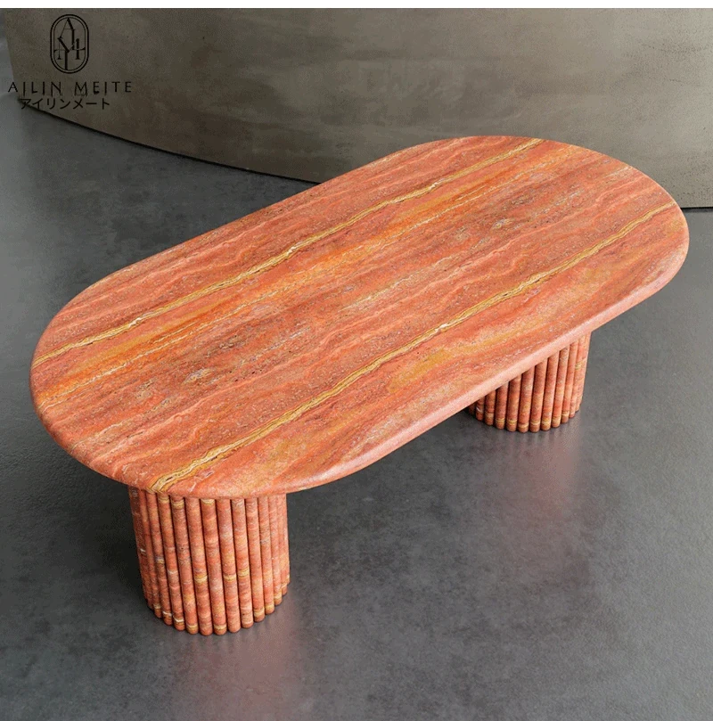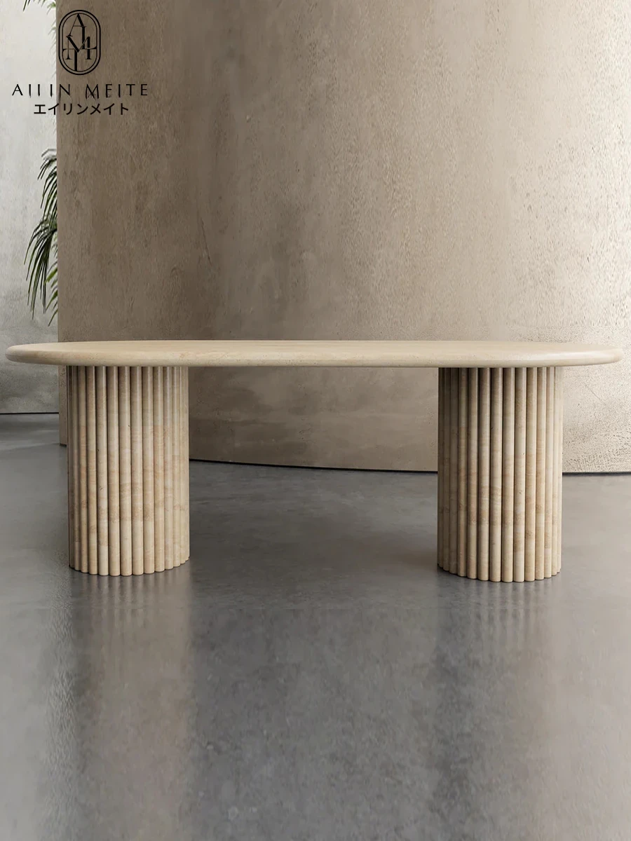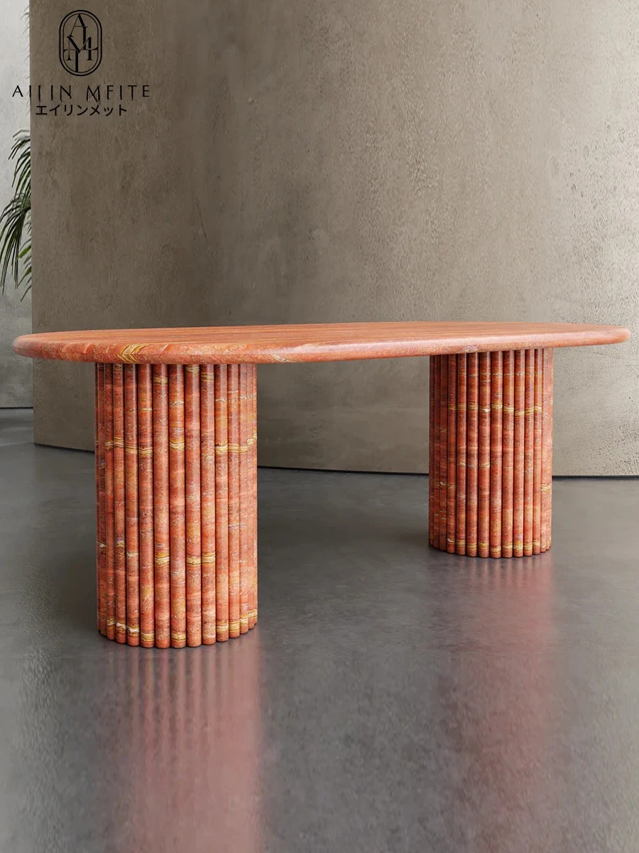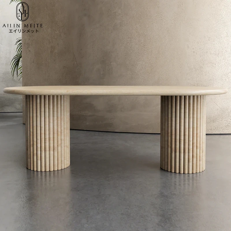 北欧風のラグジュアリー天然石のダイニングテーブル|イタリアンミニマリズムの別荘・ホテル向けデザイン|スタイリッシュな長テーブルで特別な食事体験をお届け!