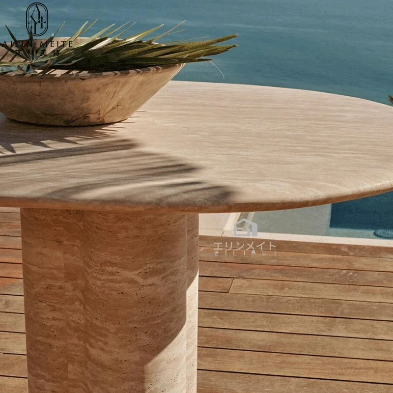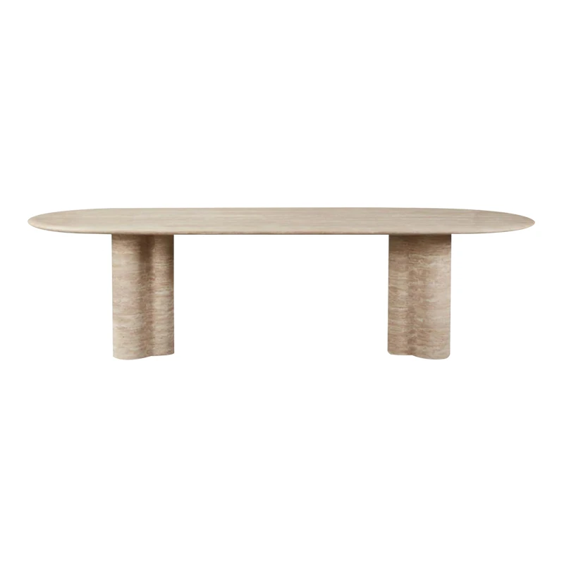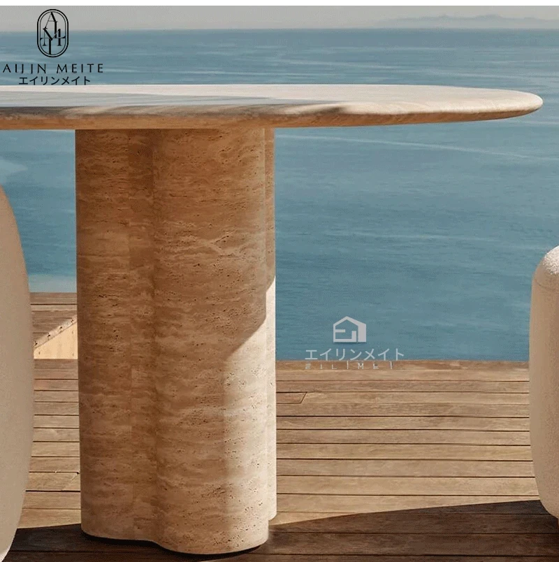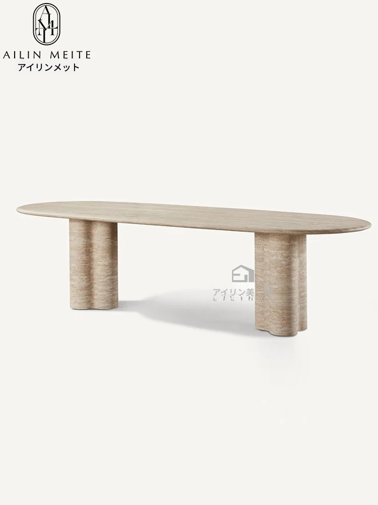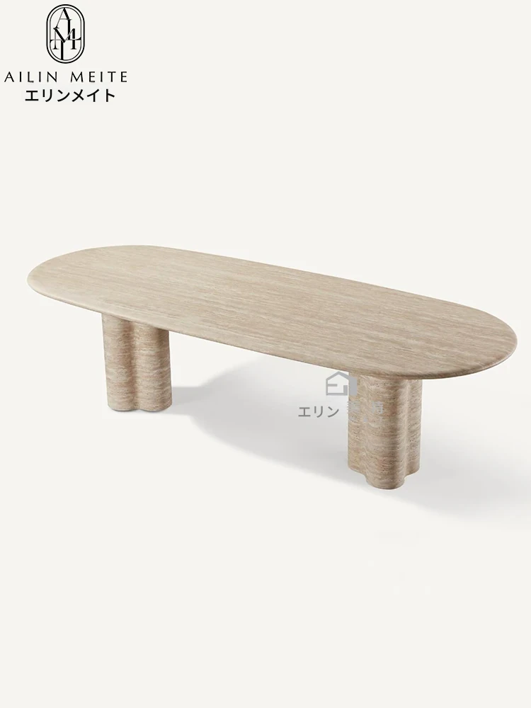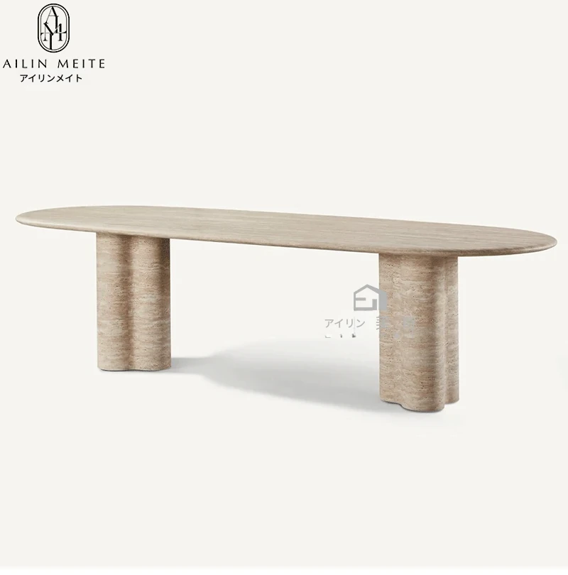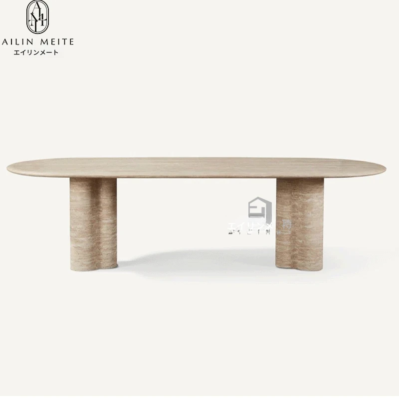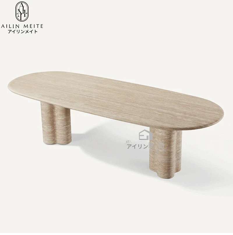 北欧スタイルのラグジュアリーなオーバル大理石ダイニングテーブル - シンプルで洗練された侘び寂びデザイン、リビングにぴったりのデザイナーズ家具。心地よい食卓を演出します!