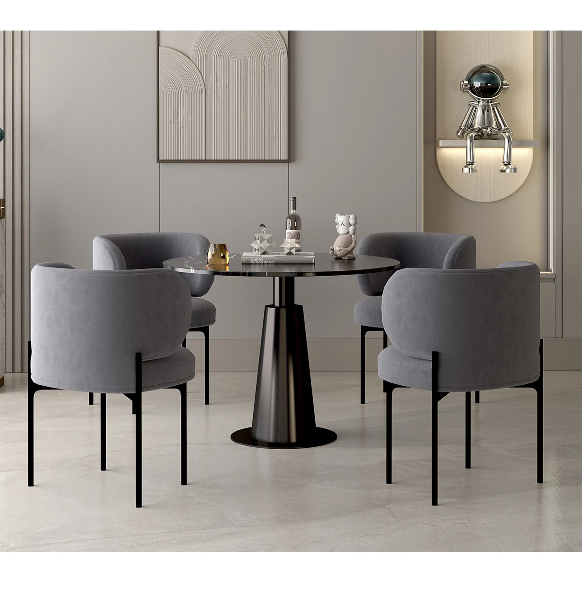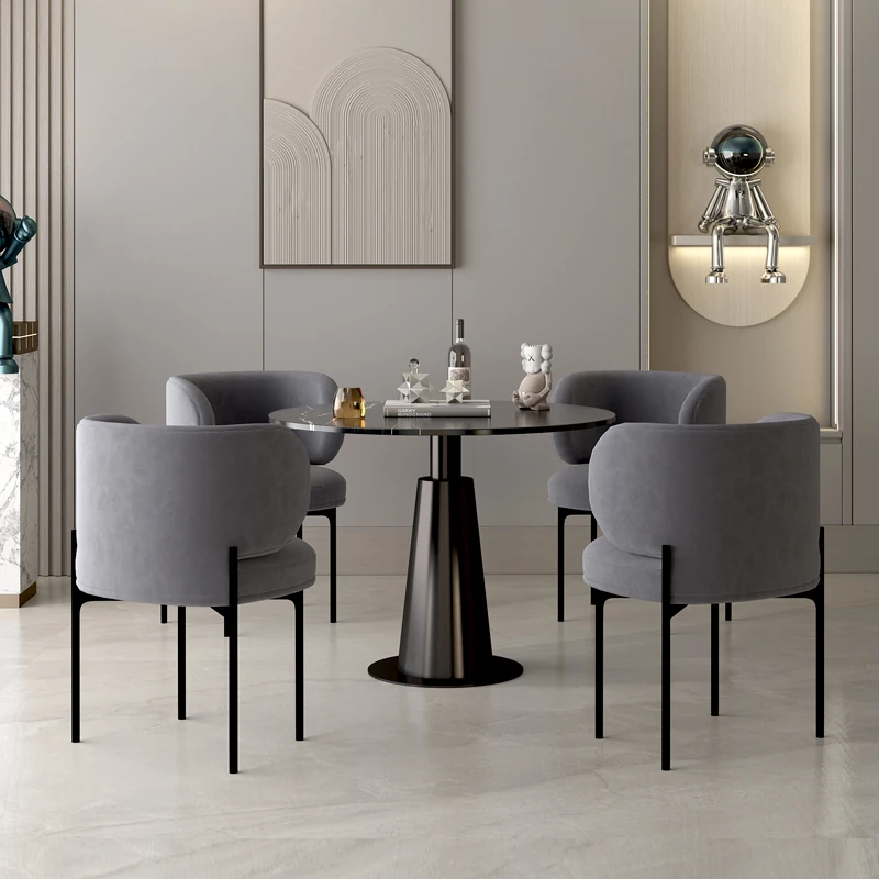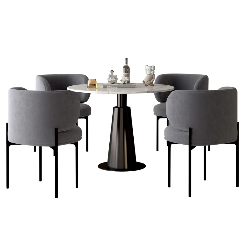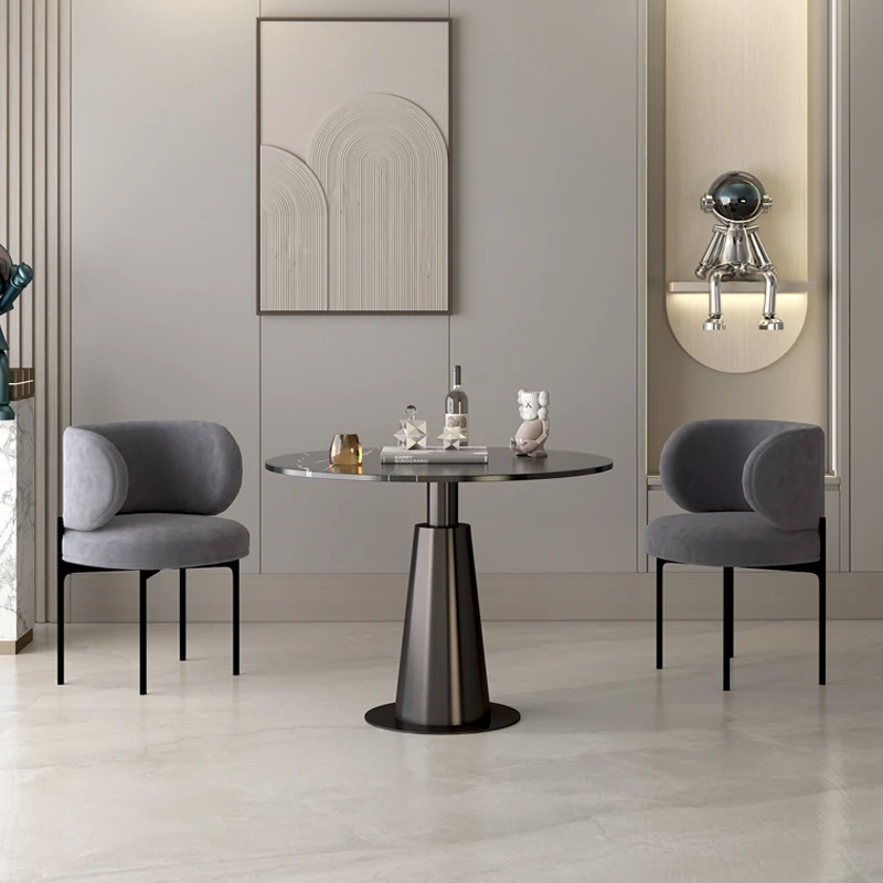 北欧風ミニマルデザインの円形ダイニングテーブルセット - 美容院やカフェに最適!快適な会話とリラックス空間を提供する家庭用の洗練されたテーブルと椅子の組み合わせ。