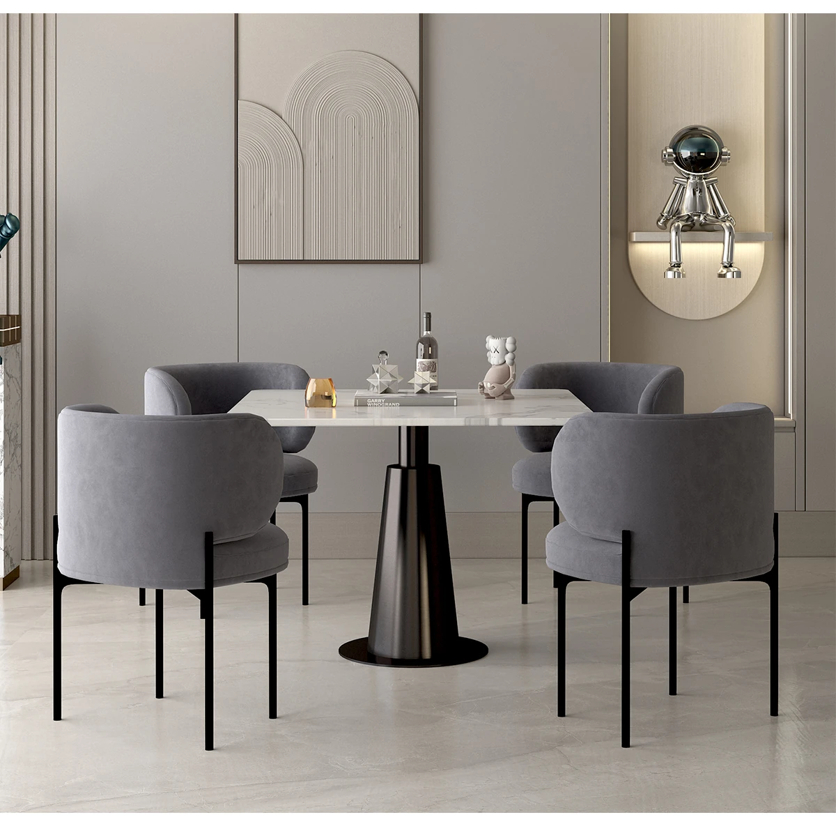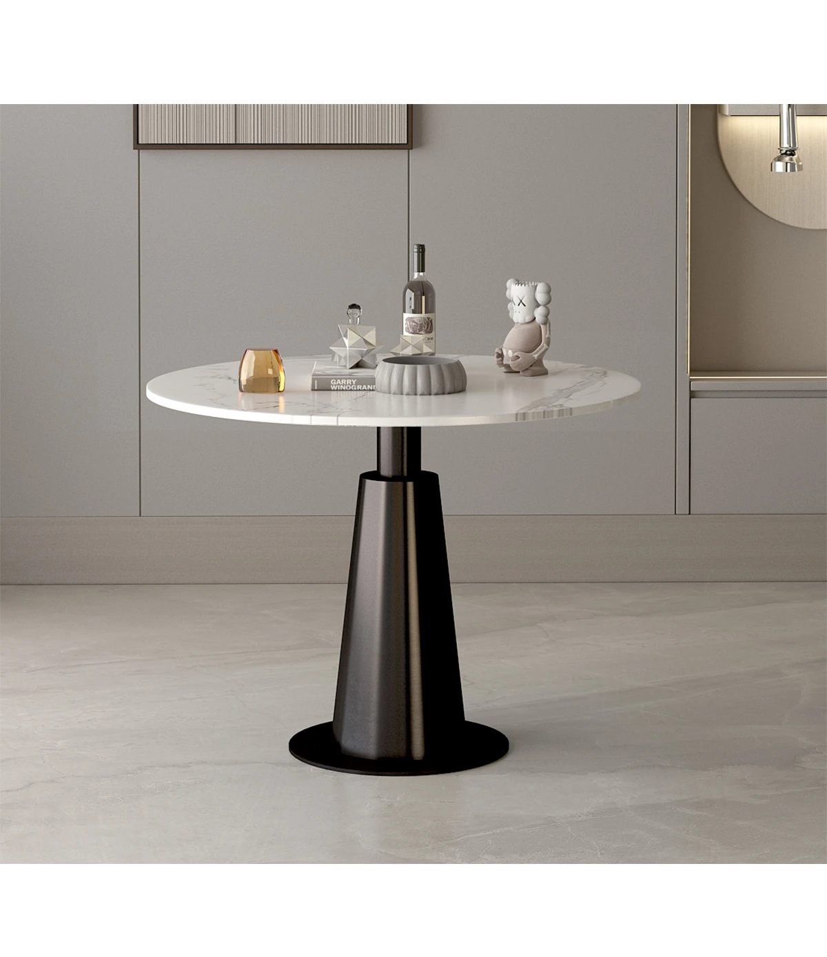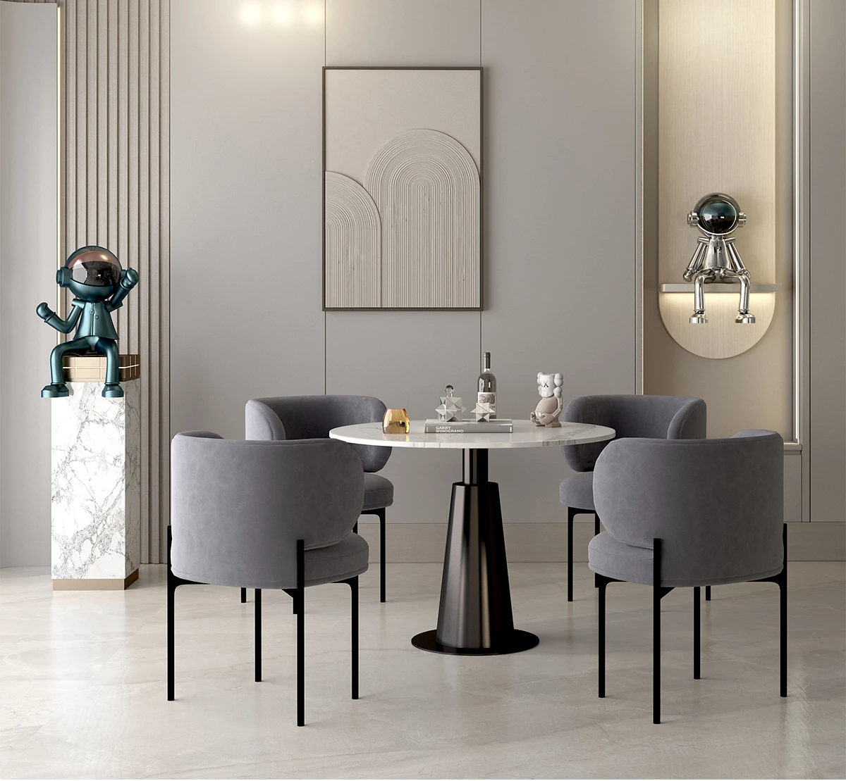 北欧風ミニマルデザインの円形ダイニングテーブルセット - 美容院やカフェに最適!快適な会話とリラックス空間を提供する家庭用の洗練されたテーブルと椅子の組み合わせ。
