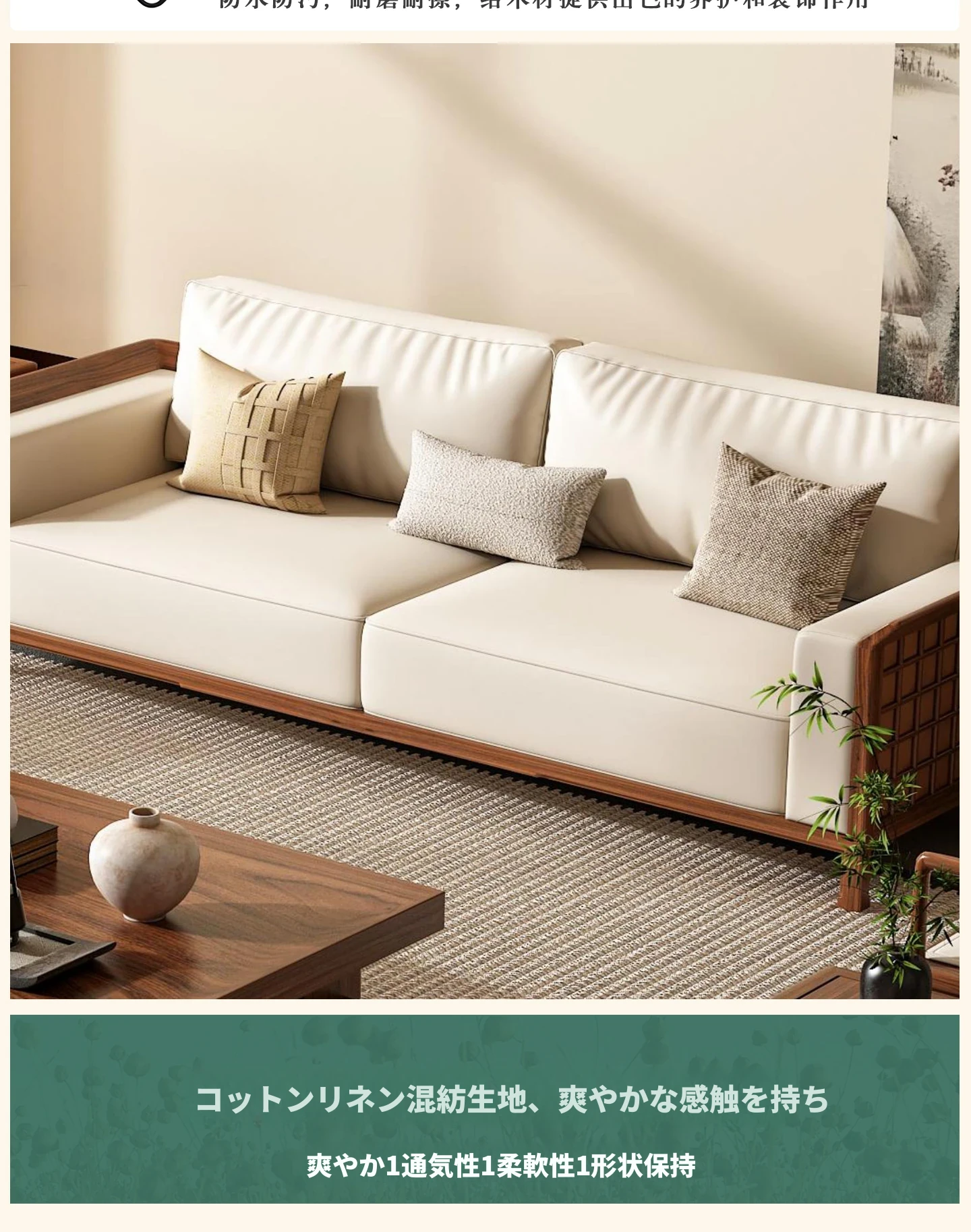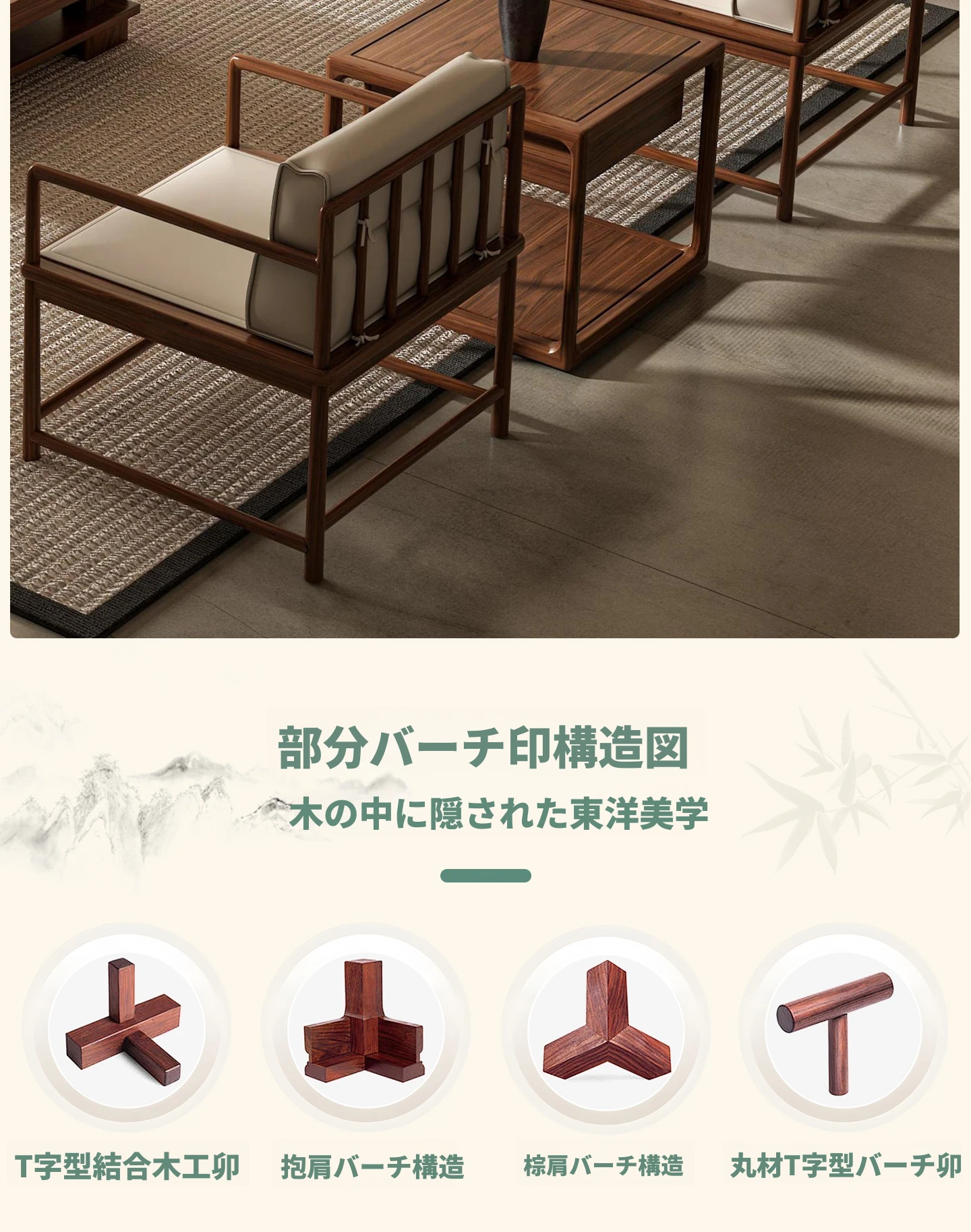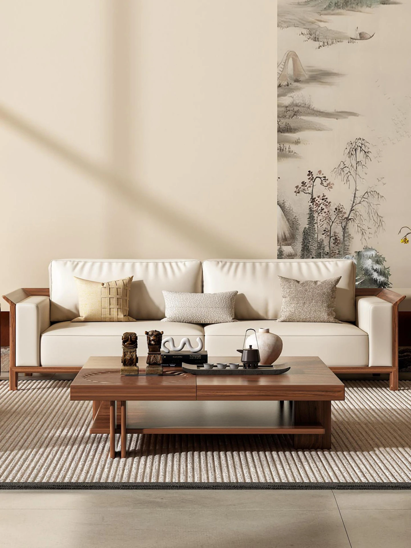 北米産ブラックウォールナットソファ - 宋式美学を取り入れた本革ソファ、贅沢なヴィラや広々としたリビングに最適なデザイナーズ新作!