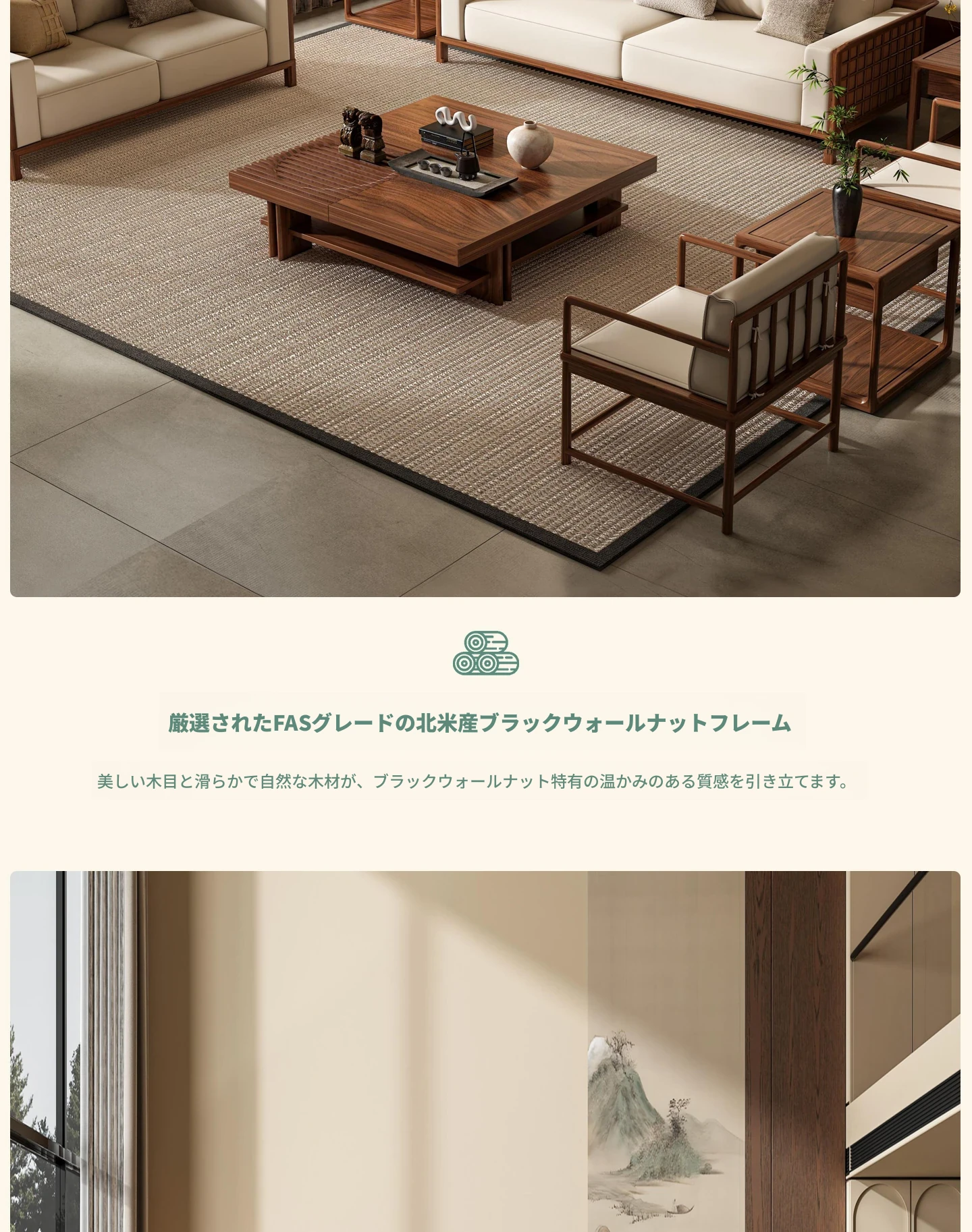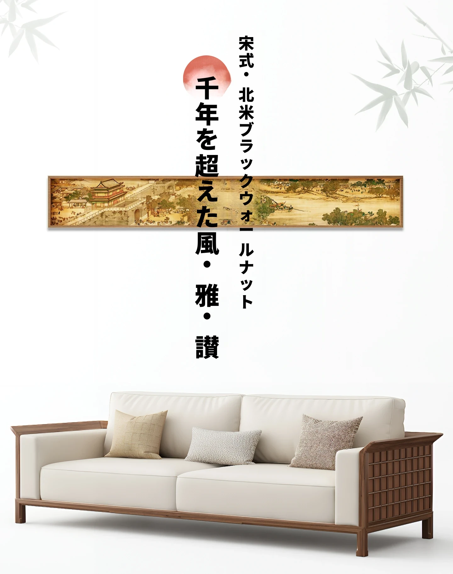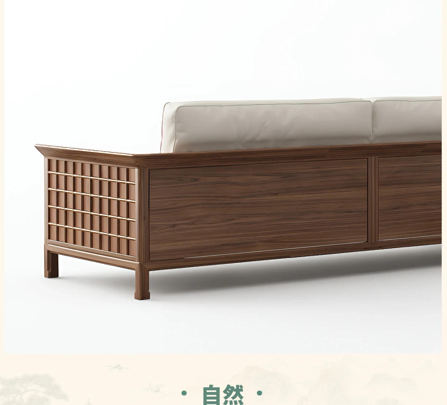 北米産ブラックウォールナットソファ - 宋式美学を取り入れた本革ソファ、贅沢なヴィラや広々としたリビングに最適なデザイナーズ新作!
