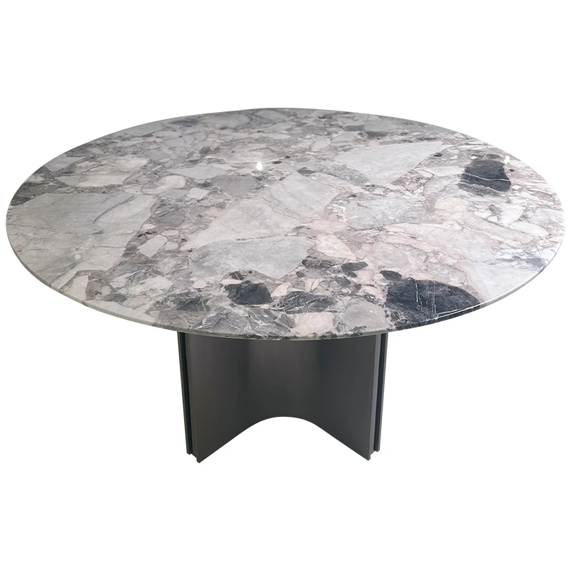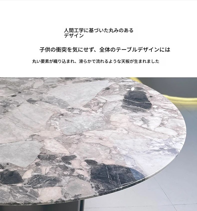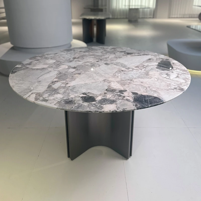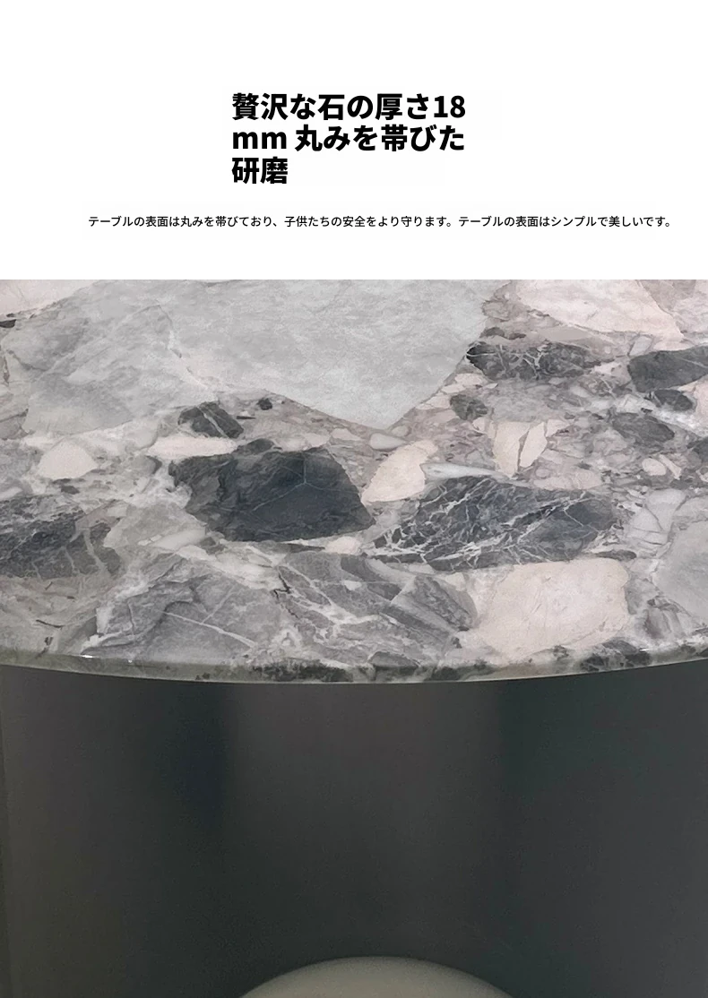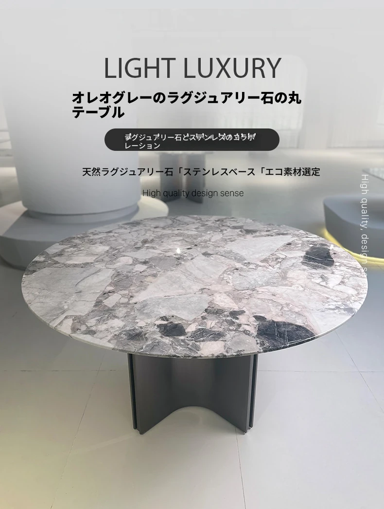 オレオグレー豪華石材ダイニングテーブル|現代的なイタリアンラウンドテーブルセット|高級別荘や豪邸に最適|美しい大理石デザインで、食事のひとときを特別なものに!