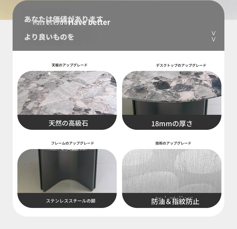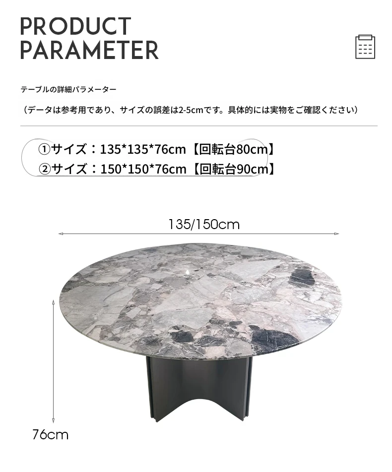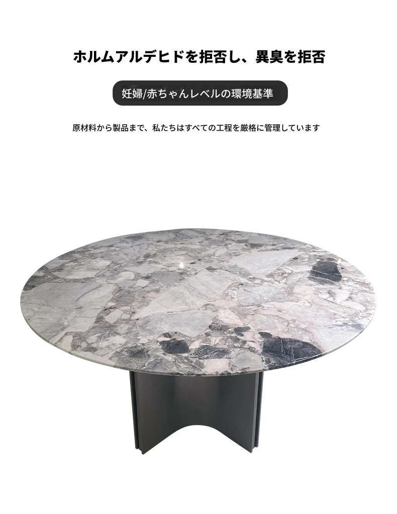 1.35*1.35メートル【回転盤80cm追加】オレオグレーラグジュアリー石のダイニングテーブル