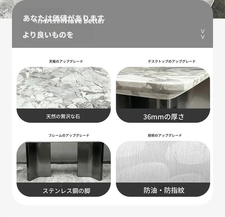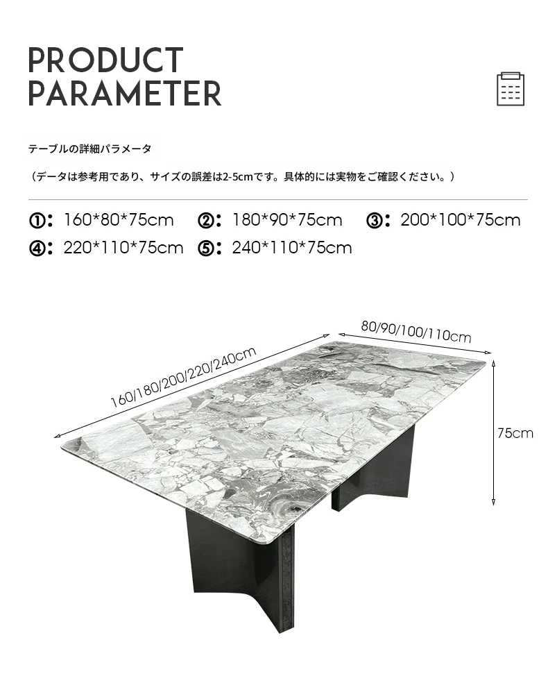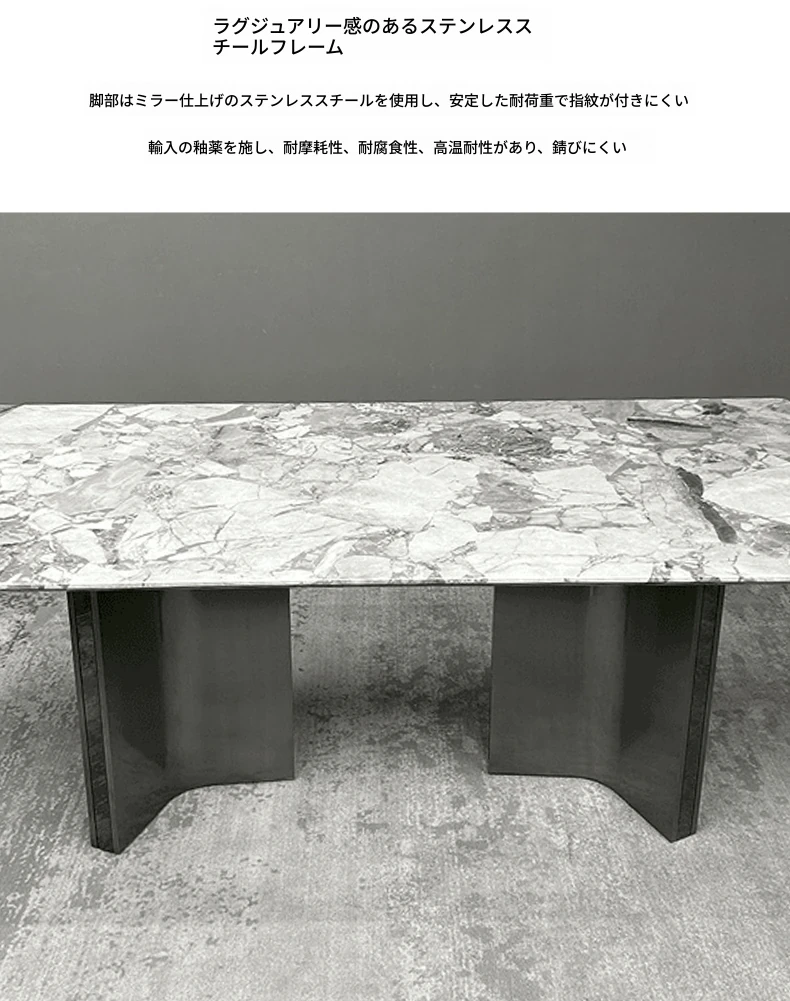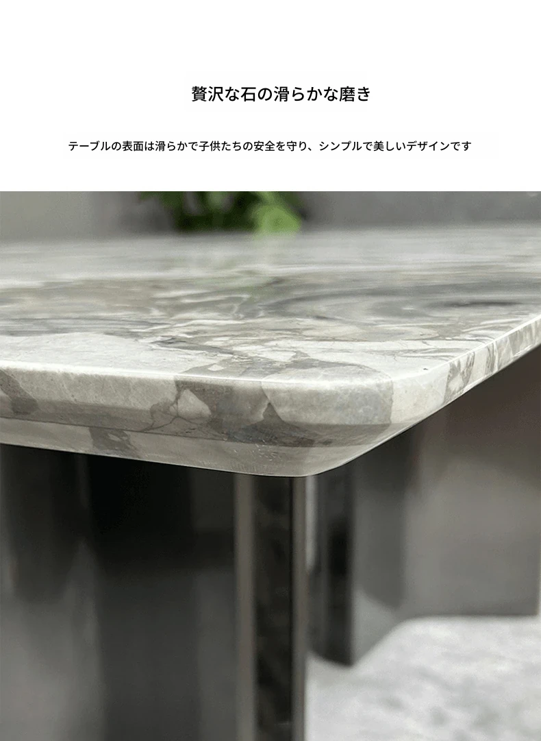 オレオグレー高級天然大理石ダイニングテーブル - ヴィラや豪邸にぴったりのエレガントな長方形デザイン。洗練された雰囲気で、食事のひとときを特別に演出します。テーブルと椅子のセットで、贅沢な空間をお楽しみください。