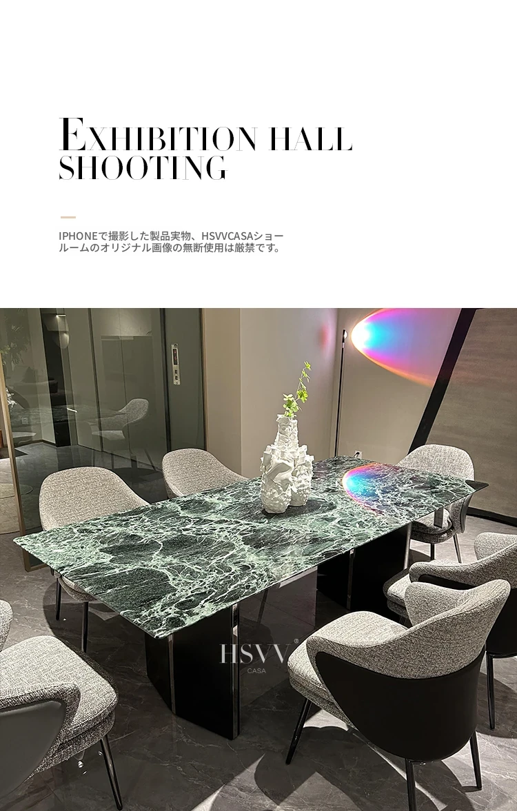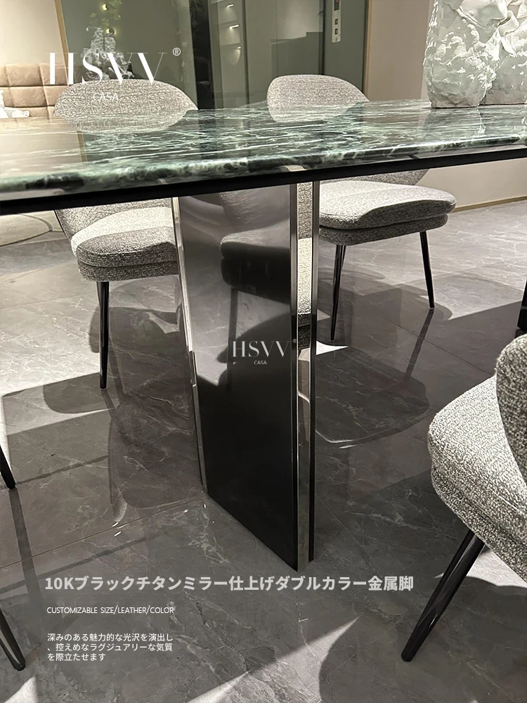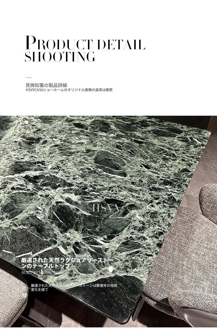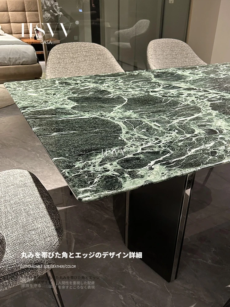プラダグリーン天然石製ダイニングテーブル - デザイナーが手掛けた長方形の高級家用テーブル・椅子セット、洗練された大平層や別荘に最適!