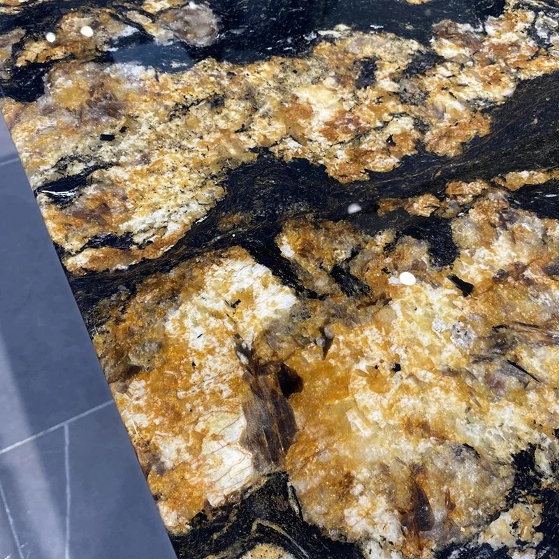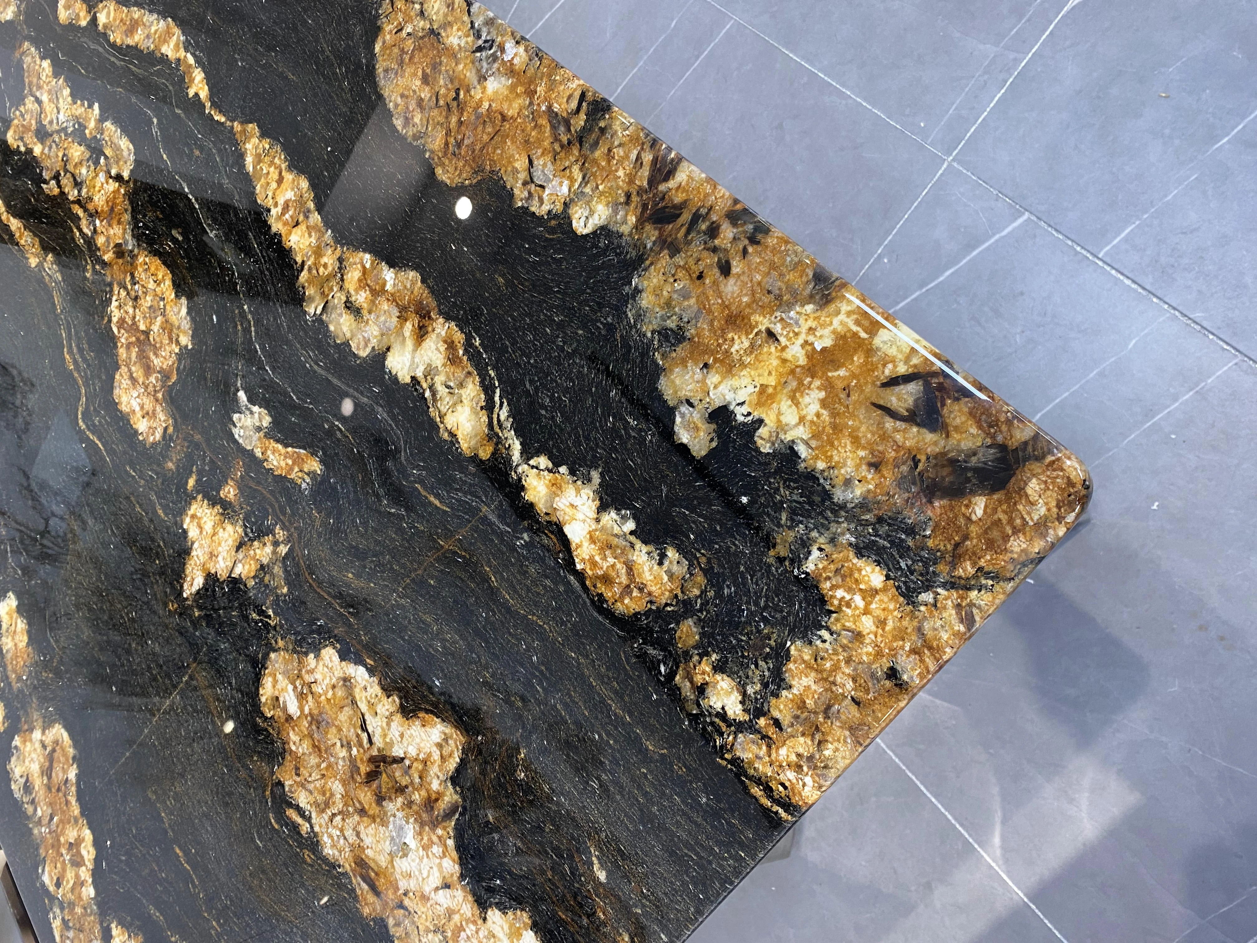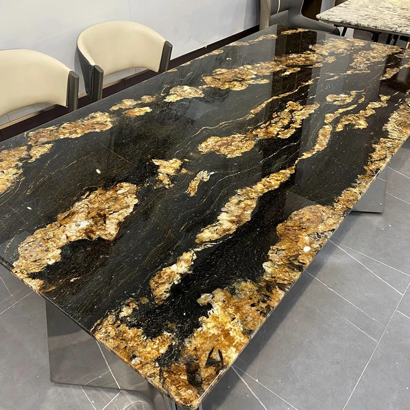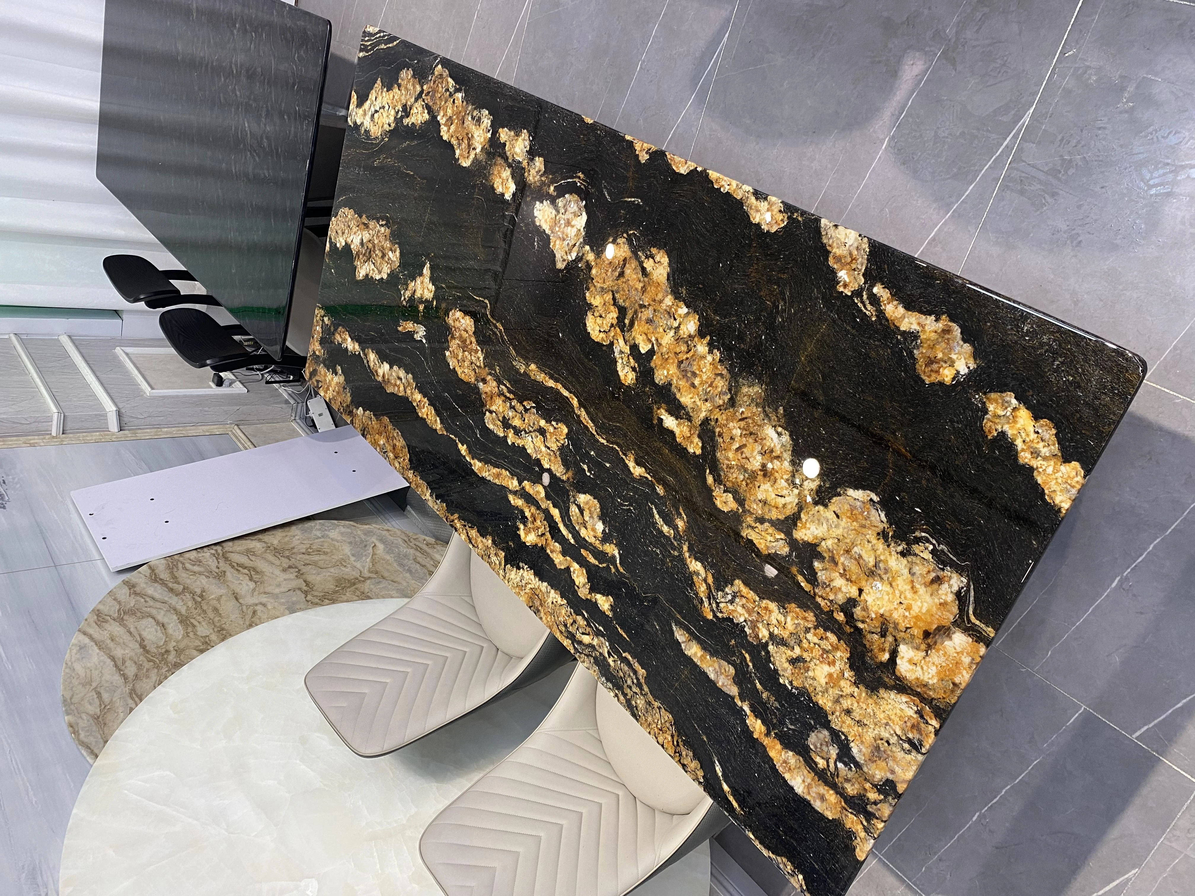 2.0*1.0メートルゴールドシルク豪華石製ダイニングテーブル