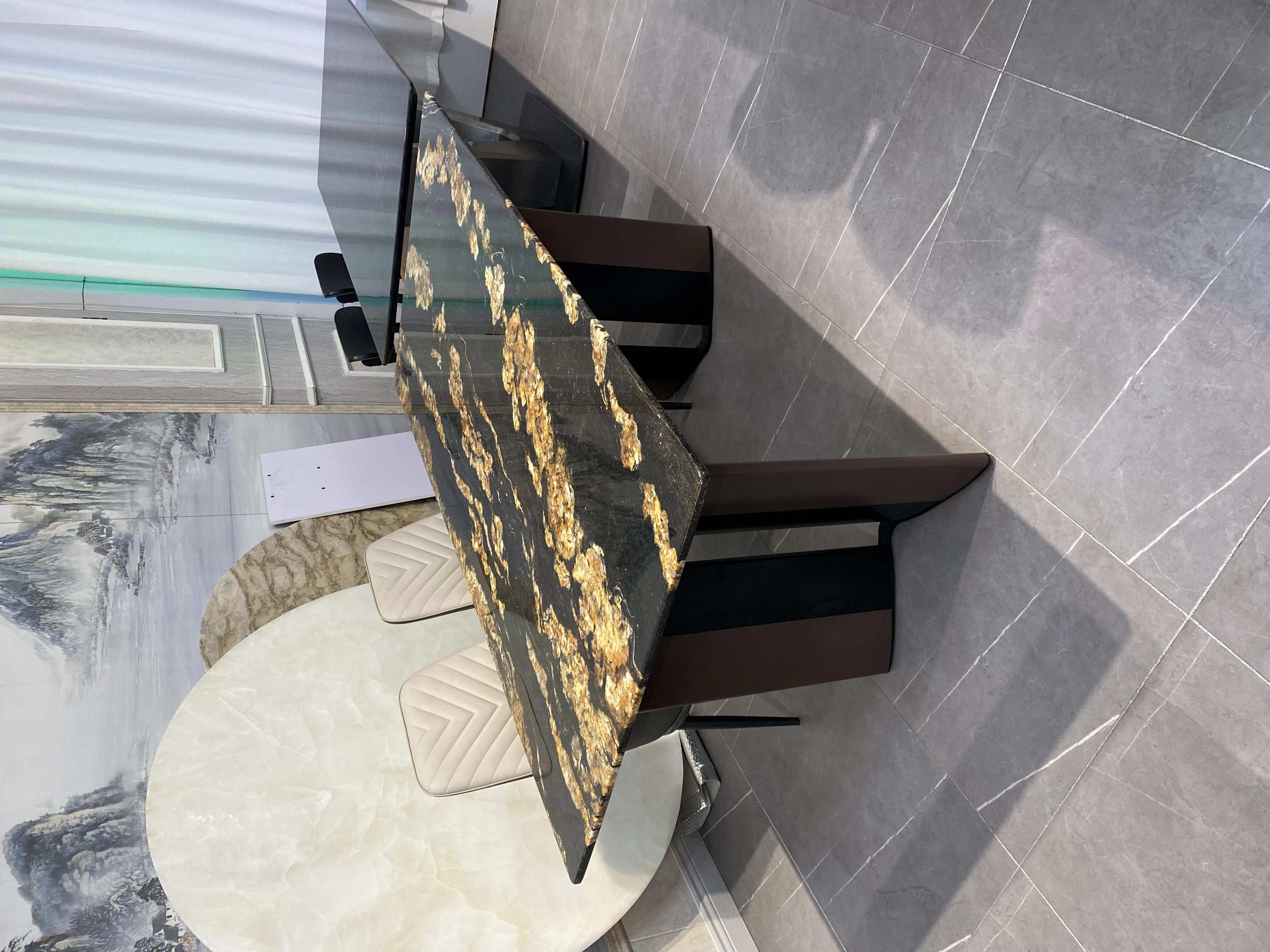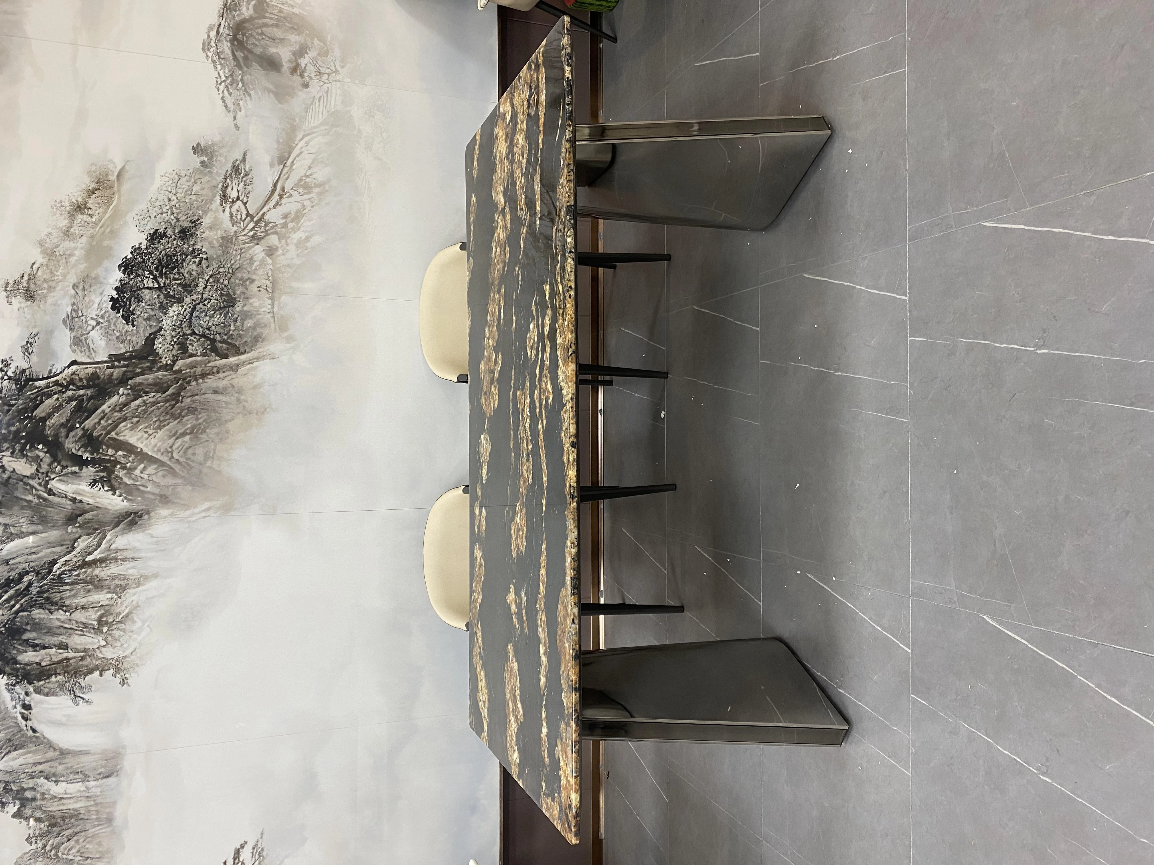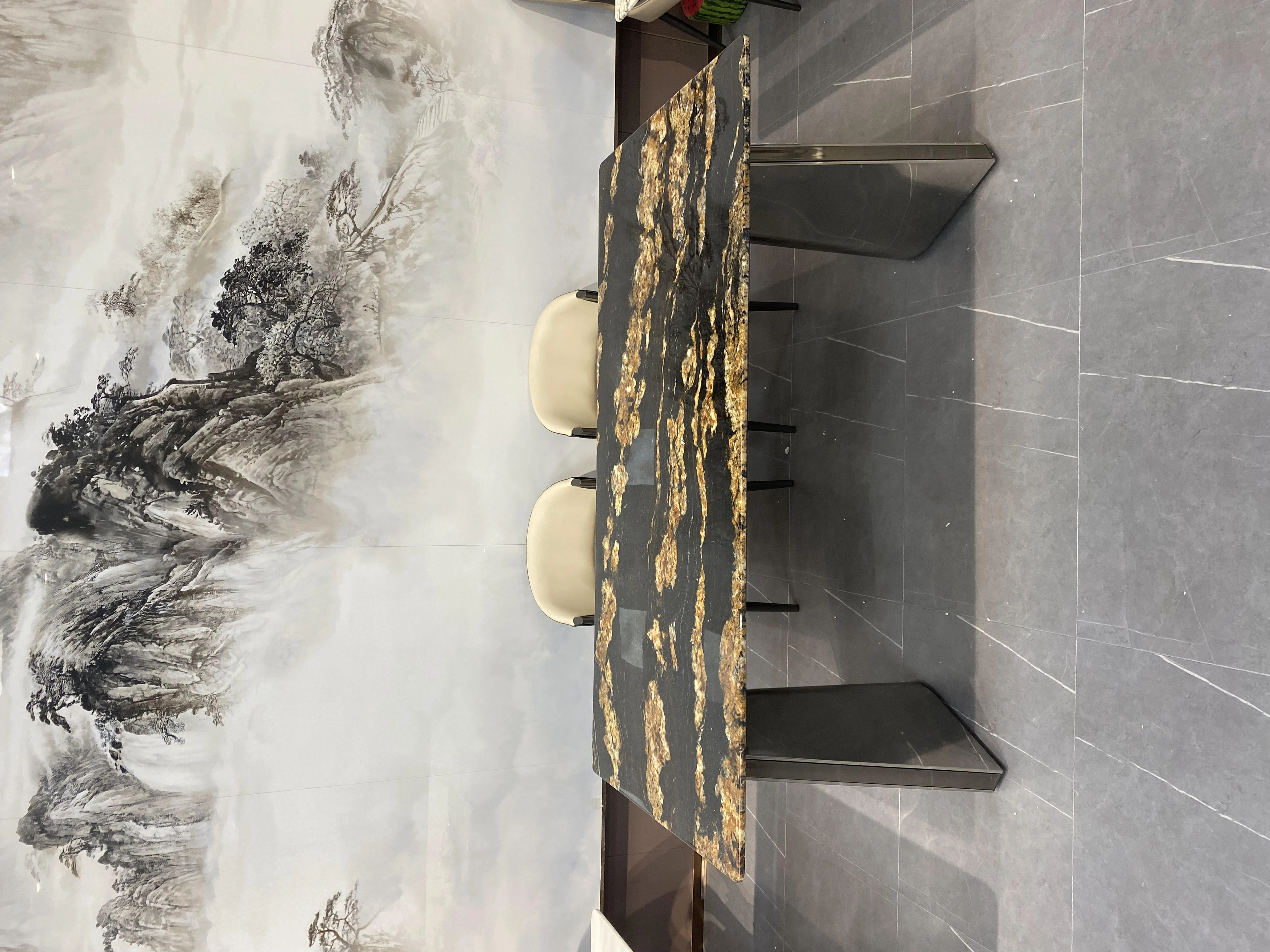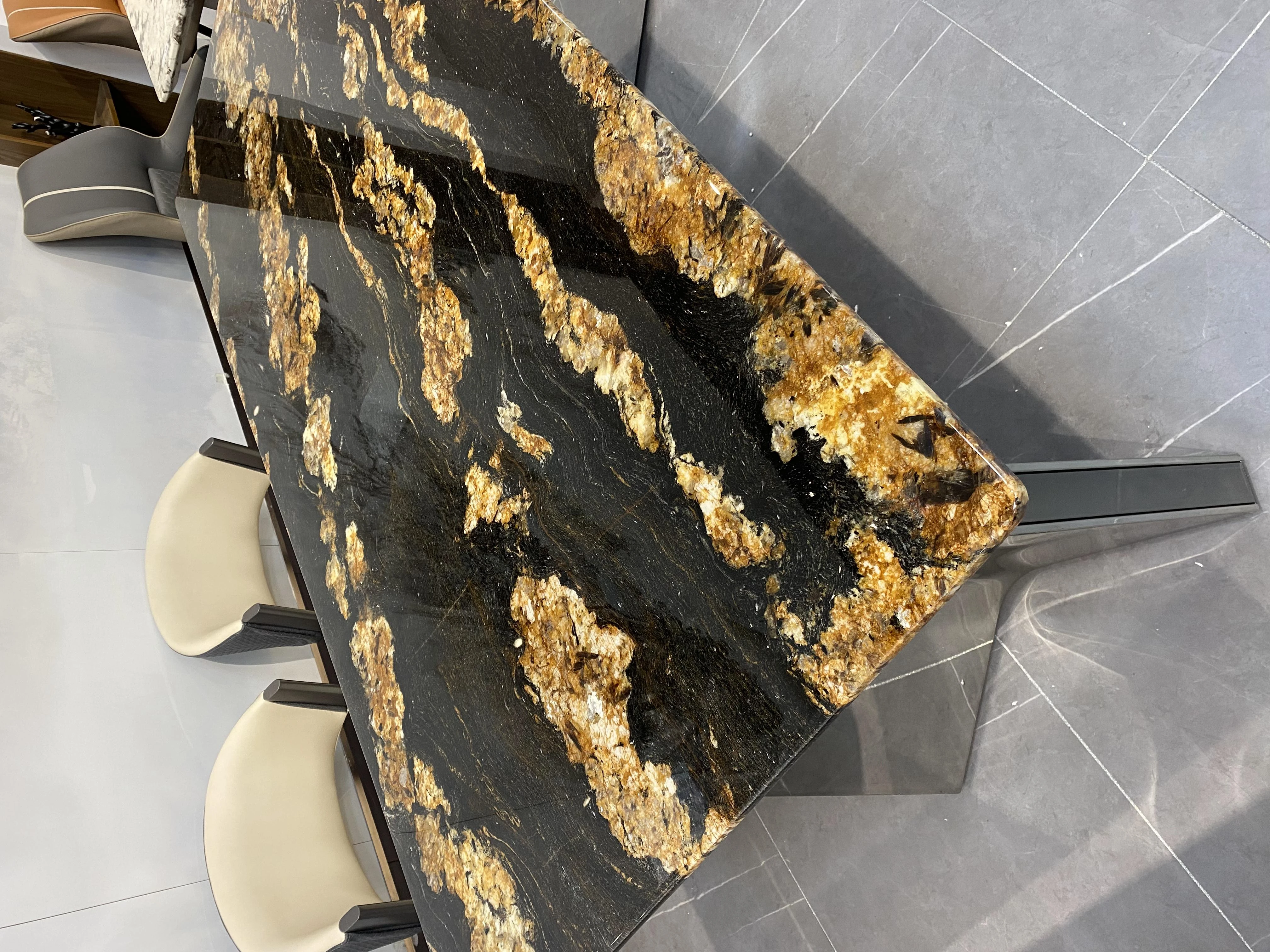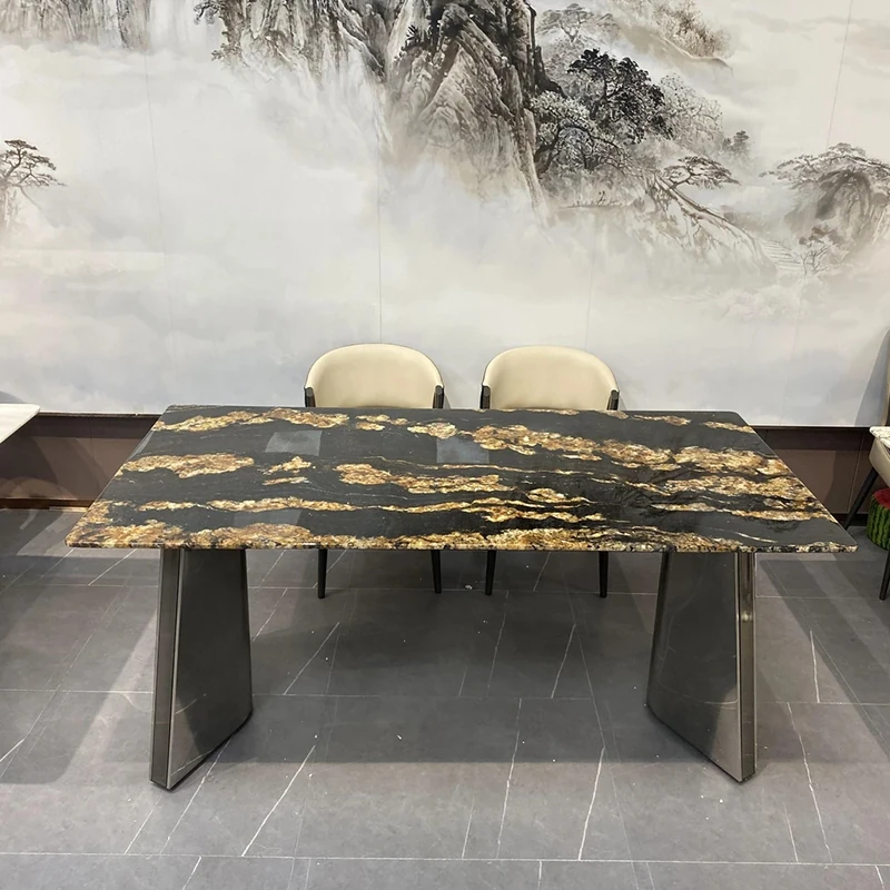 1.8*0.9メートルゴールドシルク豪華石製ダイニングテーブル