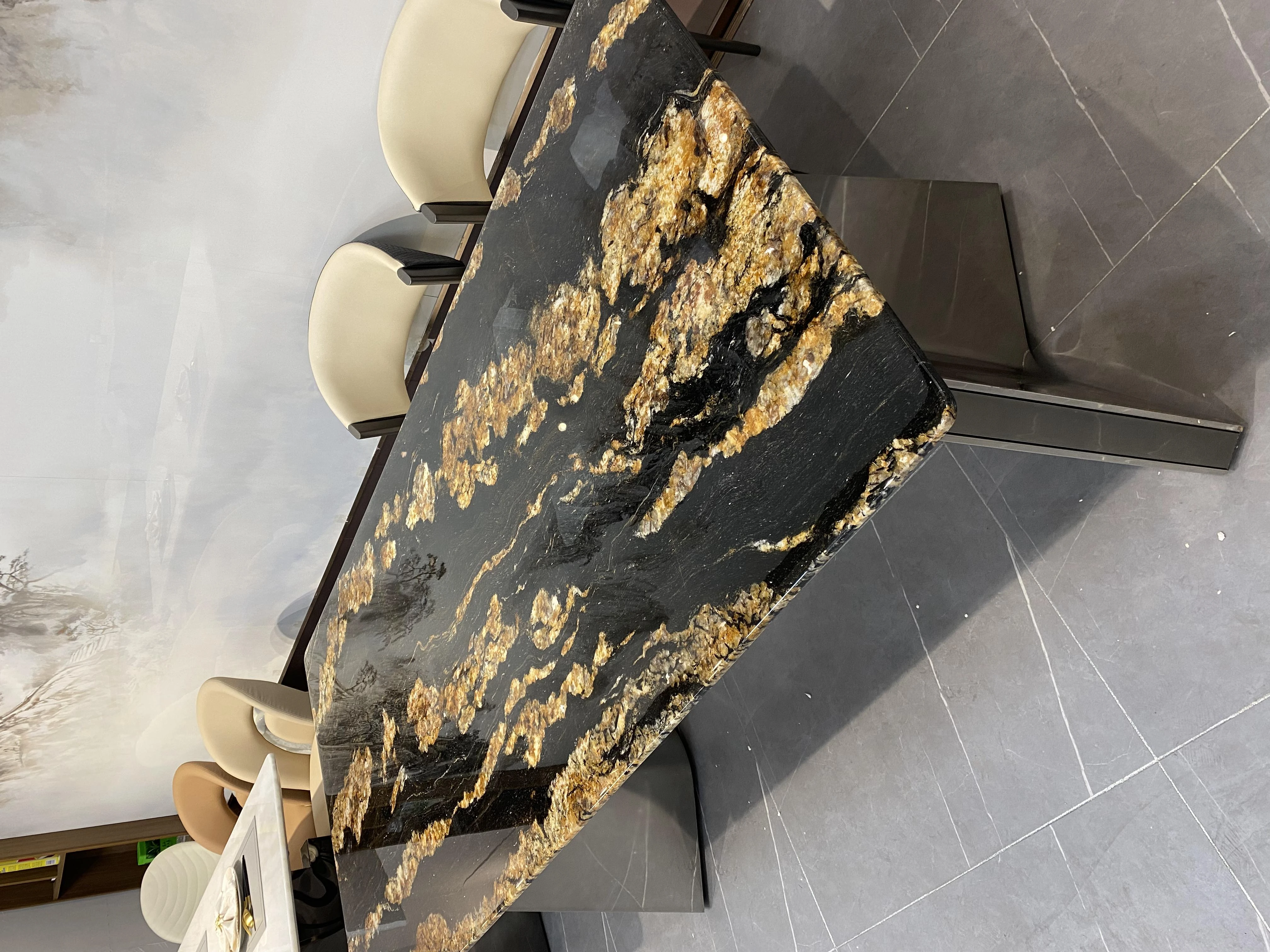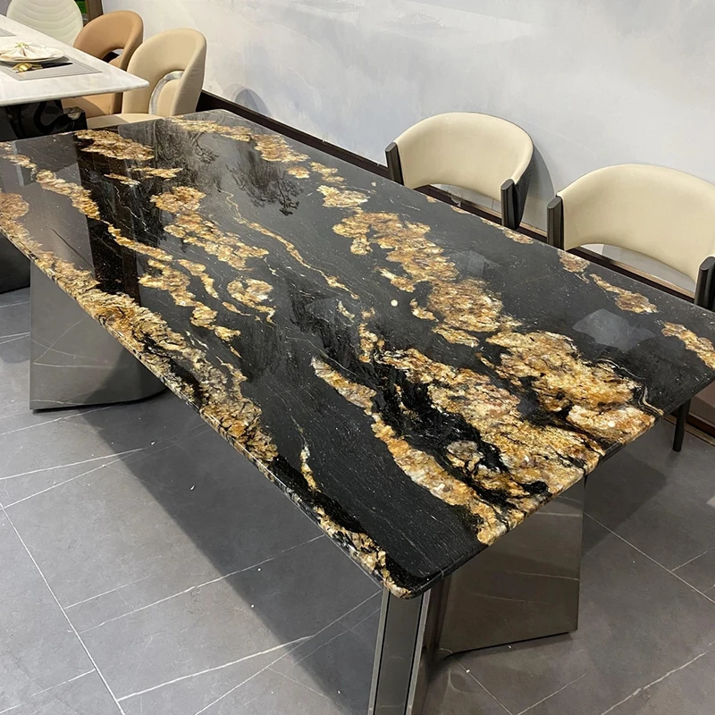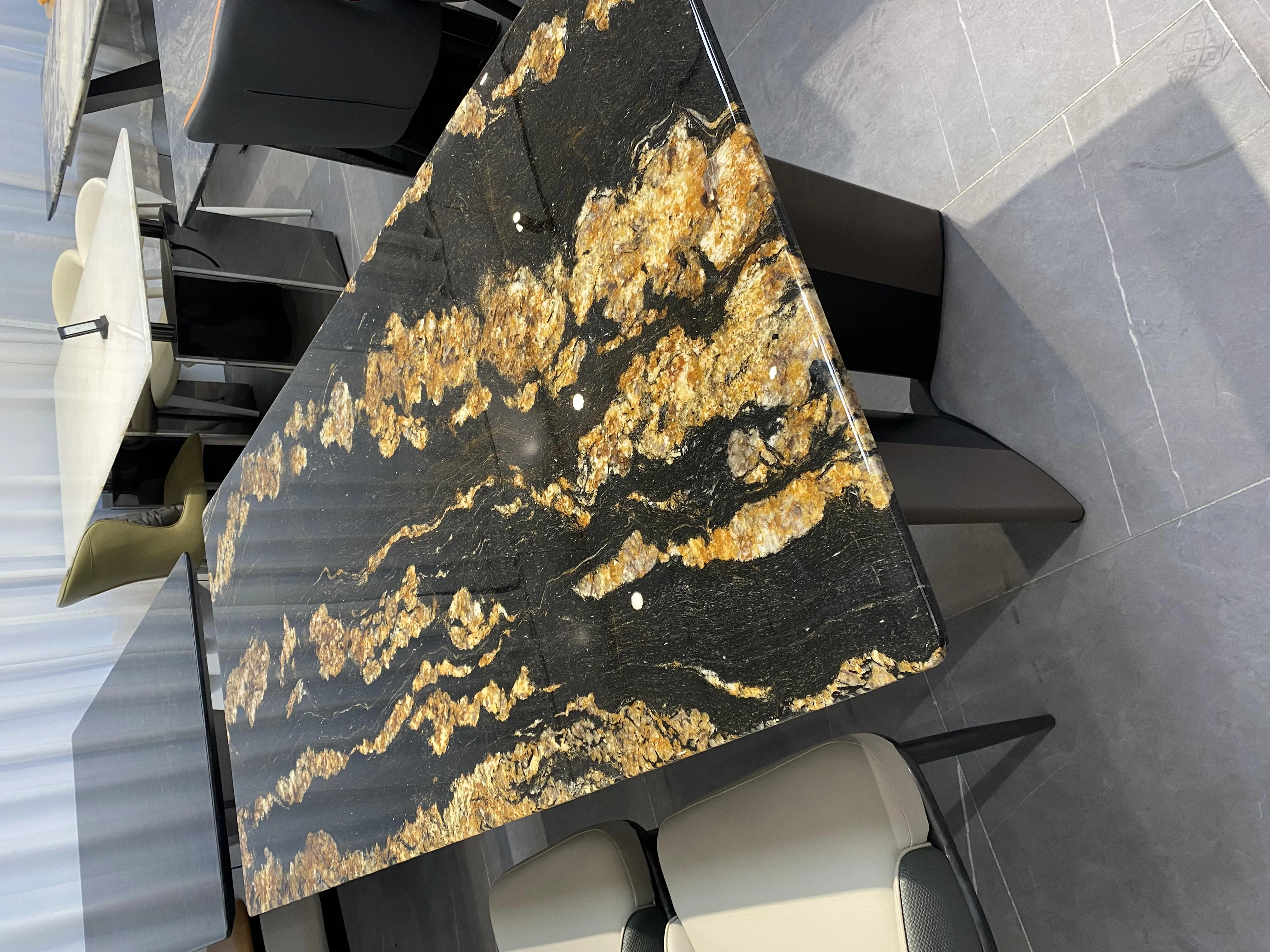 2.2*1.1メートルゴールドシルク豪華石製ダイニングテーブル
