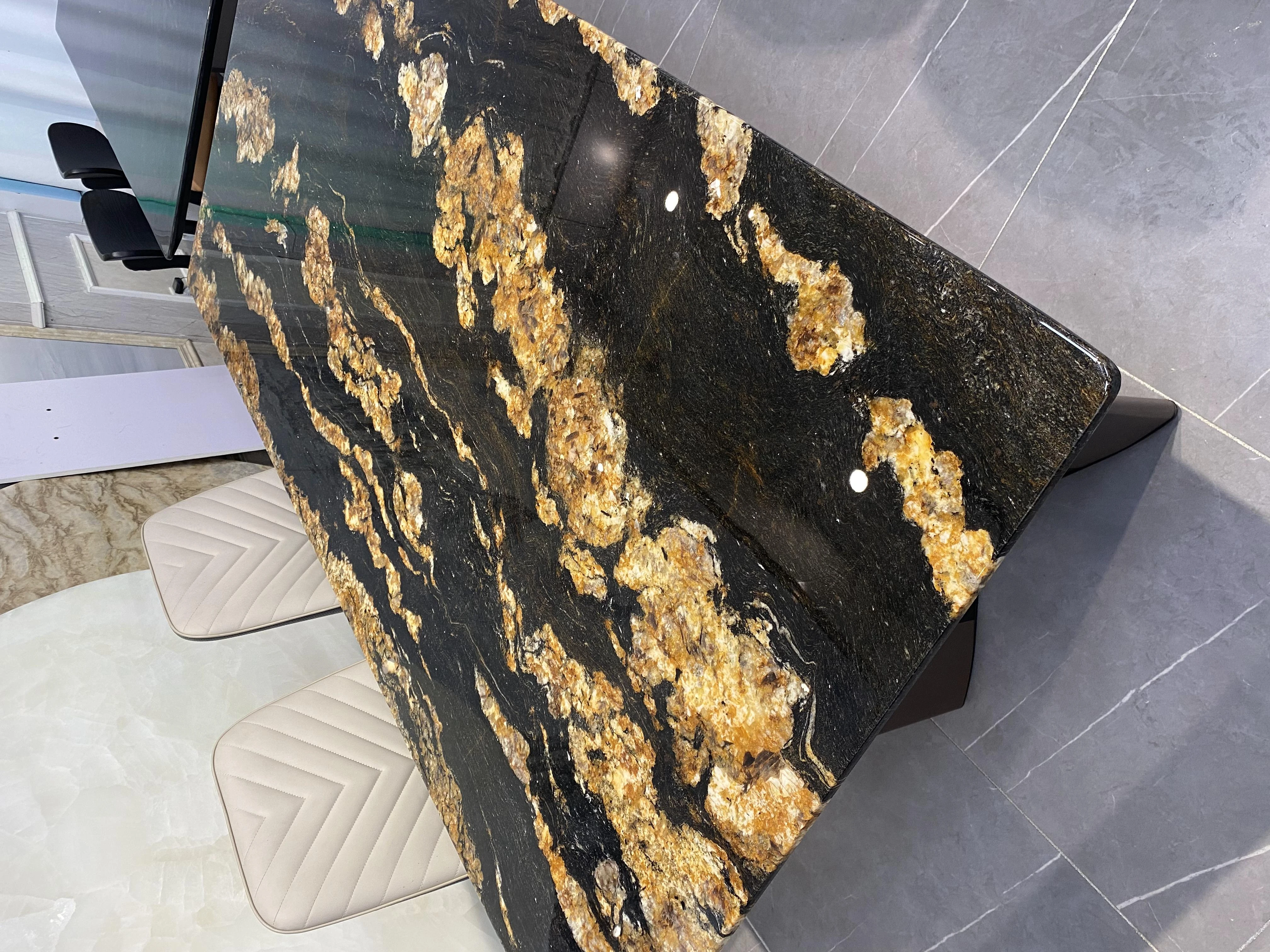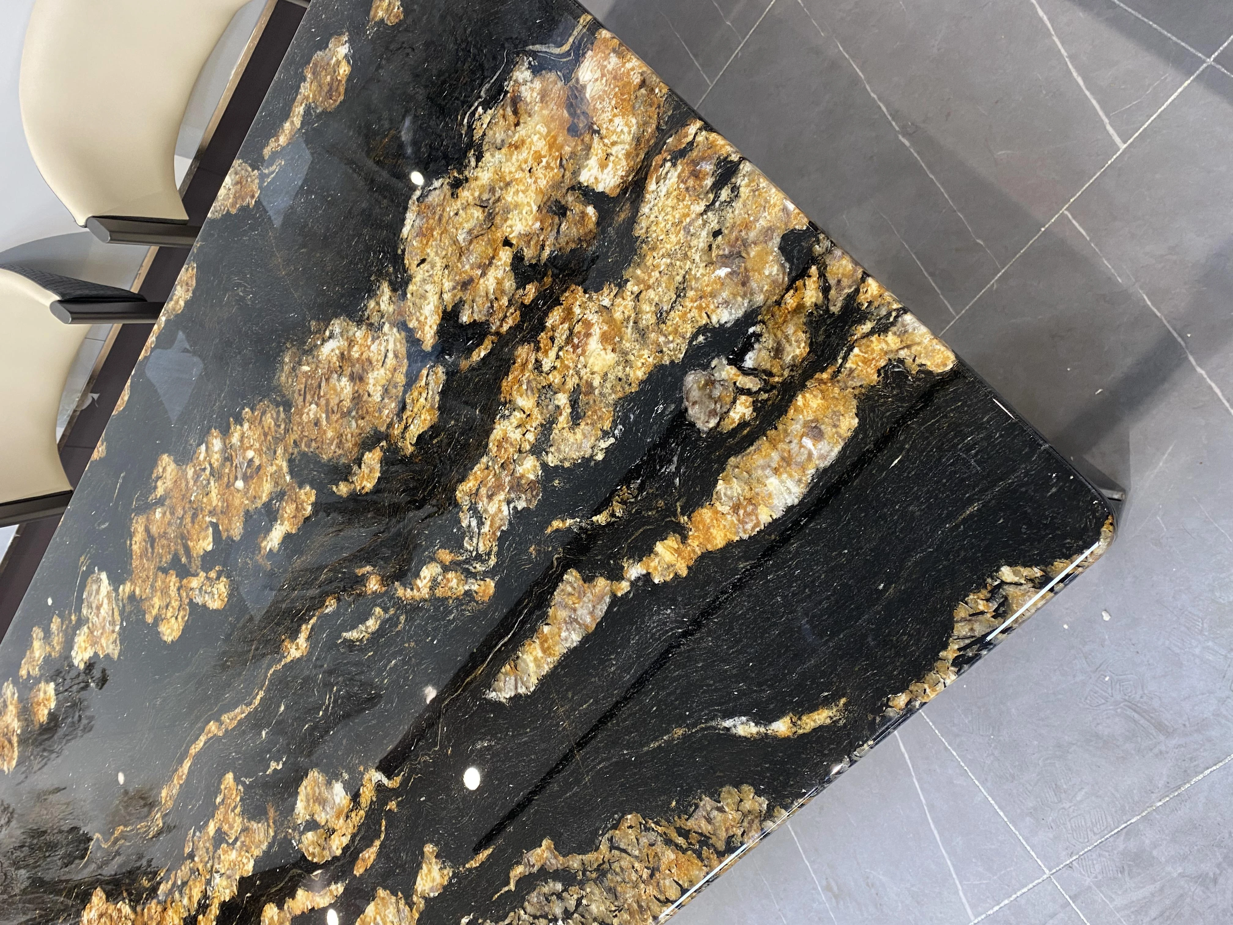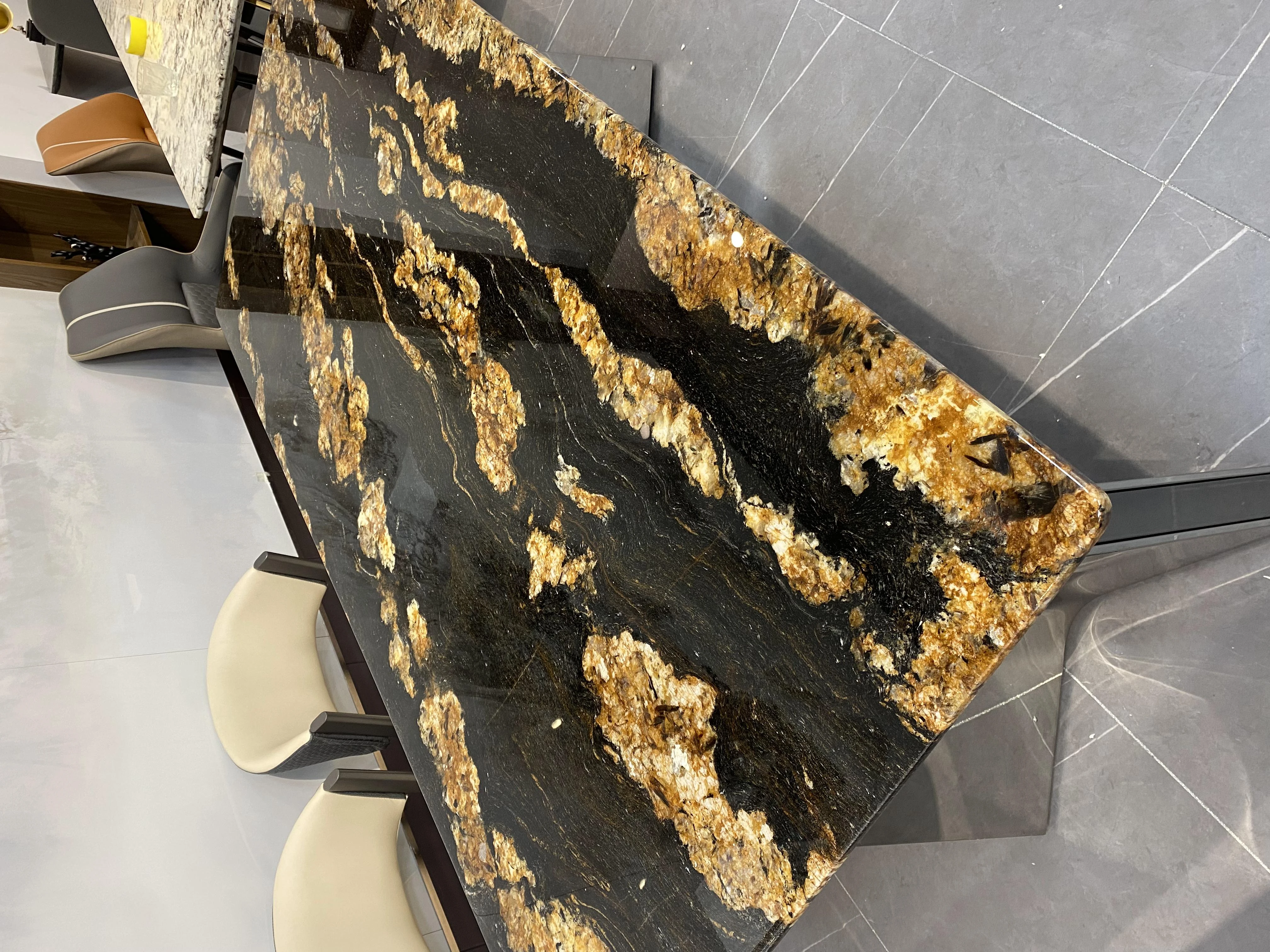 2.2*1.1メートルゴールドシルク豪華石製ダイニングテーブル