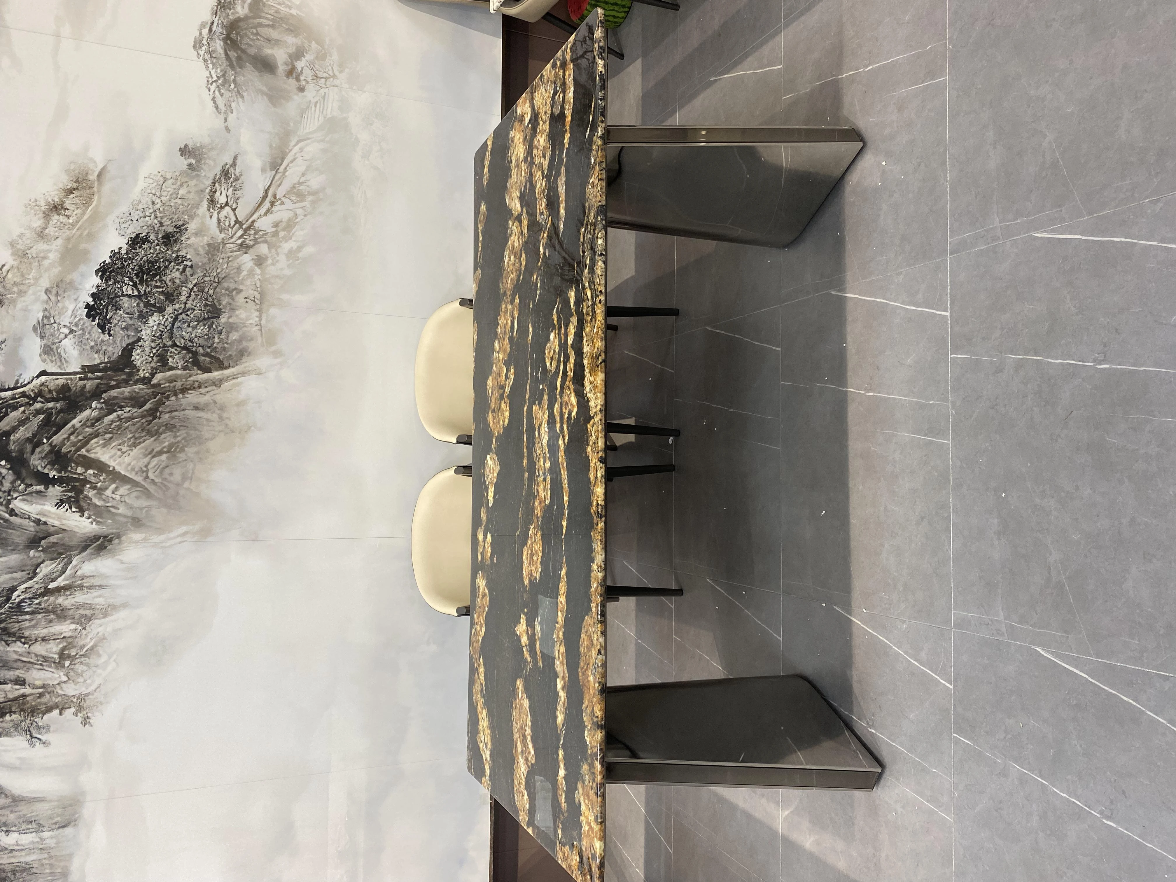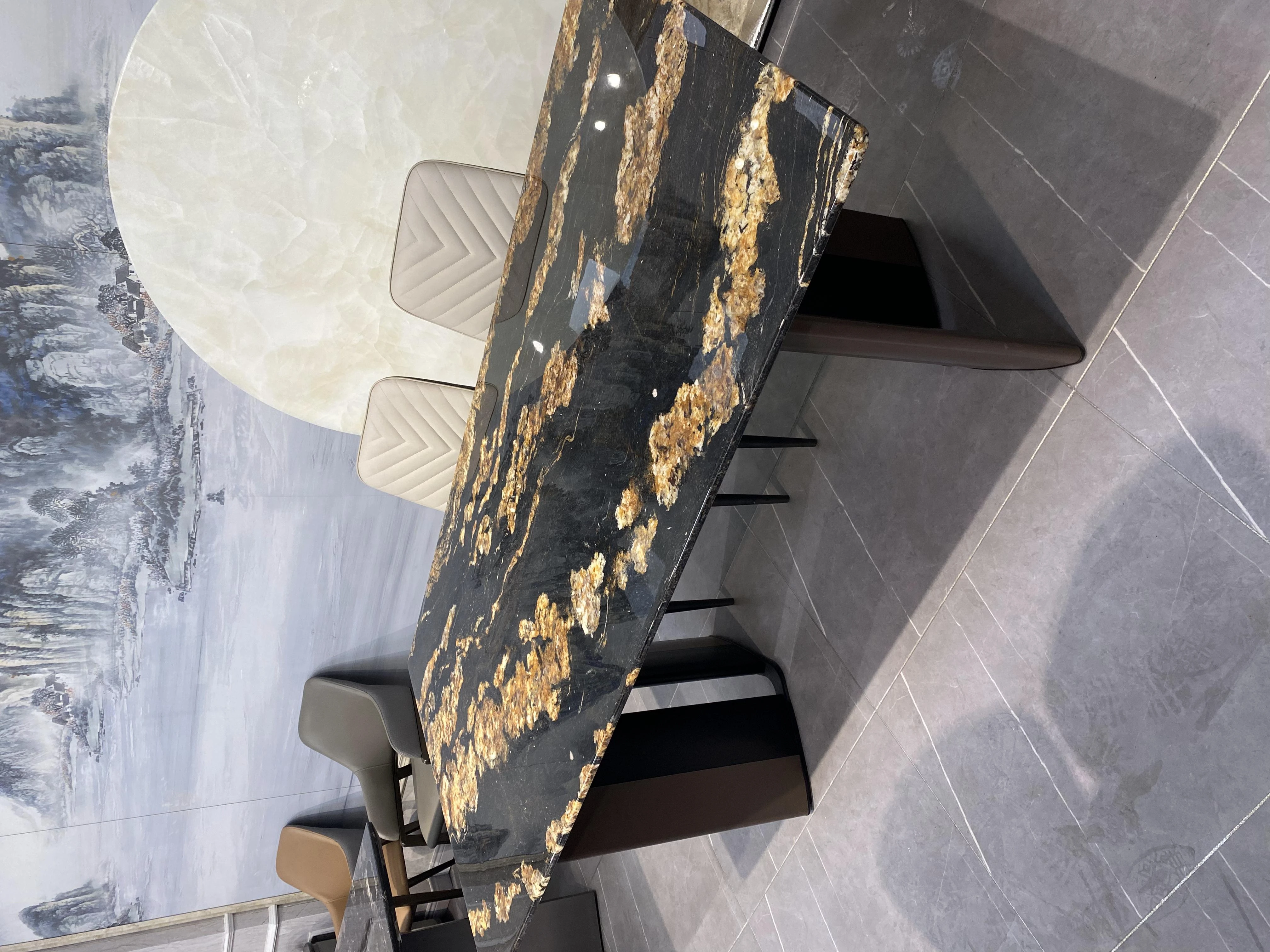 2.4*1.1メートルゴールドシルク豪華石製ダイニングテーブル