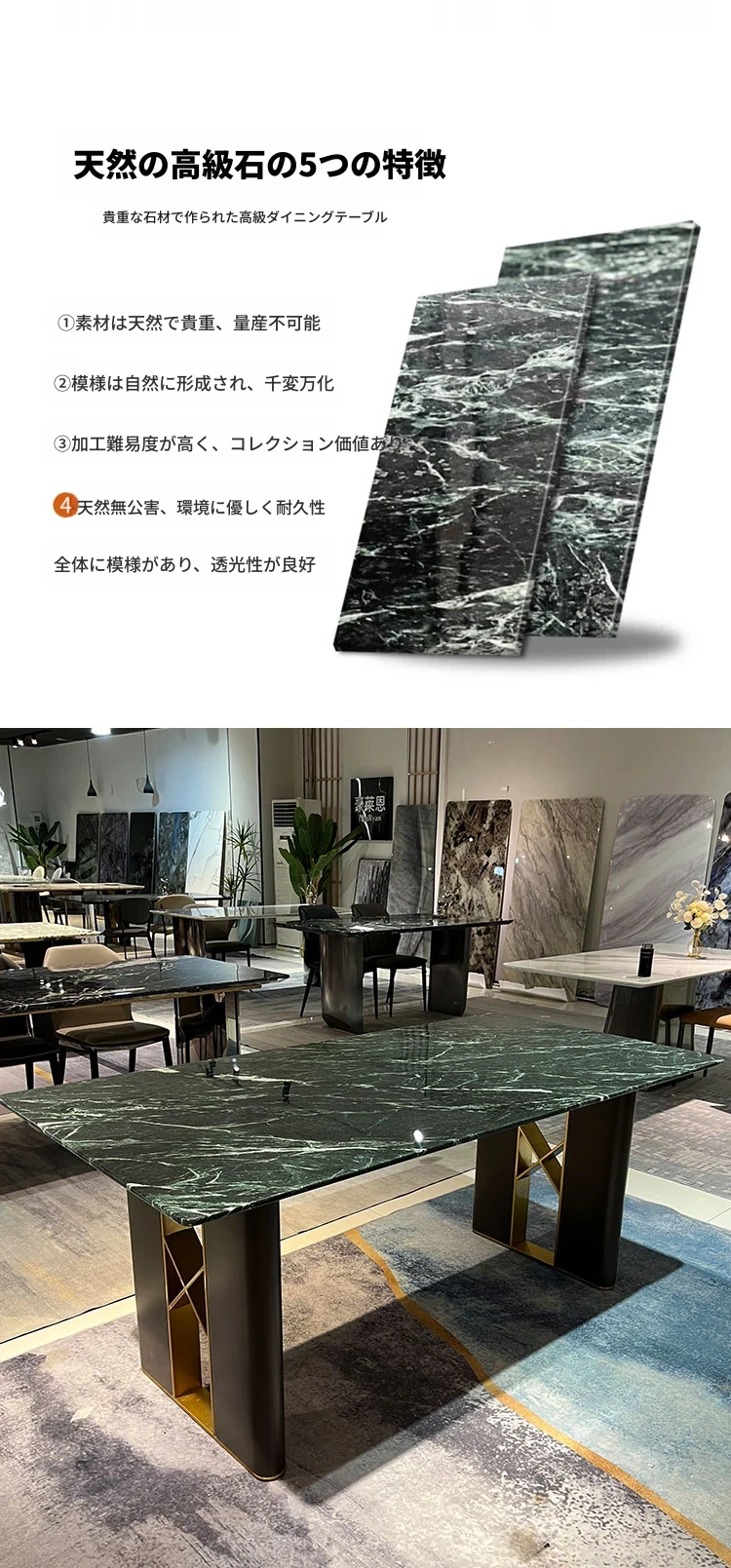 2.4*1.1メートル大花緑奢石テーブル