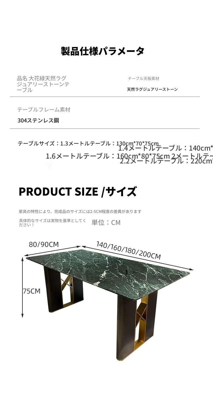 1.4*0.8メートル大花緑奢石テーブル