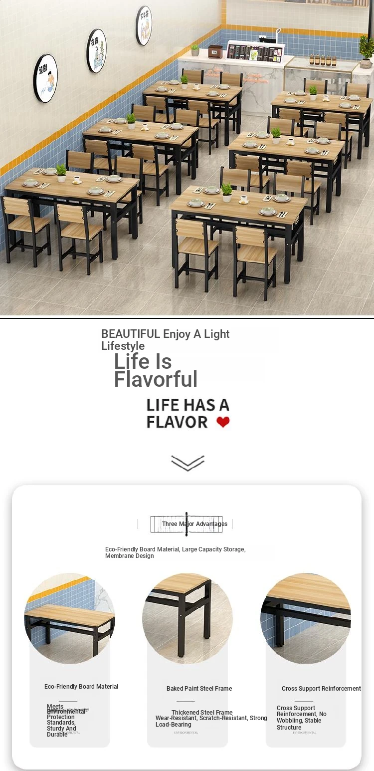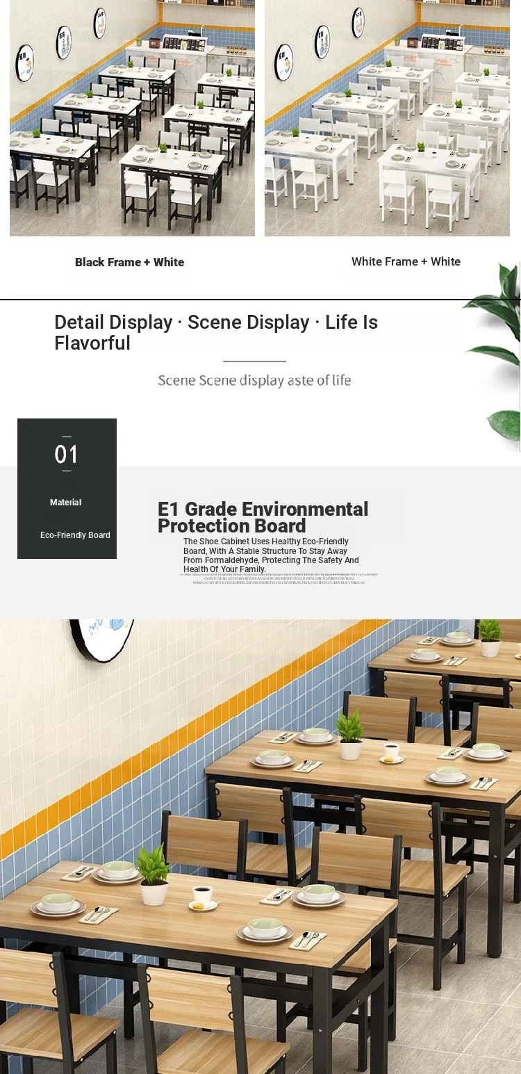 Rectangular Dining Table and Chair Set for Snack Bars, Noodle Shops, Cafes, and Home Use – Perfect for Breakfast, Quick Meals, and Commercial Dining Spaces