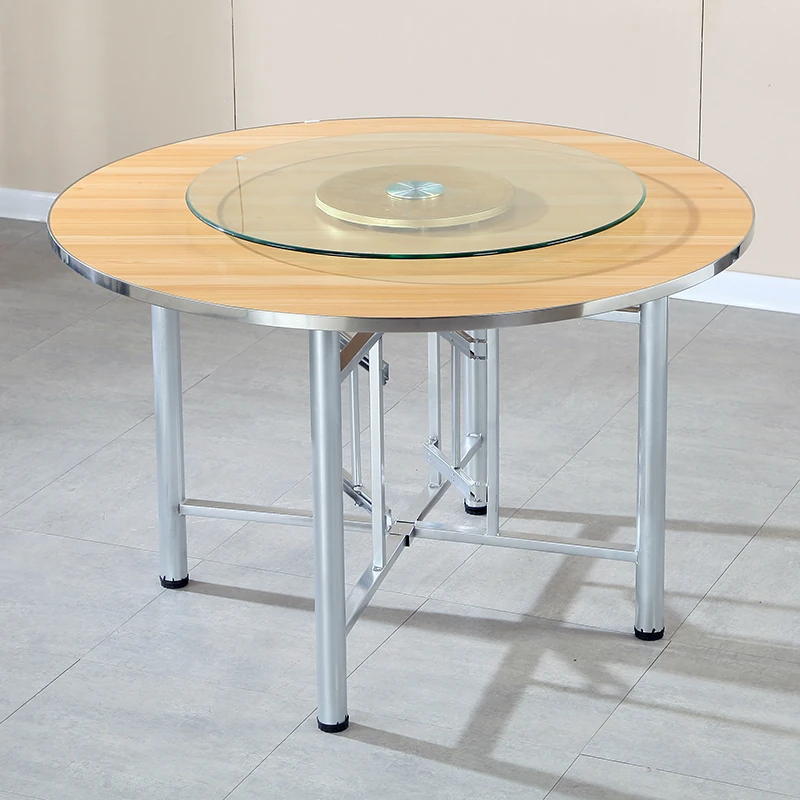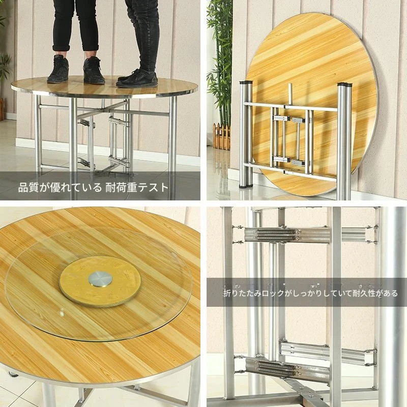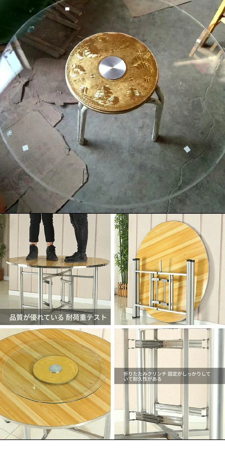 大きな円形テーブル面、ガラス回転トレイ付きの折りたたみテーブルフレーム。家庭、ホテル、食堂に最適な食事テーブルで、田舎風のデザインが魅力的!便利でスタイリッシュな食卓をお楽しみください。