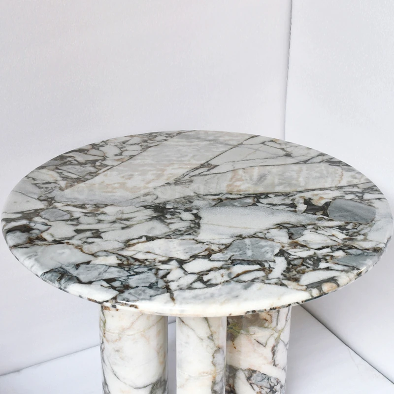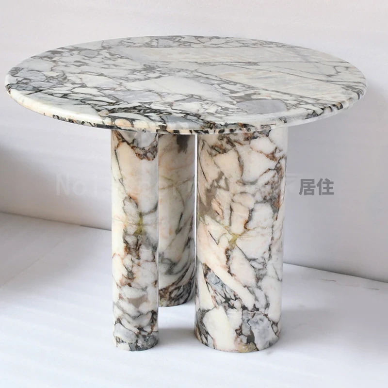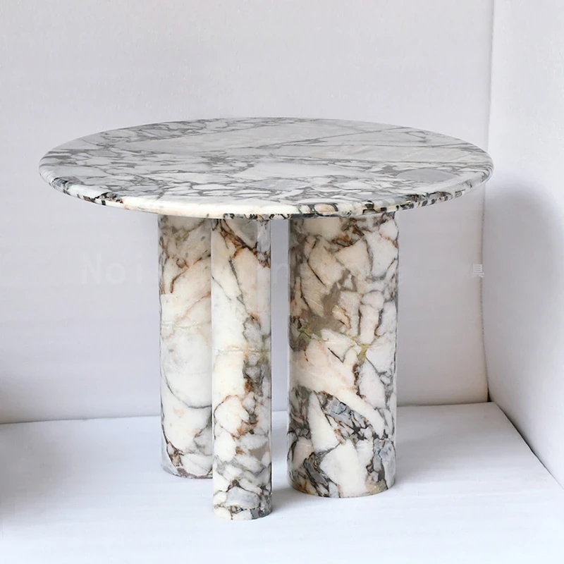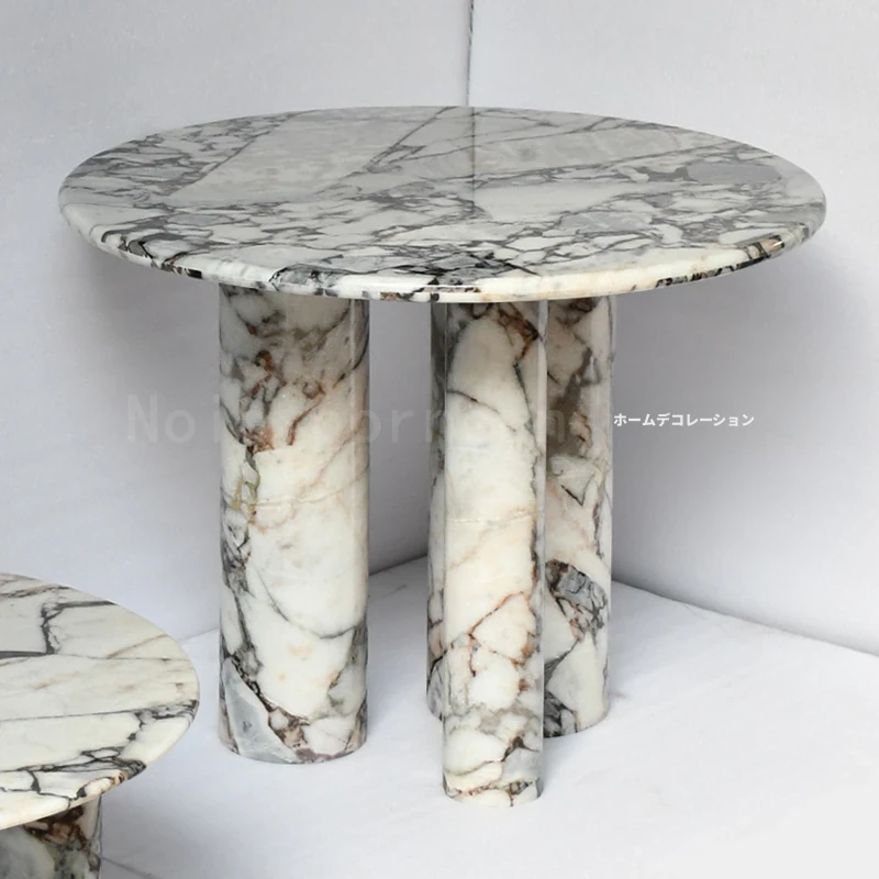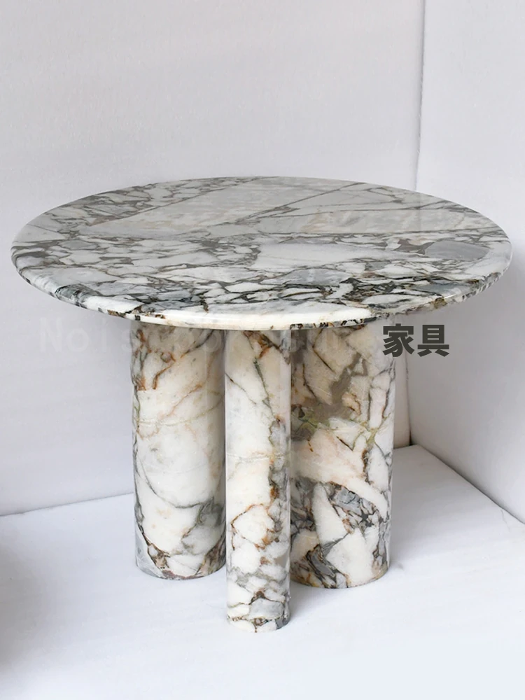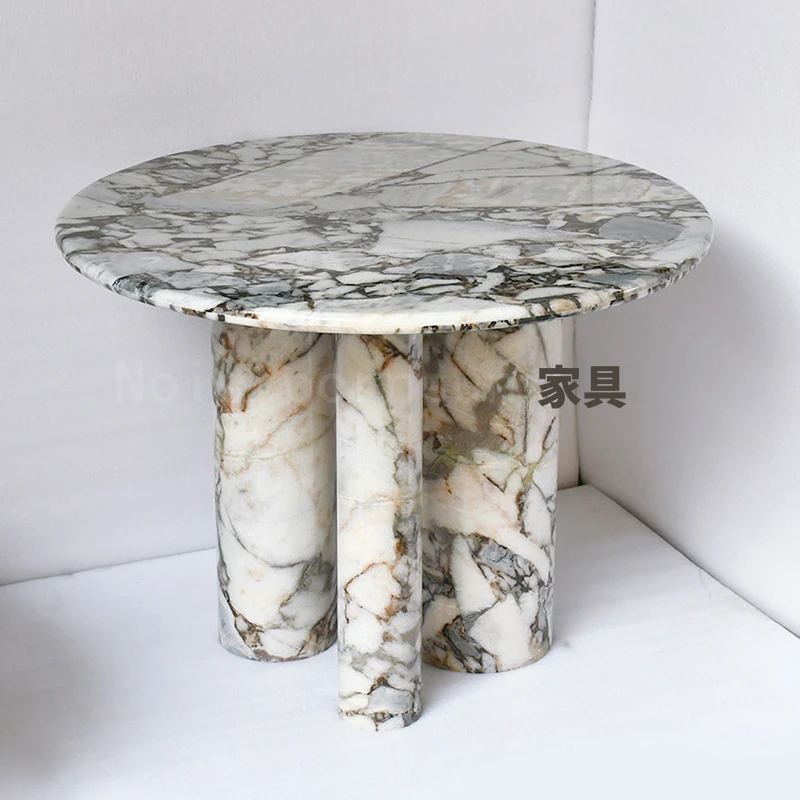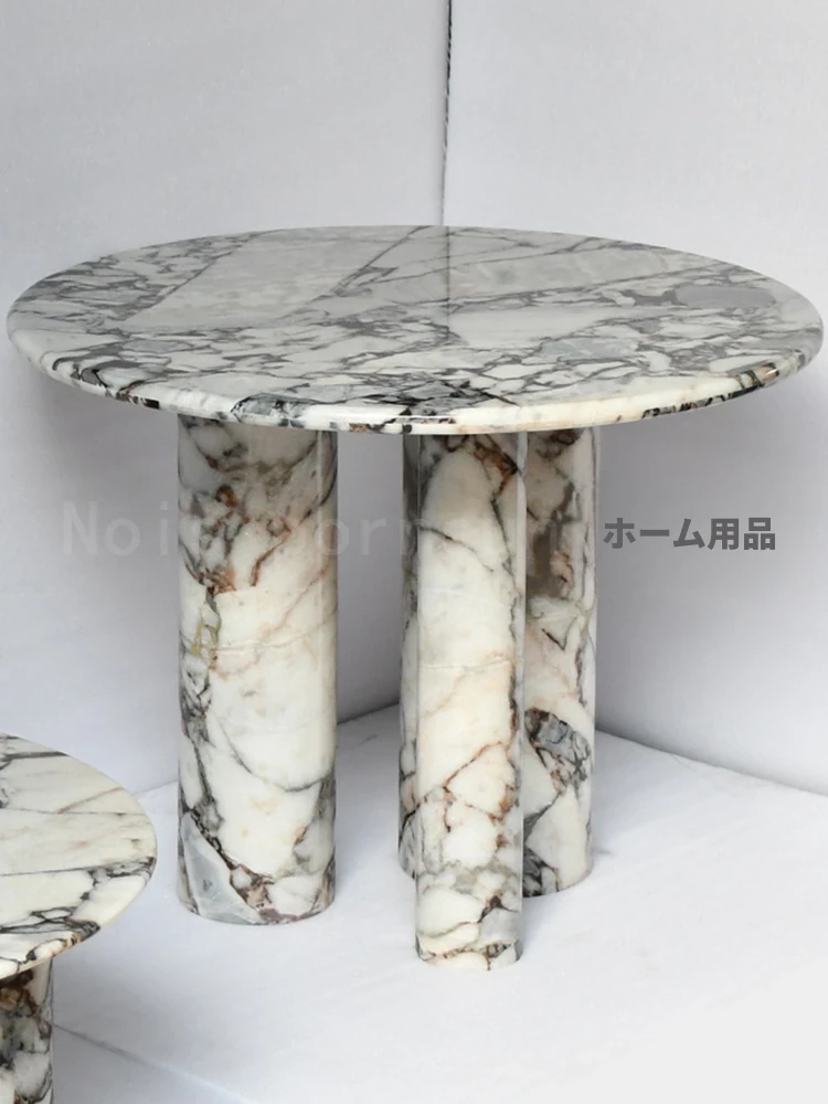 北欧スタイルのラグジュアリー大理石ダイニングテーブル - ヴィラや豪邸にぴったりのラウンドデザイン、海の嵐をイメージしたエレガントな一品!