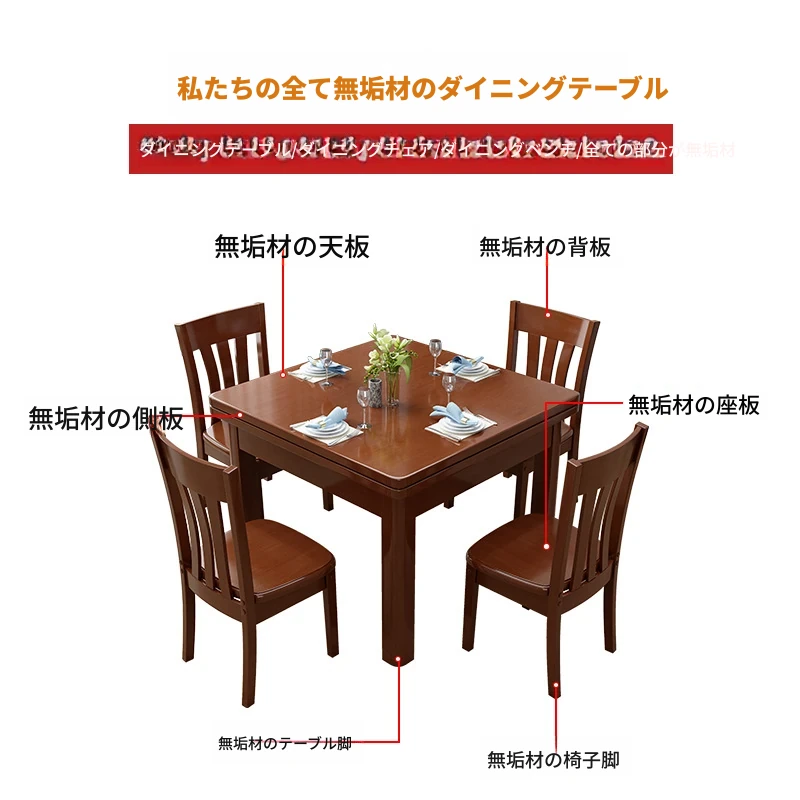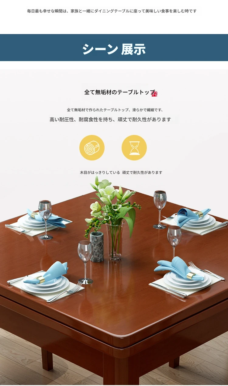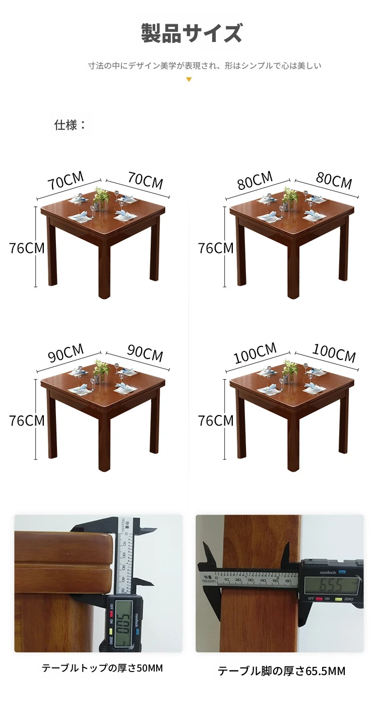 シンプルでスタイリッシュな正方形全実木ゴムの木ダイニングテーブル - 大小様々な部屋にぴったり!八仙テーブルで、リビングやレストランの中華スタイルに最適な一品です。