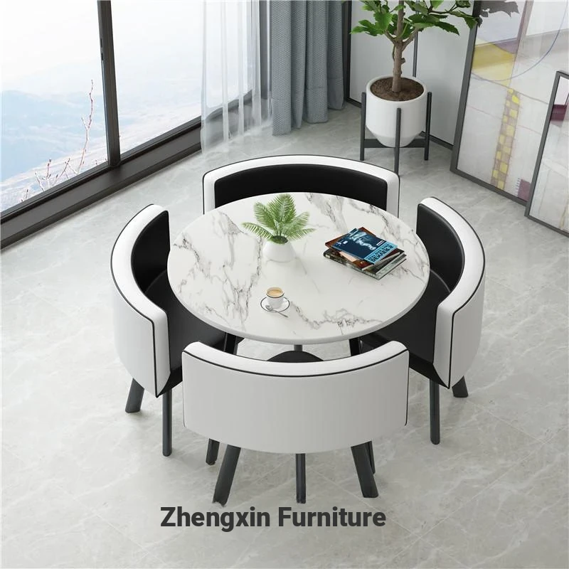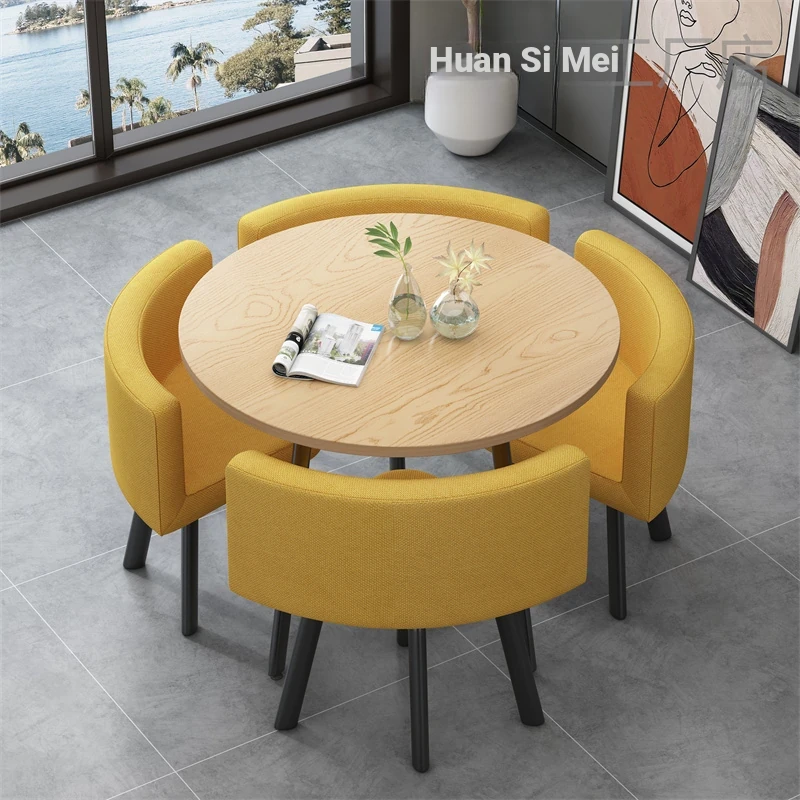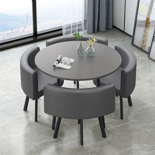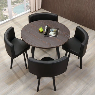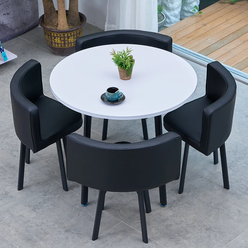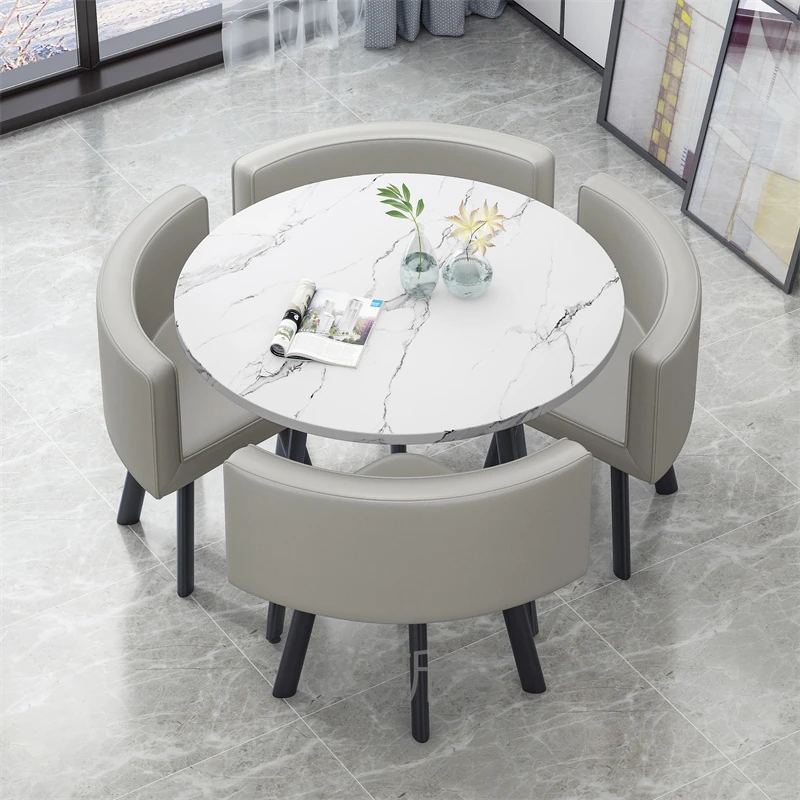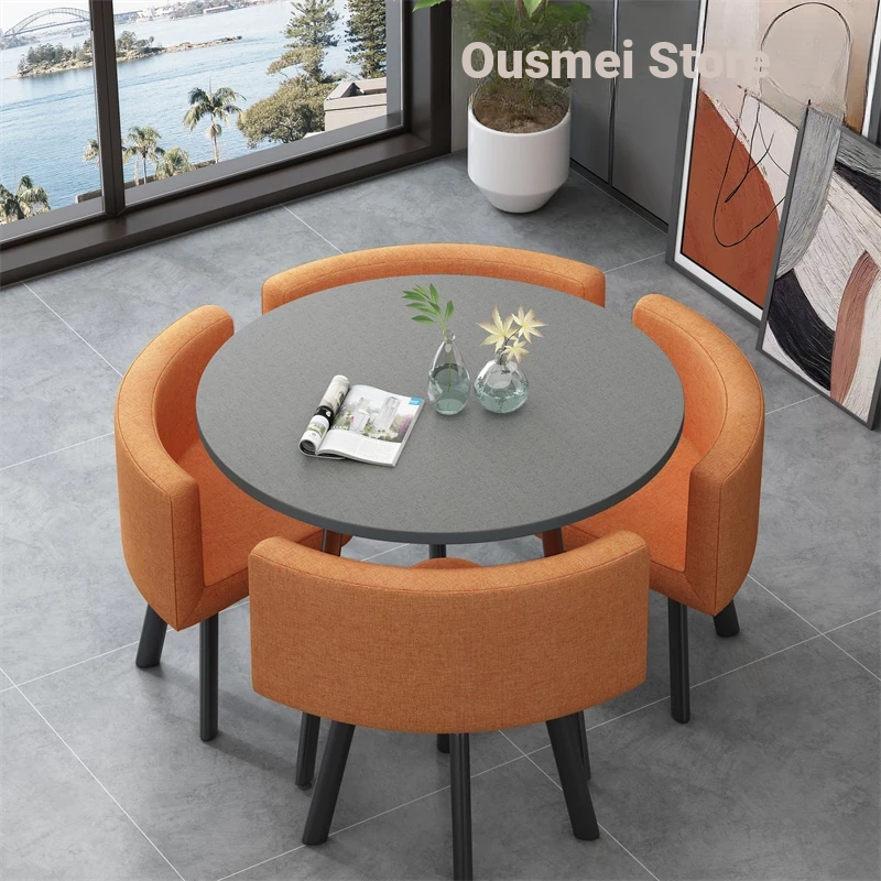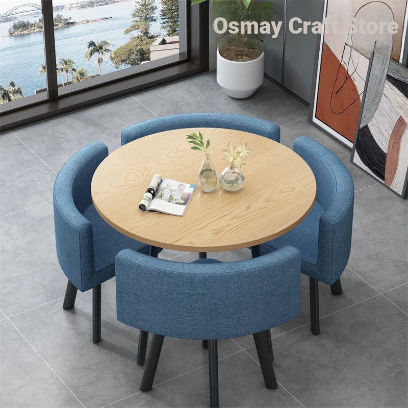 Stylish Minimalist Business Meeting Table and Chair Set - 1 Round Table with 4 Chairs for Office, Casual Meetings, and Unique Milk Tea Shops