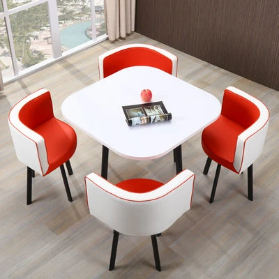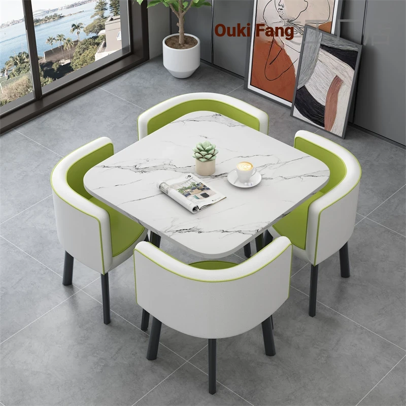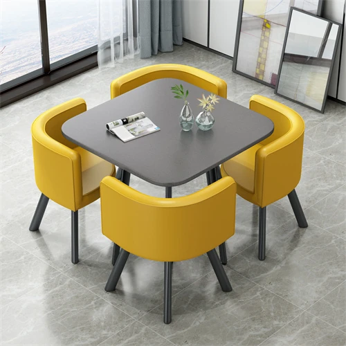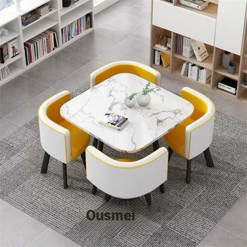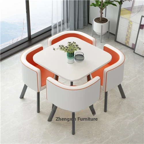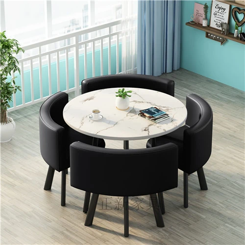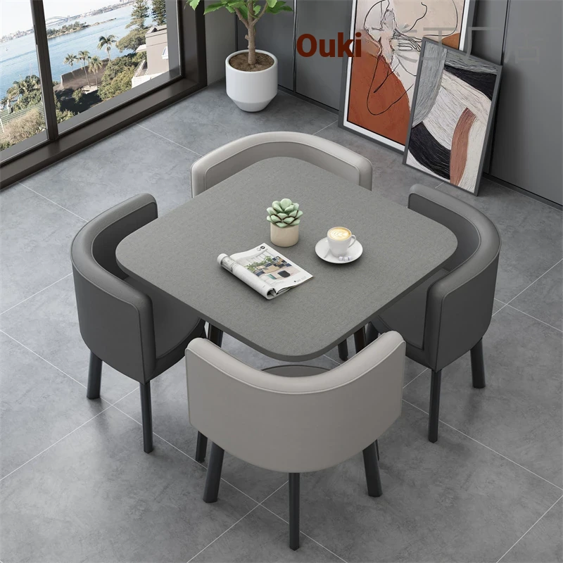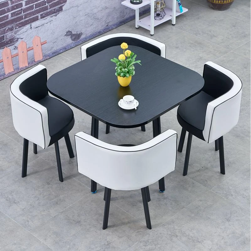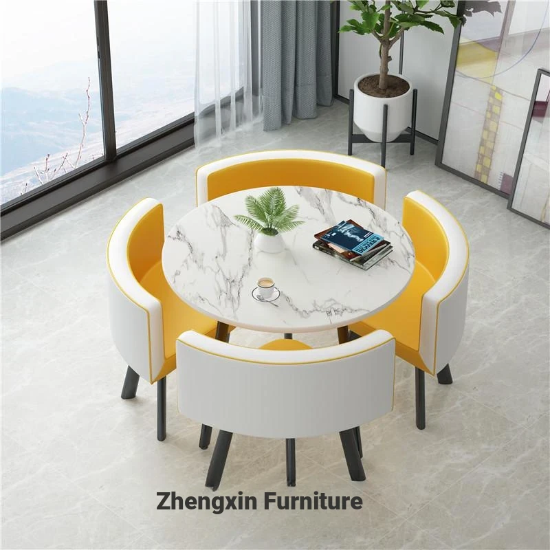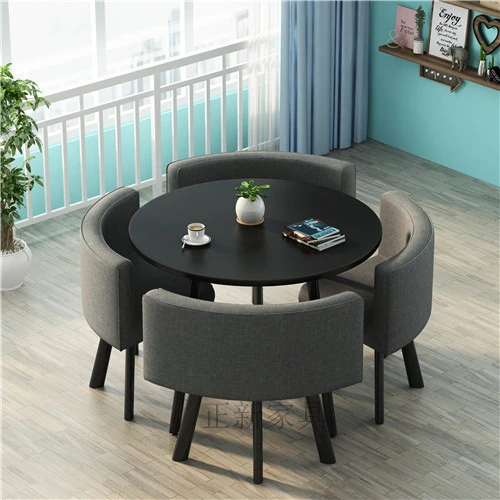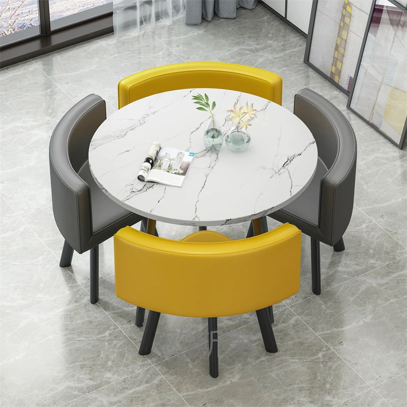 Stylish Minimalist Business Meeting Table and Chair Set - 1 Round Table with 4 Chairs for Office, Casual Meetings, and Unique Milk Tea Shops