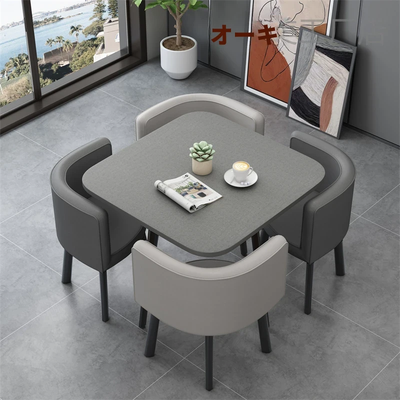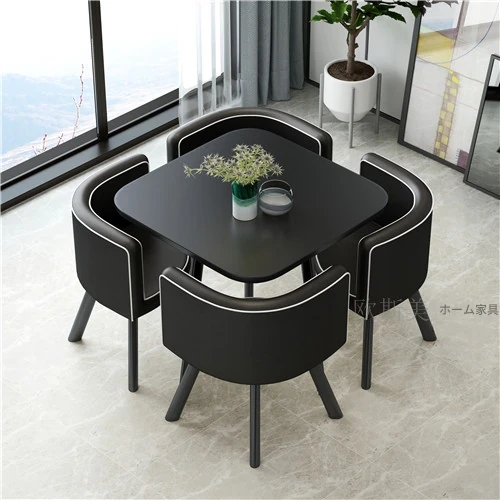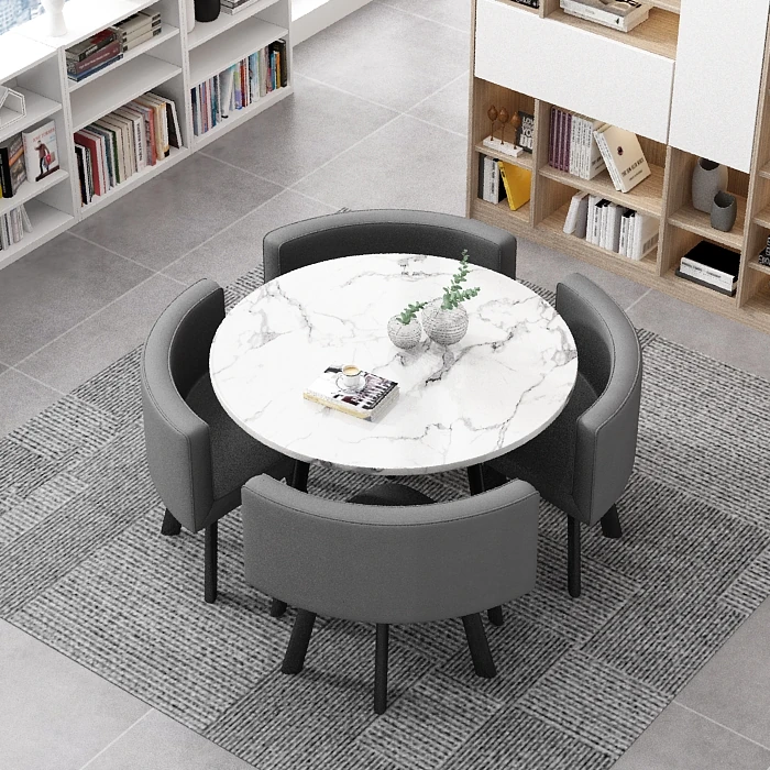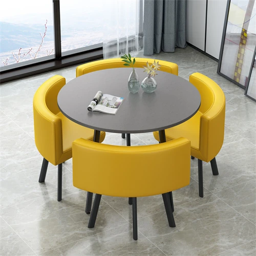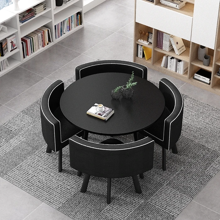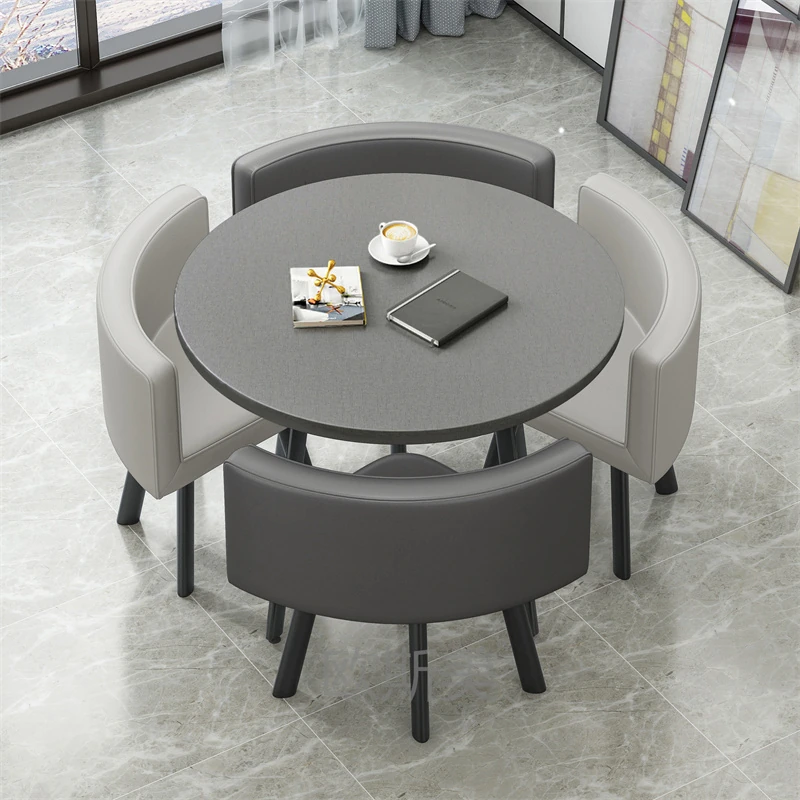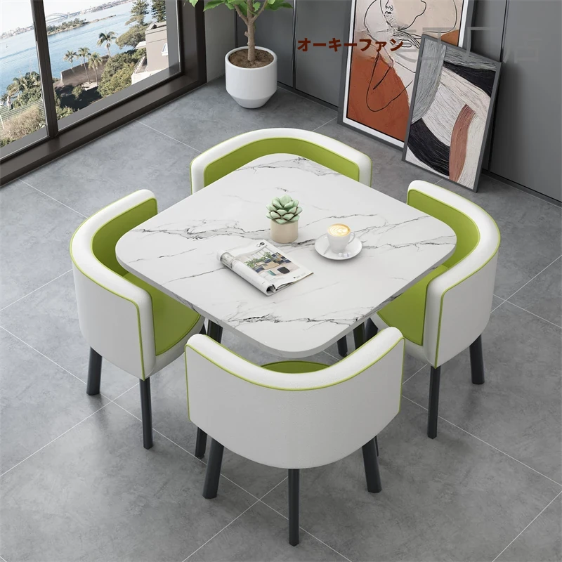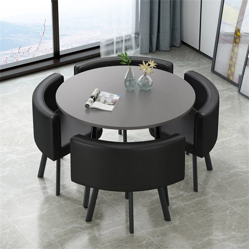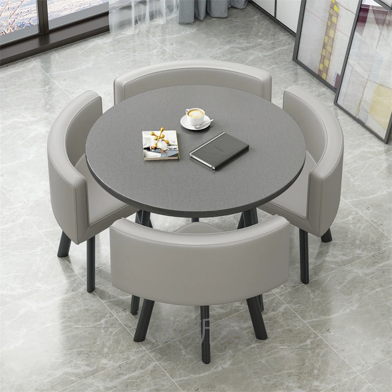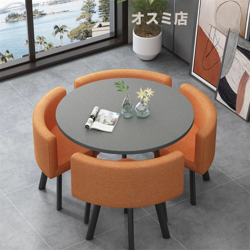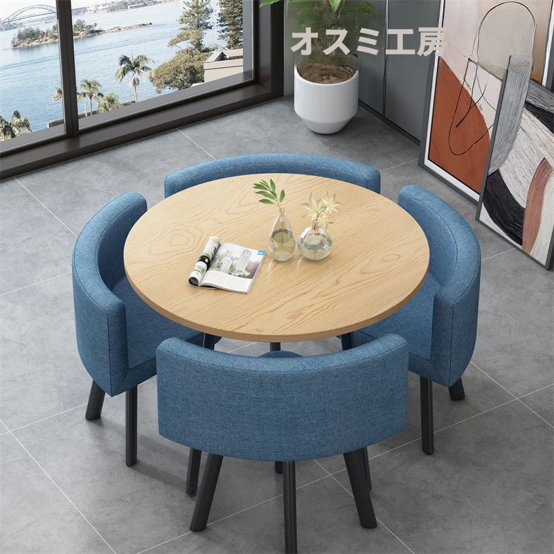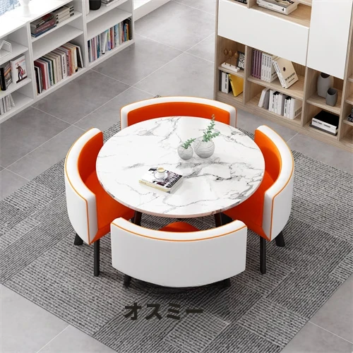 シンプルでスタイリッシュなビジネスミーティング用テーブル&チェア4脚セット!オフィスやカフェにぴったりな円形テーブル、リラックスした会話を楽しむための理想的な空間を演出します。個性的なデザインで、訪れるお客様を魅了します!