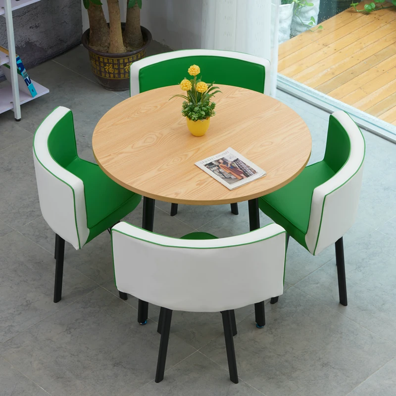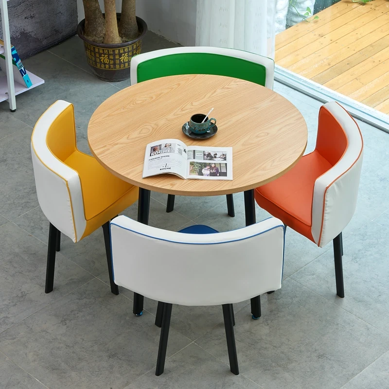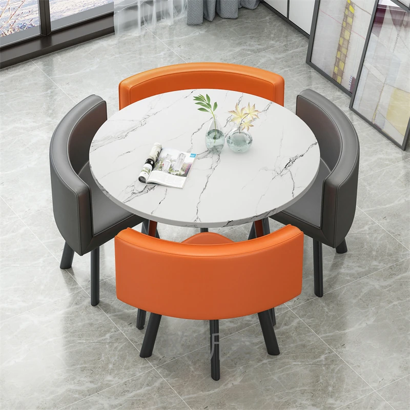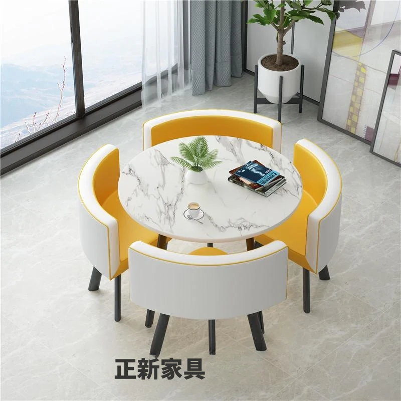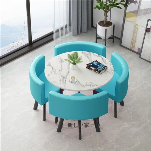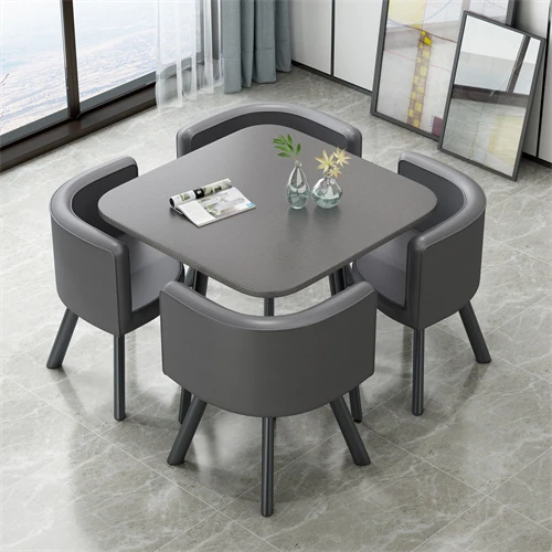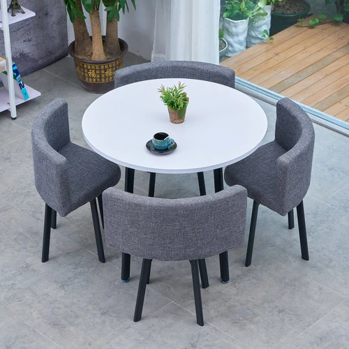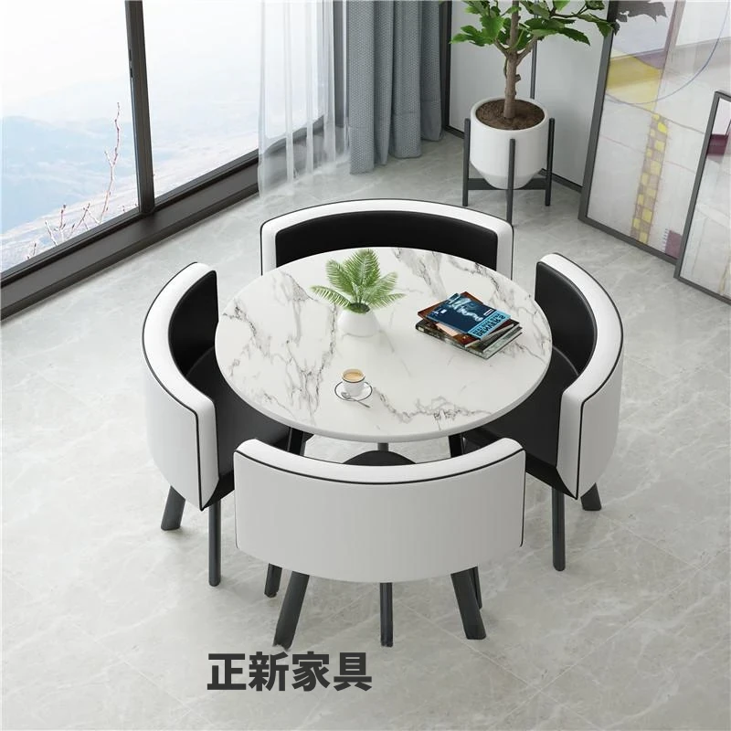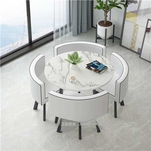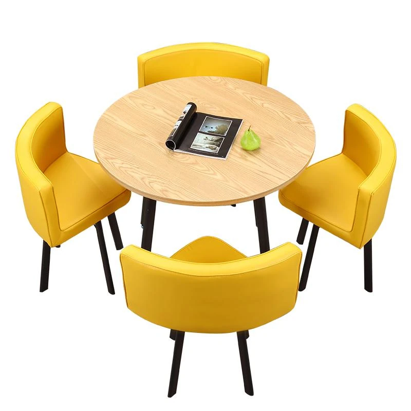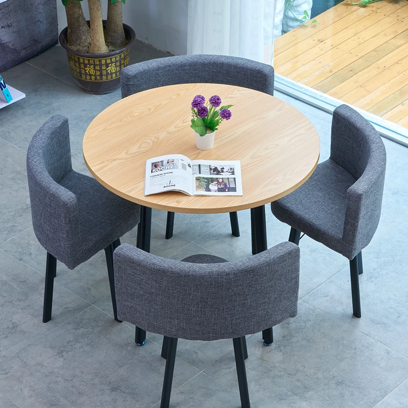 シンプルでスタイリッシュなビジネスミーティング用テーブル&チェア4脚セット!オフィスやカフェにぴったりな円形テーブル、リラックスした会話を楽しむための理想的な空間を演出します。個性的なデザインで、訪れるお客様を魅了します!