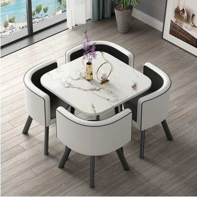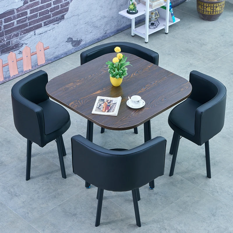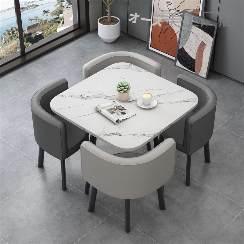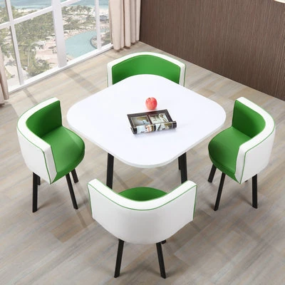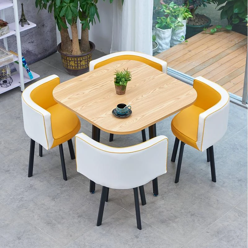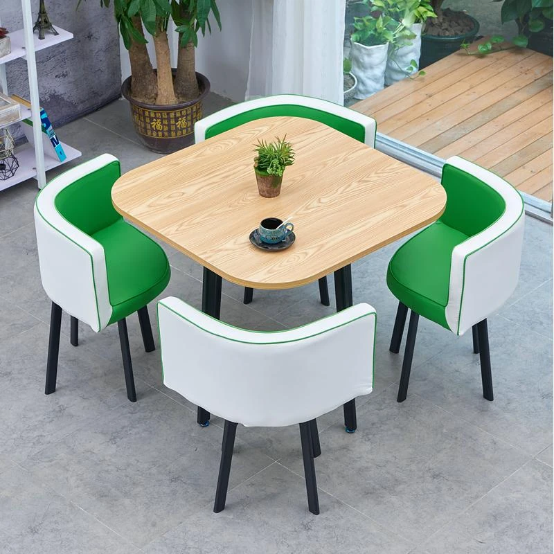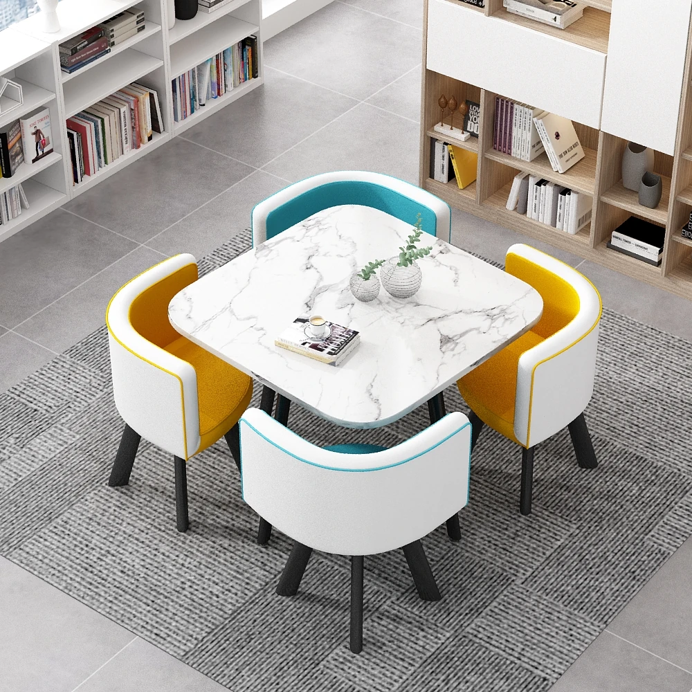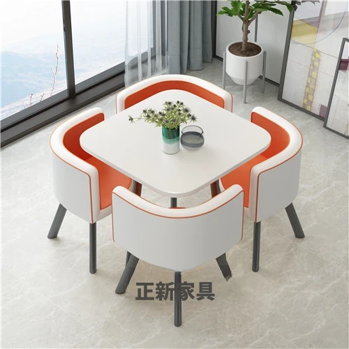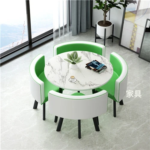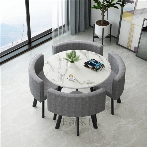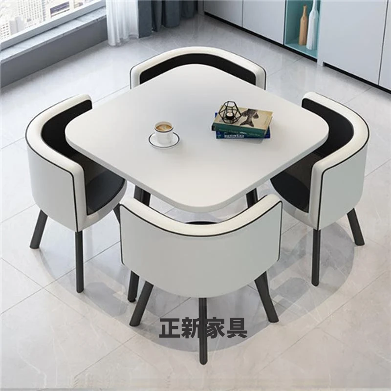 シンプルでスタイリッシュなビジネスミーティング用テーブル&チェア4脚セット!オフィスやカフェにぴったりな円形テーブル、リラックスした会話を楽しむための理想的な空間を演出します。個性的なデザインで、訪れるお客様を魅了します!
