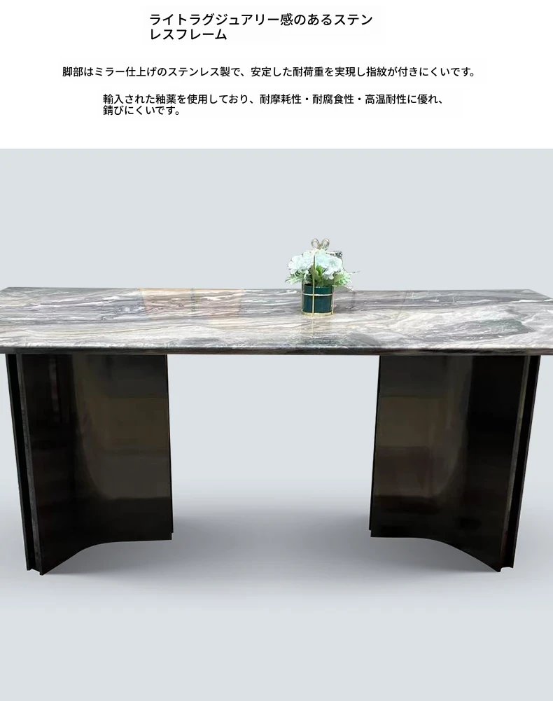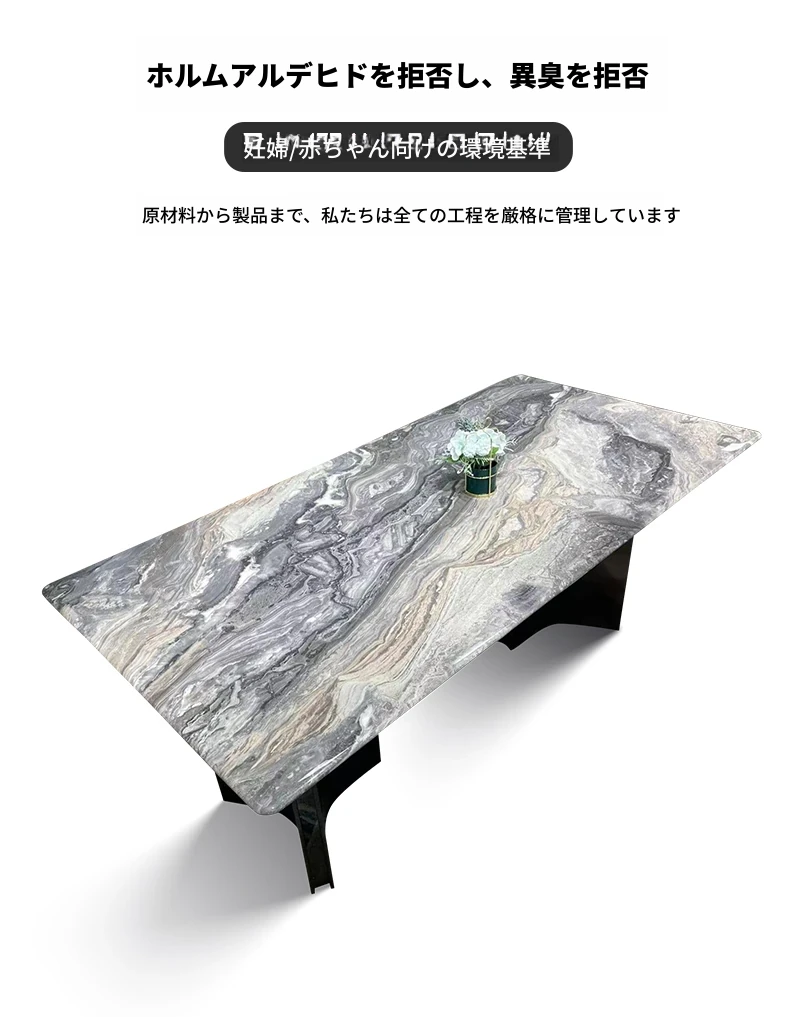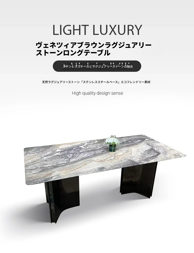 ヴェネツィアブラウン豪華石製ダイニングテーブル - 天然大理石使用、洗練されたイタリアンミニマリズムのデザインで、別荘や高級住宅に最適な長方形の食卓。上質な食事空間を演出します!