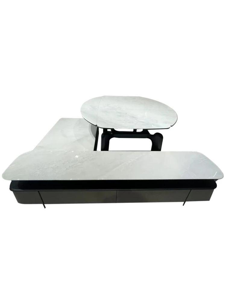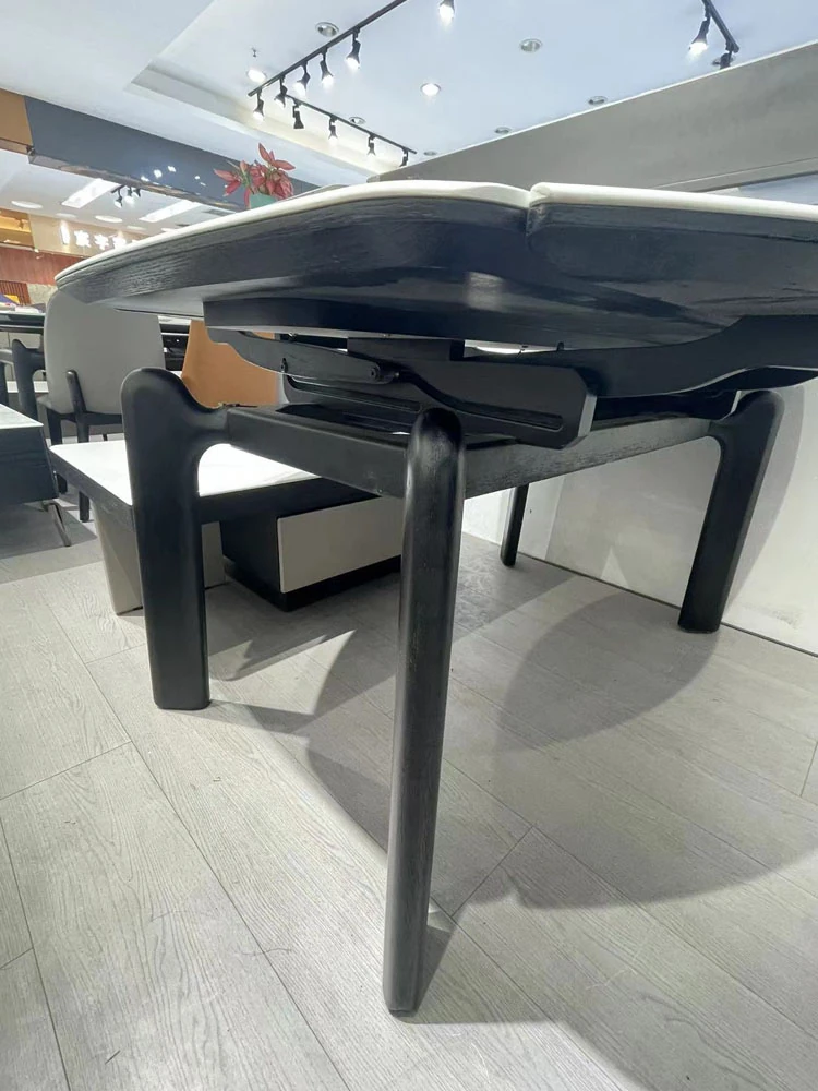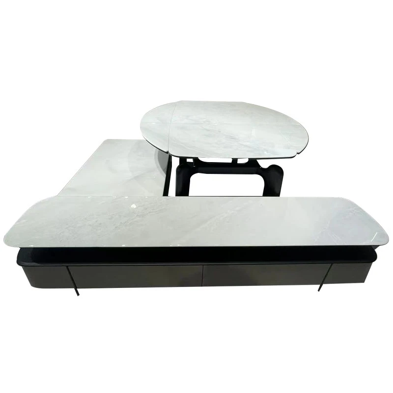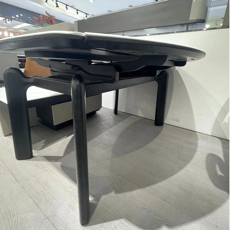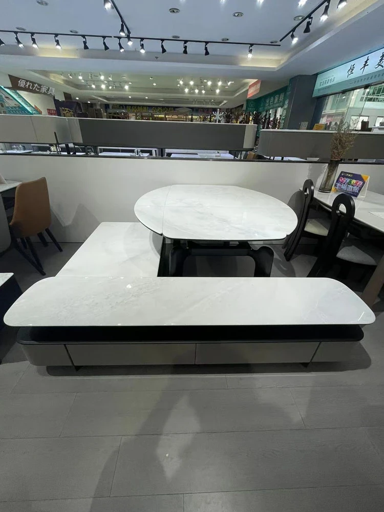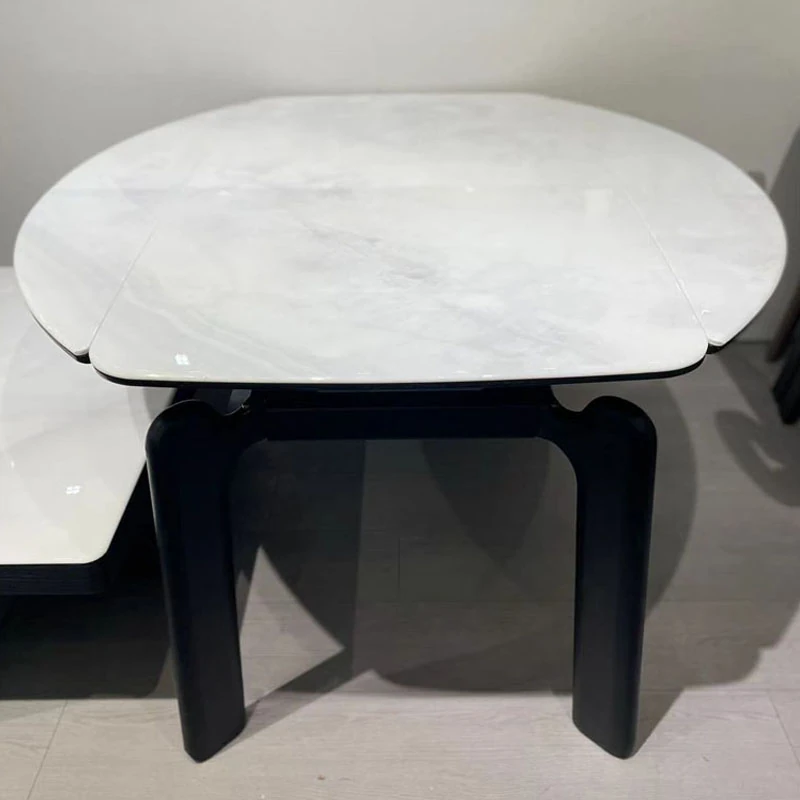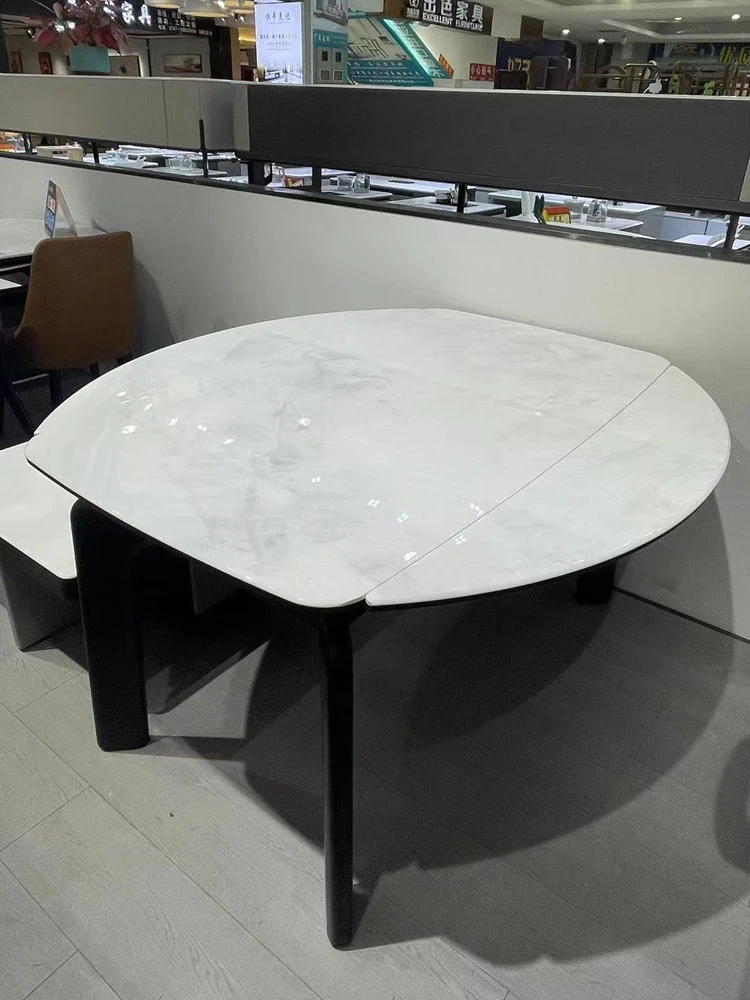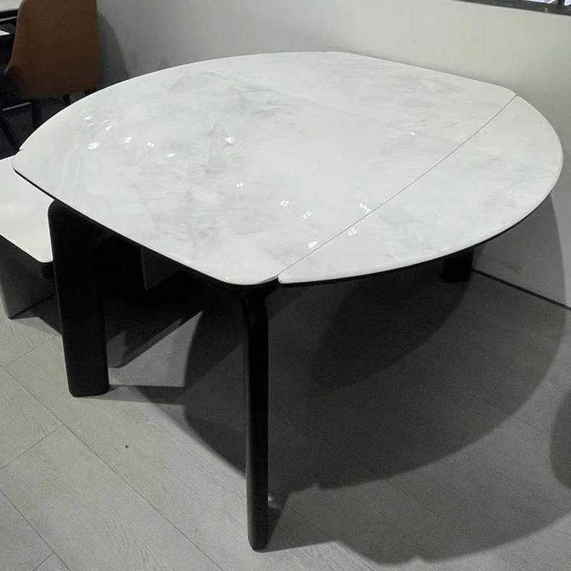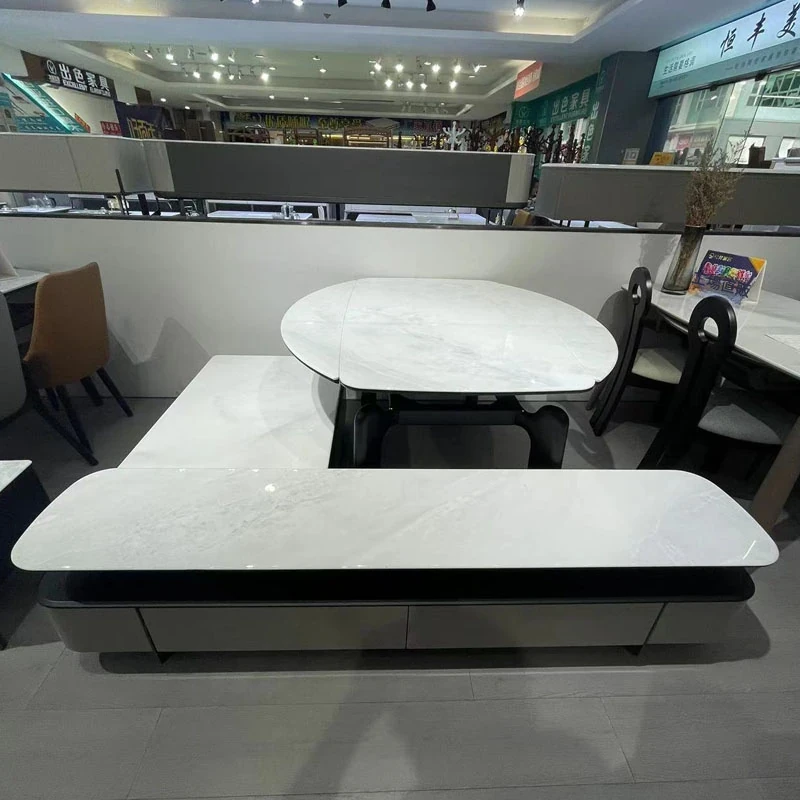 多機能ミクロクリスタル大理石ダイニングテーブル&チェアセット - 家庭用、実木製、円形と角形両用、コンパクトなリビングに最適!小さなお部屋でもおしゃれに使える、スタイリッシュなデザイン。