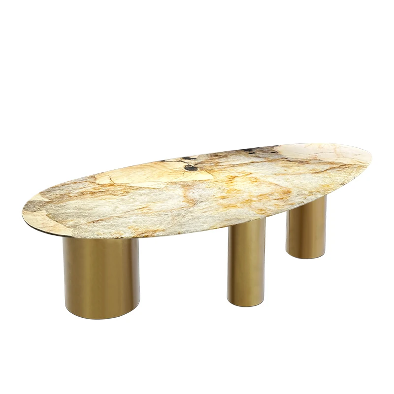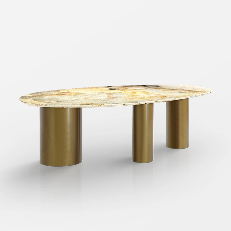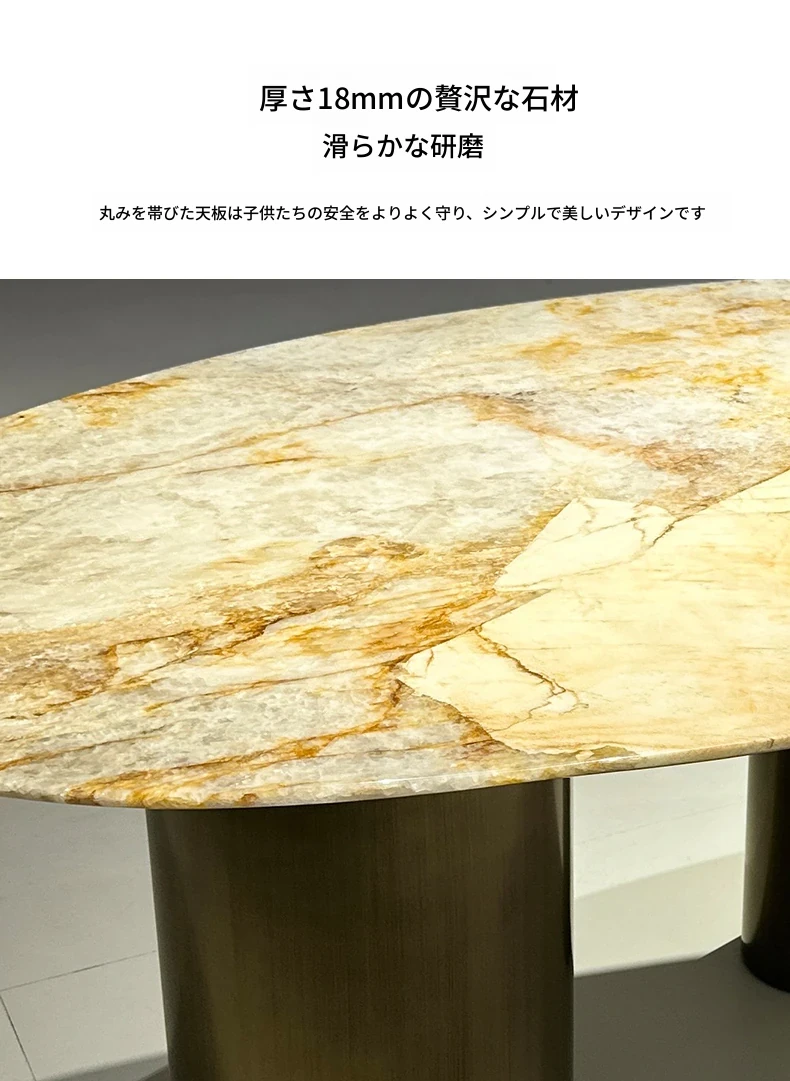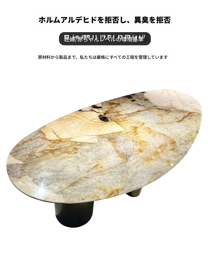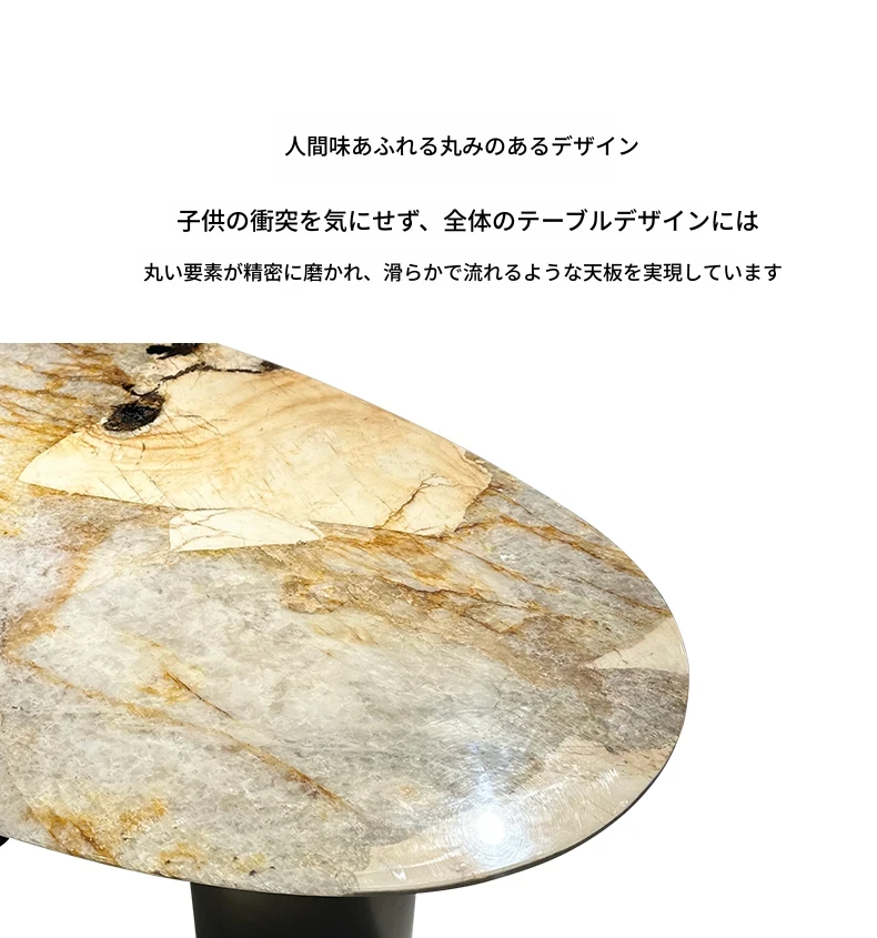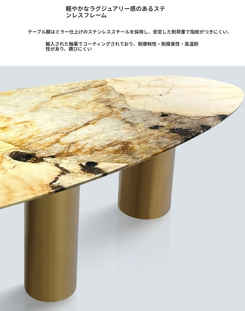 水滴型パンドラ高級大理石ダイニングテーブル - 自然の美しさを感じるエレガントな楕円形、贅沢な別荘や豪邸にぴったりの洗練されたインテリア家具。