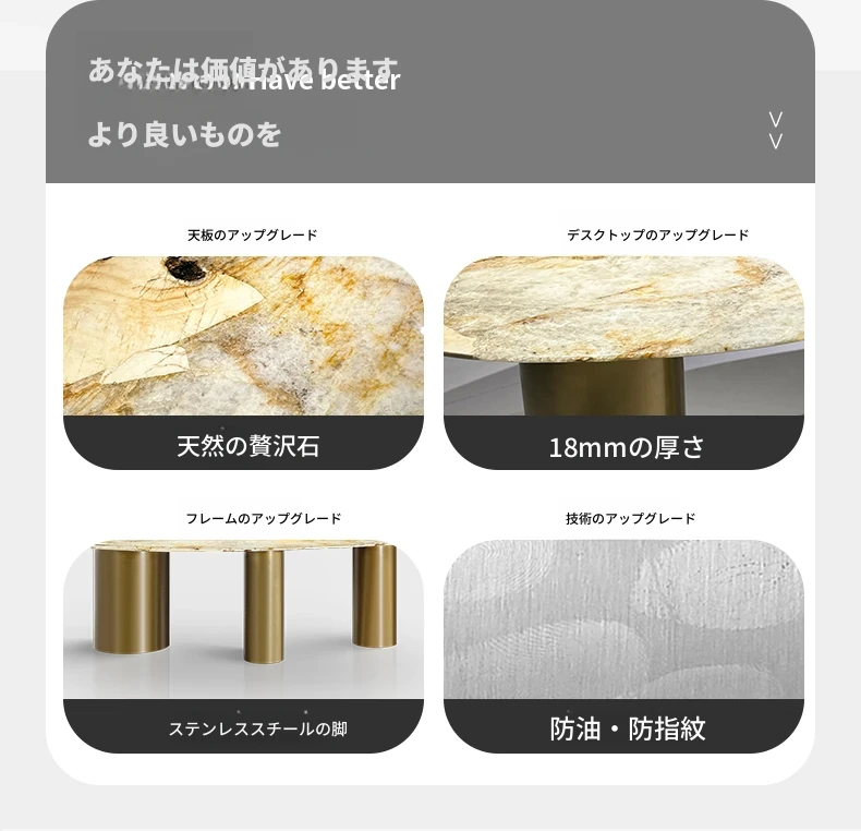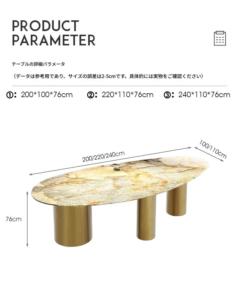 2.2*1.1*0.76メートルパンドララグジュアリー石製ダイニングテーブル