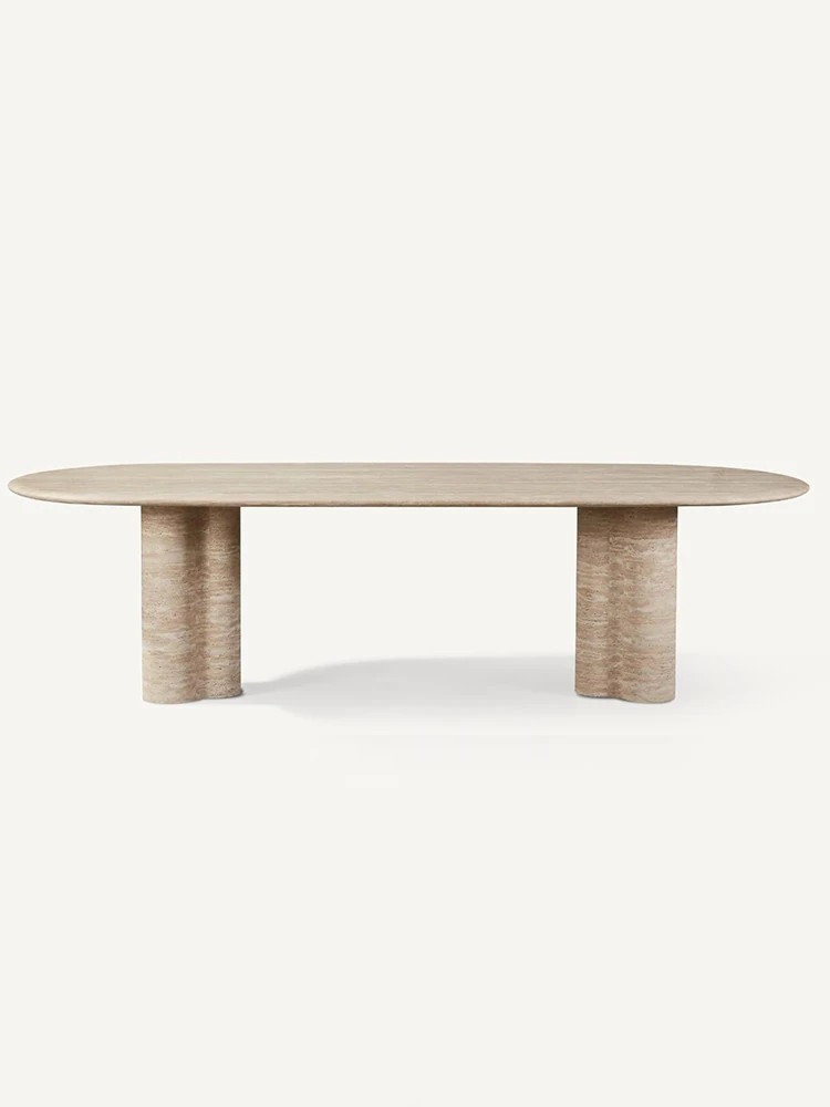 Vintage Elegant Natural Stone Dining Table - French Minimalist Luxury Oval Marble Table for Villas