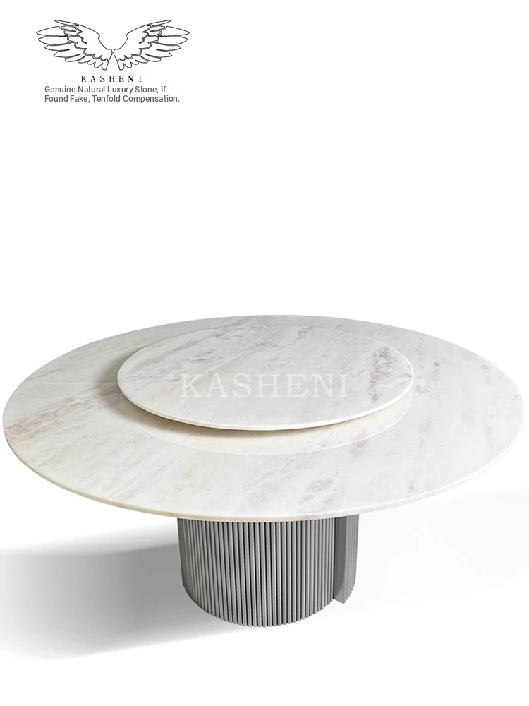 Imported Fendi White Luxury Stone Dining Table - Natural Marble Design, 2025 New Model, Elegant Dining Solution for Home in Foshan, Guangdong