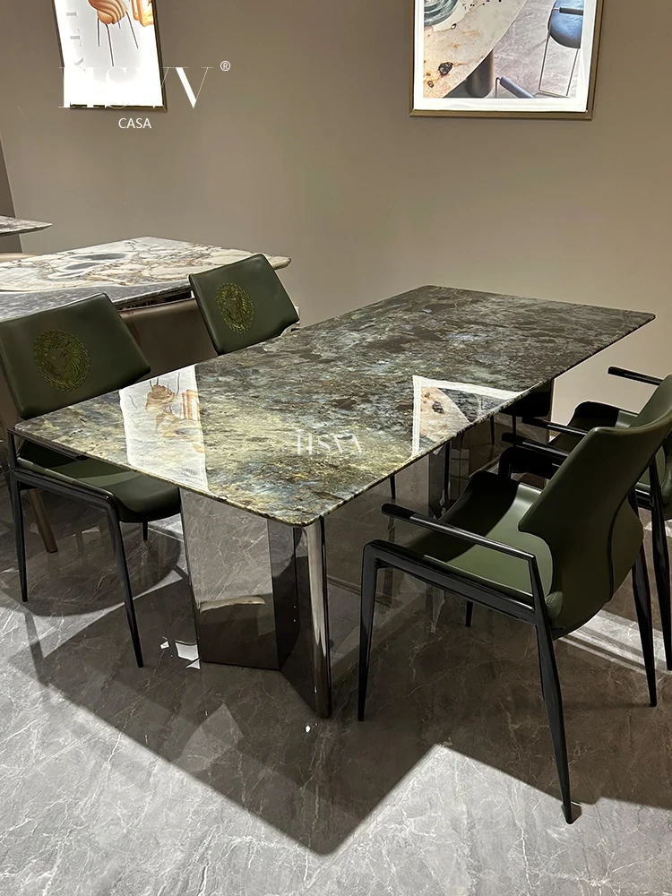Prada Green Natural Luxury Stone Rectangular Dining Table Set - Designer Home Furniture for Spacious Apartments and Villas