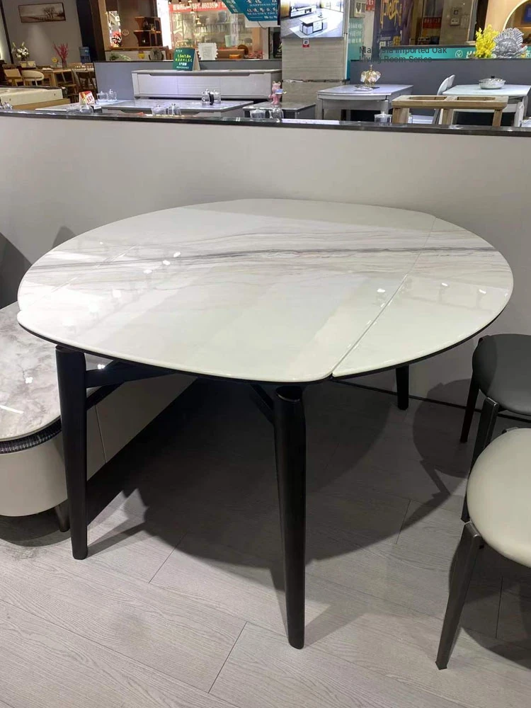 Modern Marble Dining Table with Extendable Design - Versatile Round/Square Shape for Small Spaces - Solid Wood Construction - Perfect for Dining Rooms and Compact Apartments
