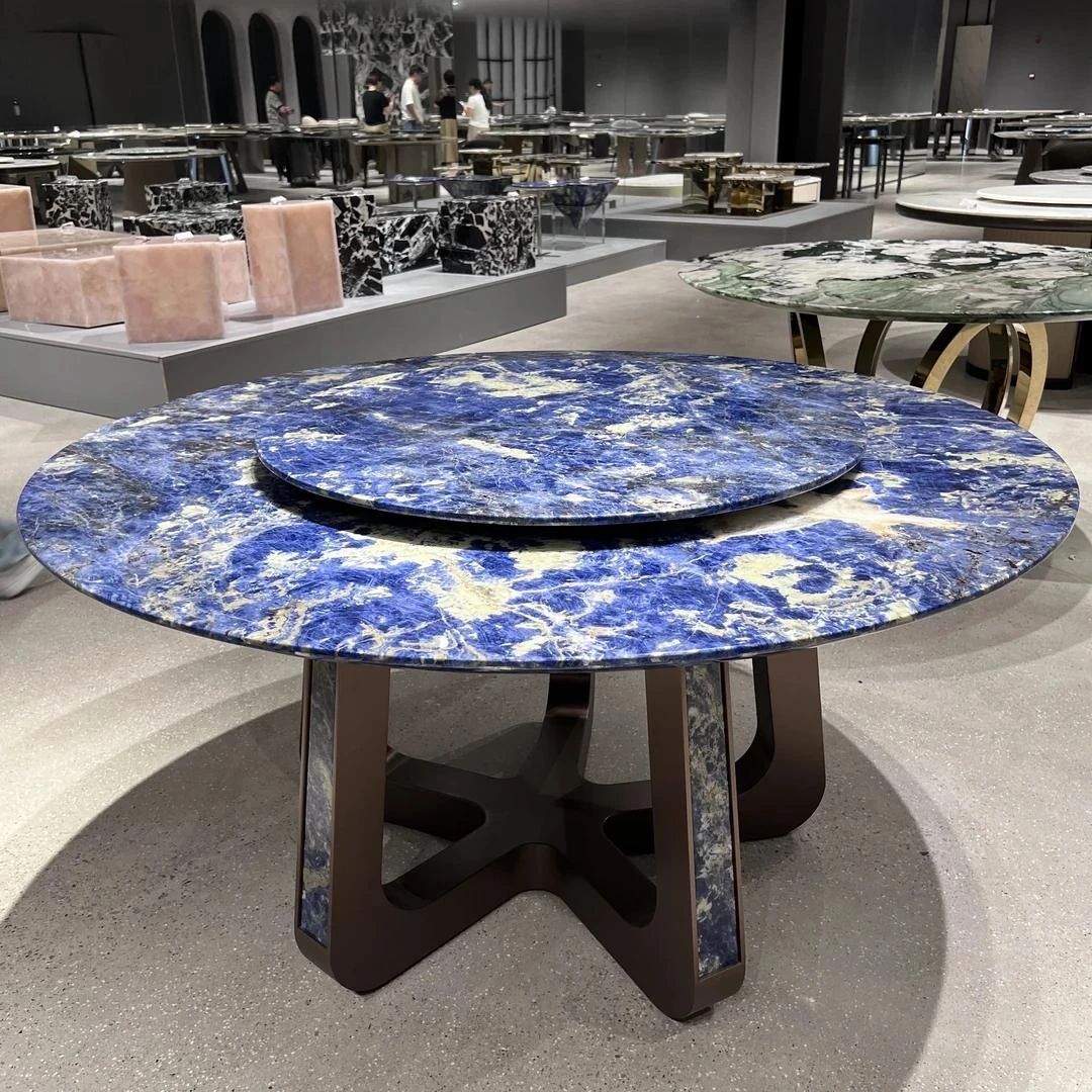 Luxury Natural Blue Sandstone Round Dining Table - Designer Minimalist Dining Set for High-End Villas and Apartments, Perfect for Elegant Gatherings