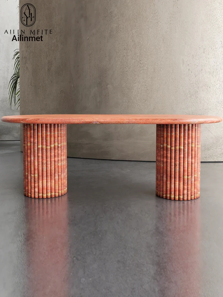 Imported Natural Rose Rainbow Marble Dining Table - Luxury Minimalist Design for Stylish Living Spaces, Featuring Elegant Pink Diamond and Chic White Stone Finish