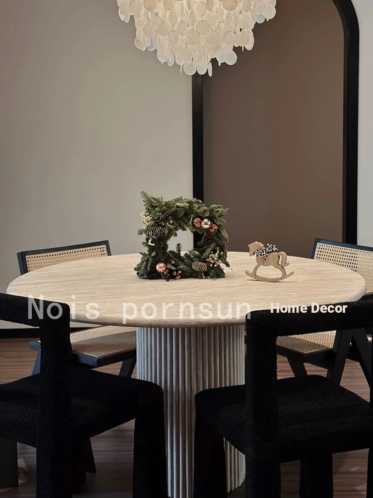 Nordic Minimalist Round Beige Stone Dining Table – Creative Design for Cafés and Restaurants, Inspired by Popular Trends on Xiaohongshu