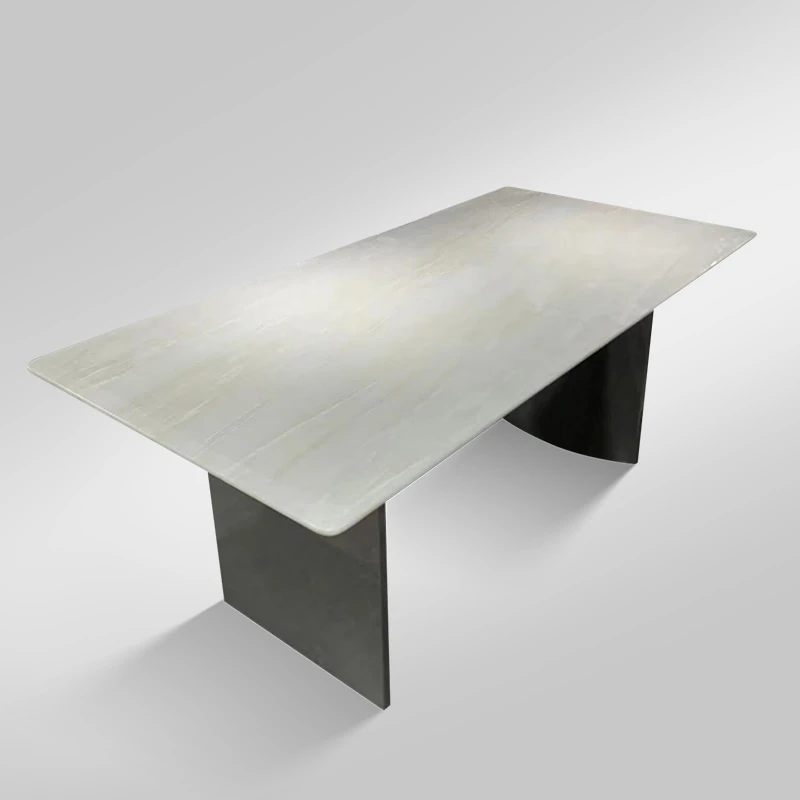 Premium Quality Natural Marble Rectangular Dining Table - Modern Minimalist Design for Villas and Luxury Homes, Featuring Exquisite Ice Jade Luxury Stone Finish