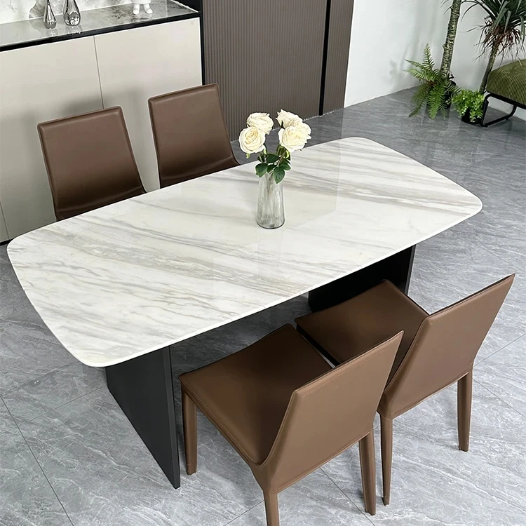 Minimalist Marble Dining Table Set - Modern Italian Luxury Rectangular Dining Table with Ocean Storm Design for Home
