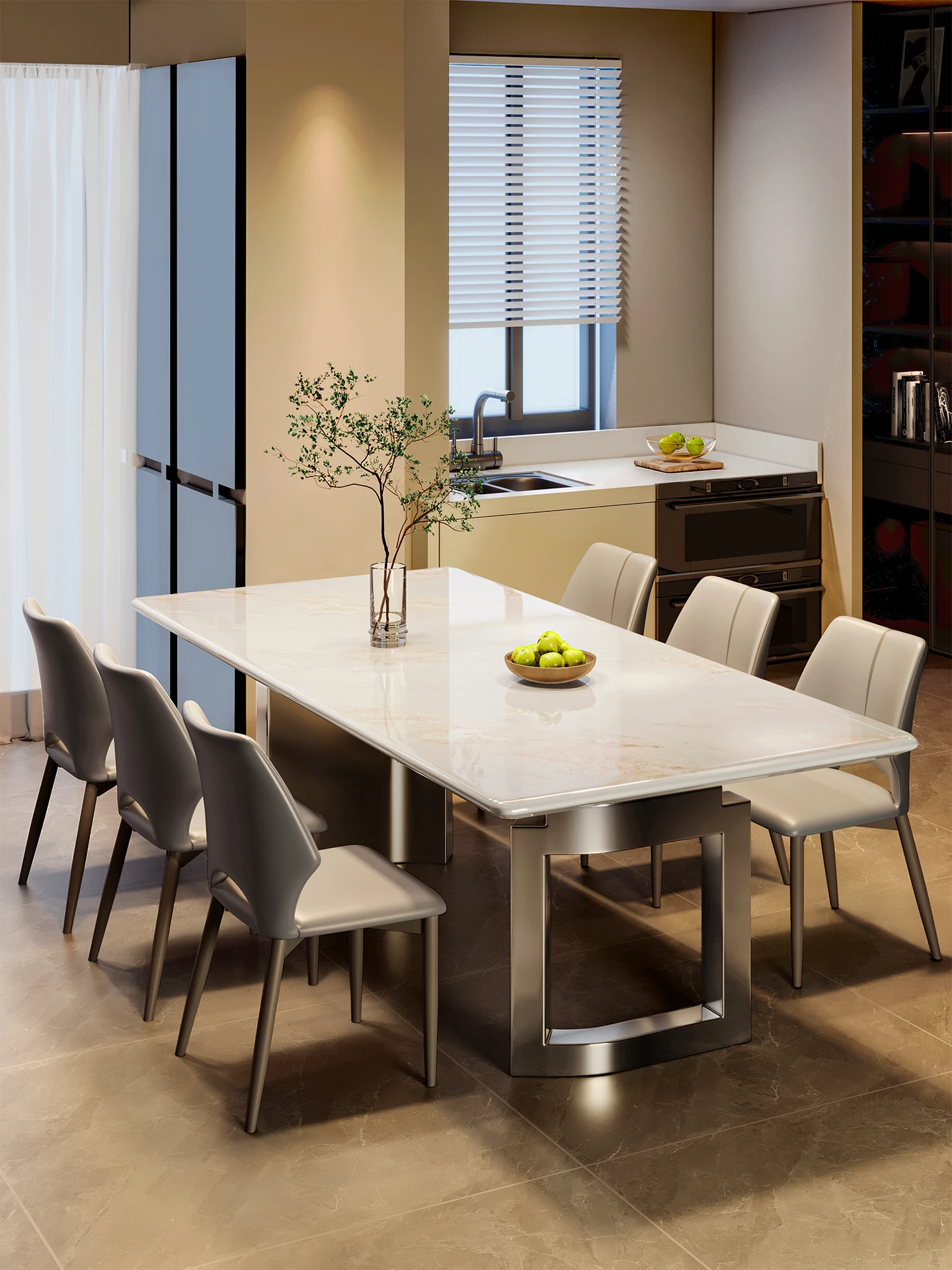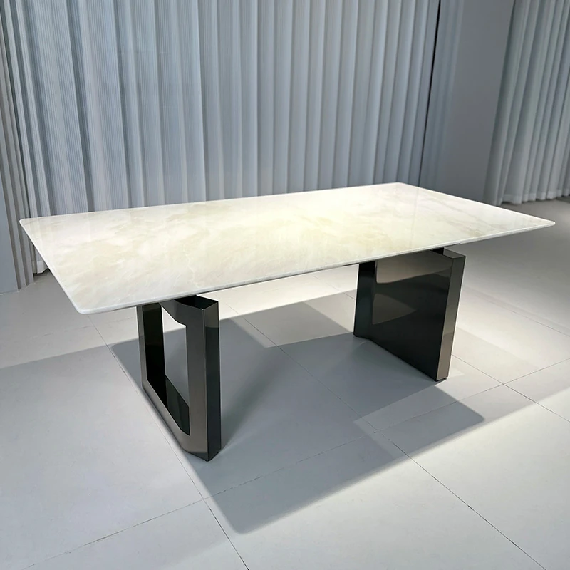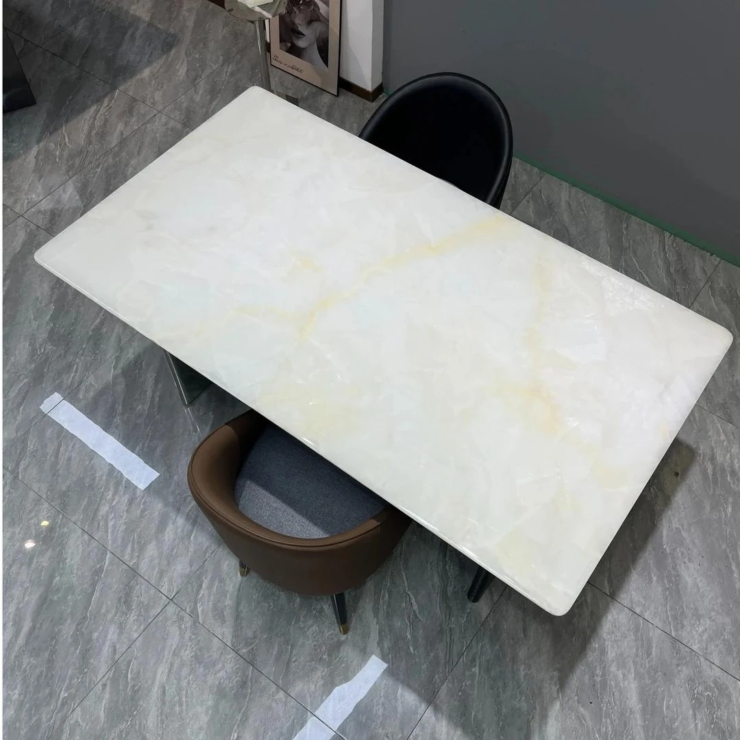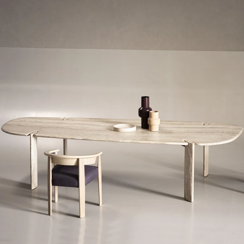 北欧風のラグジュアリー天然石のダイニングテーブル|イタリアンミニマリズムの別荘・ホテル向けデザイン|スタイリッシュな長テーブルで特別な食事体験をお届け!