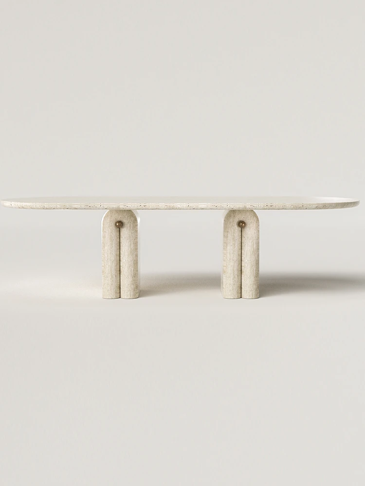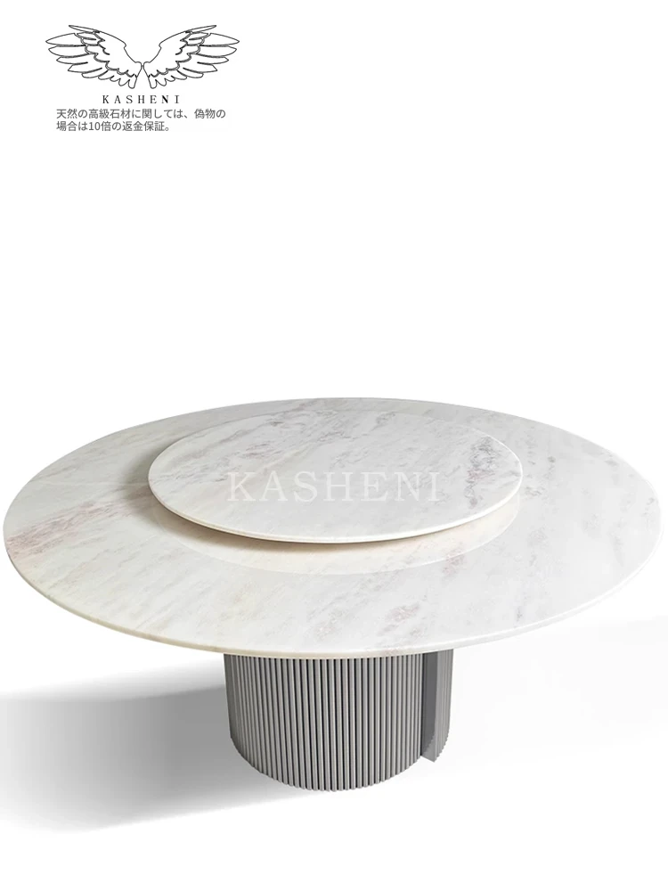 イタリアン天然大理石ダイニングテーブル - モダンでシンプルなラグジュアリー、フレンチビンテージスタイルのユニークな洞石デザイン。洗練された空間を演出し、特別なひとときをお届けします。